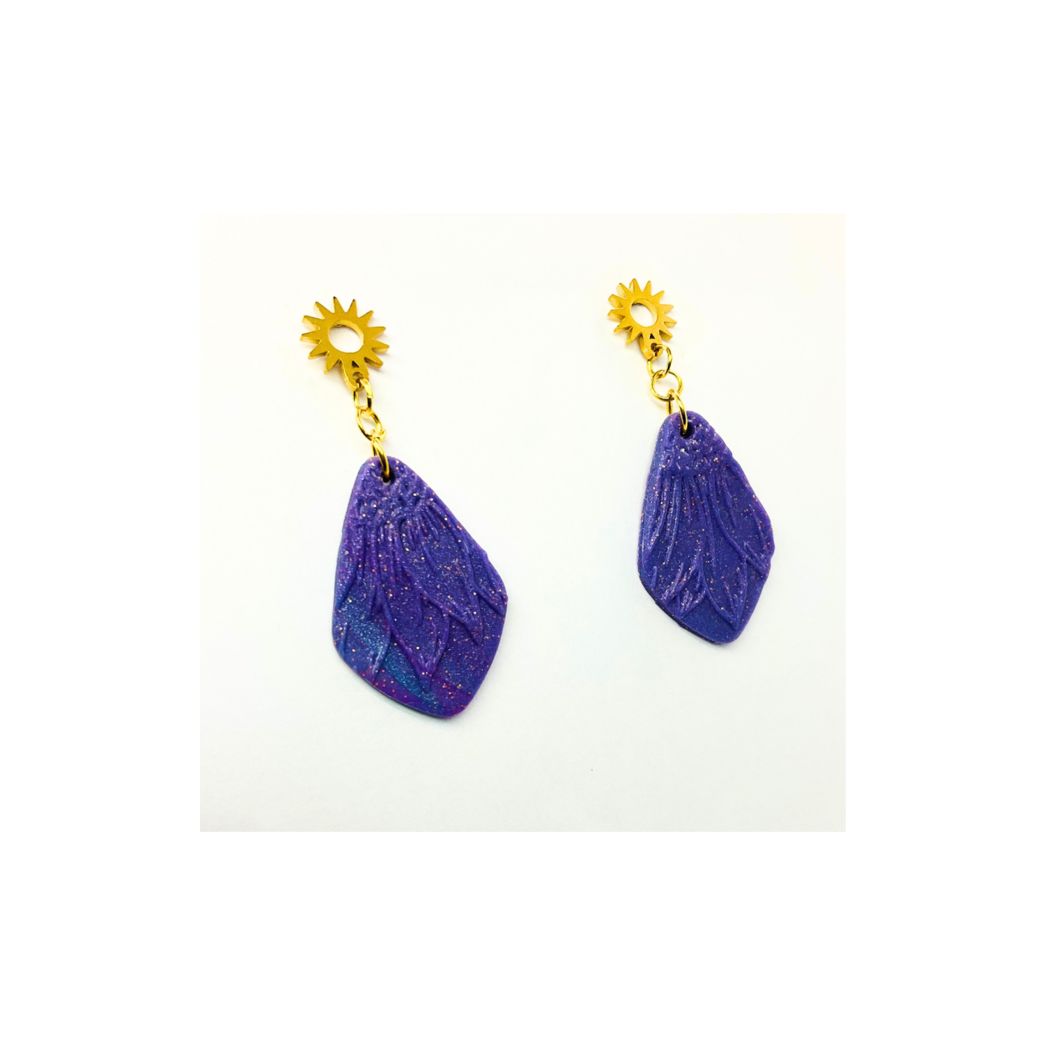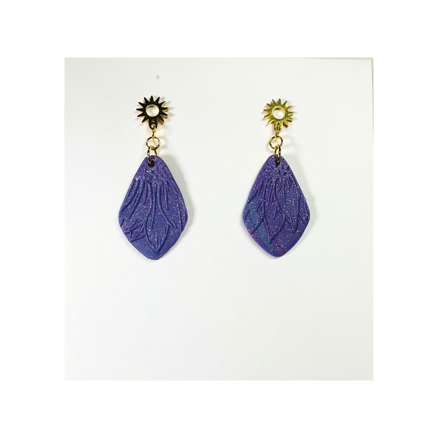 Purple Sunflower Dangle Earrings with Gold Stud