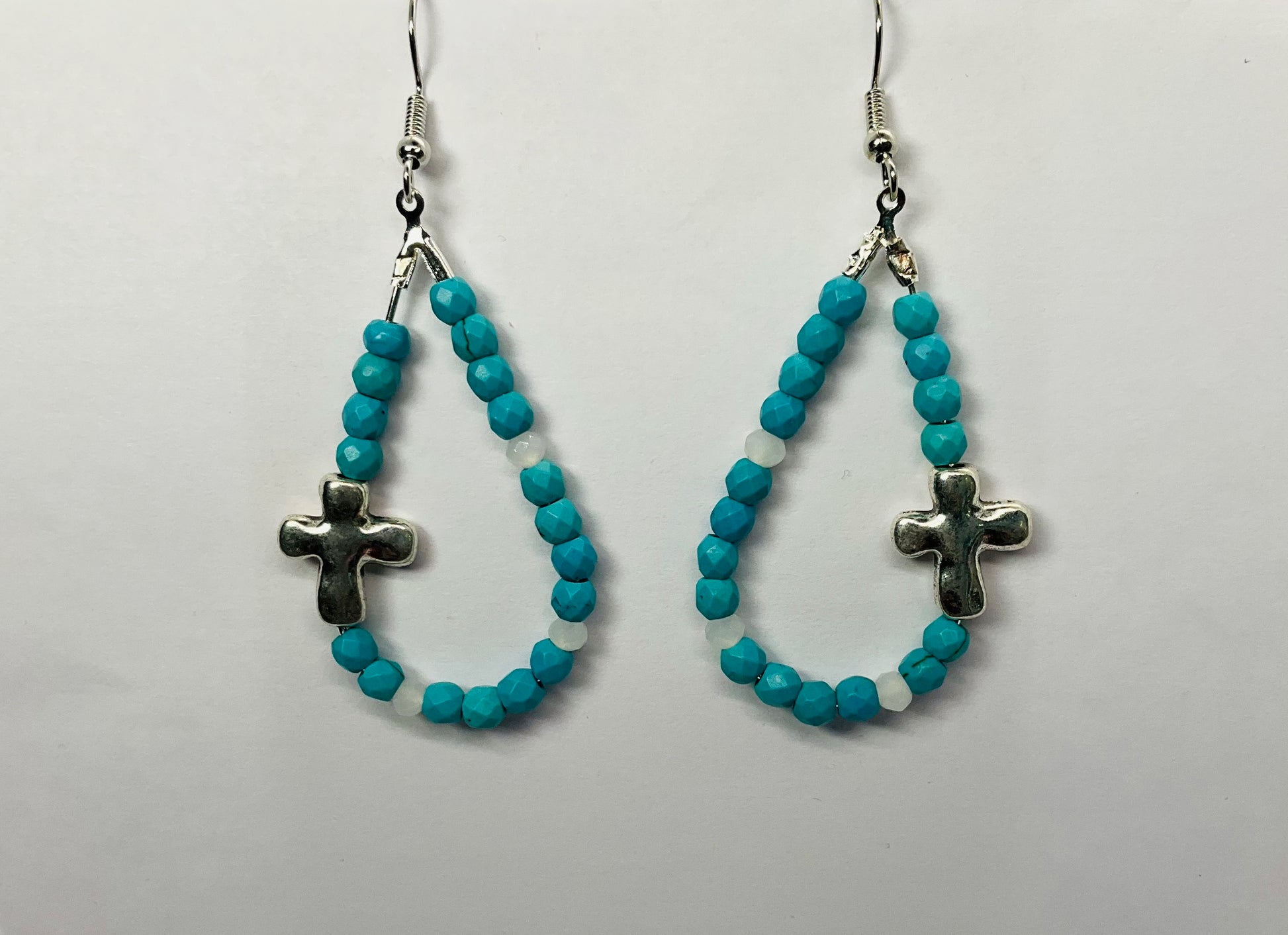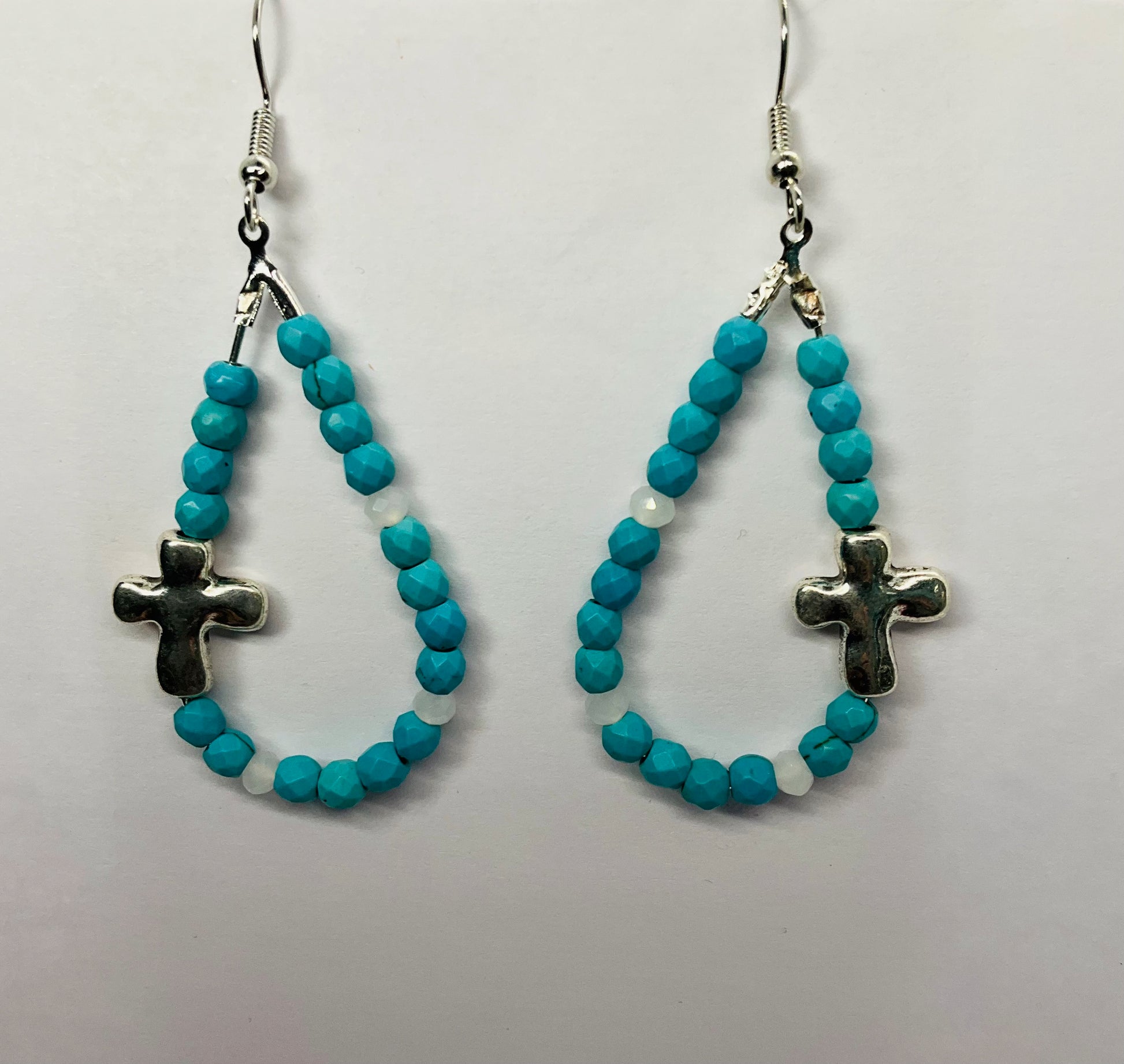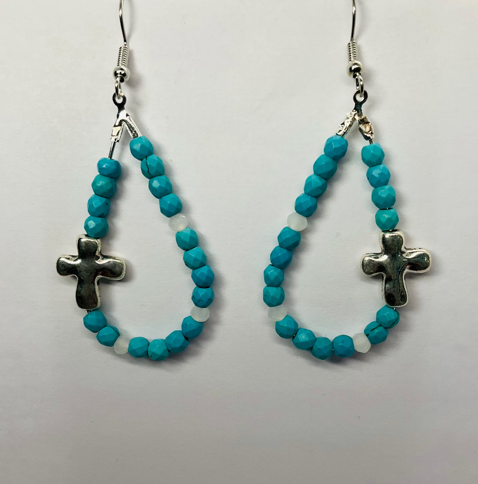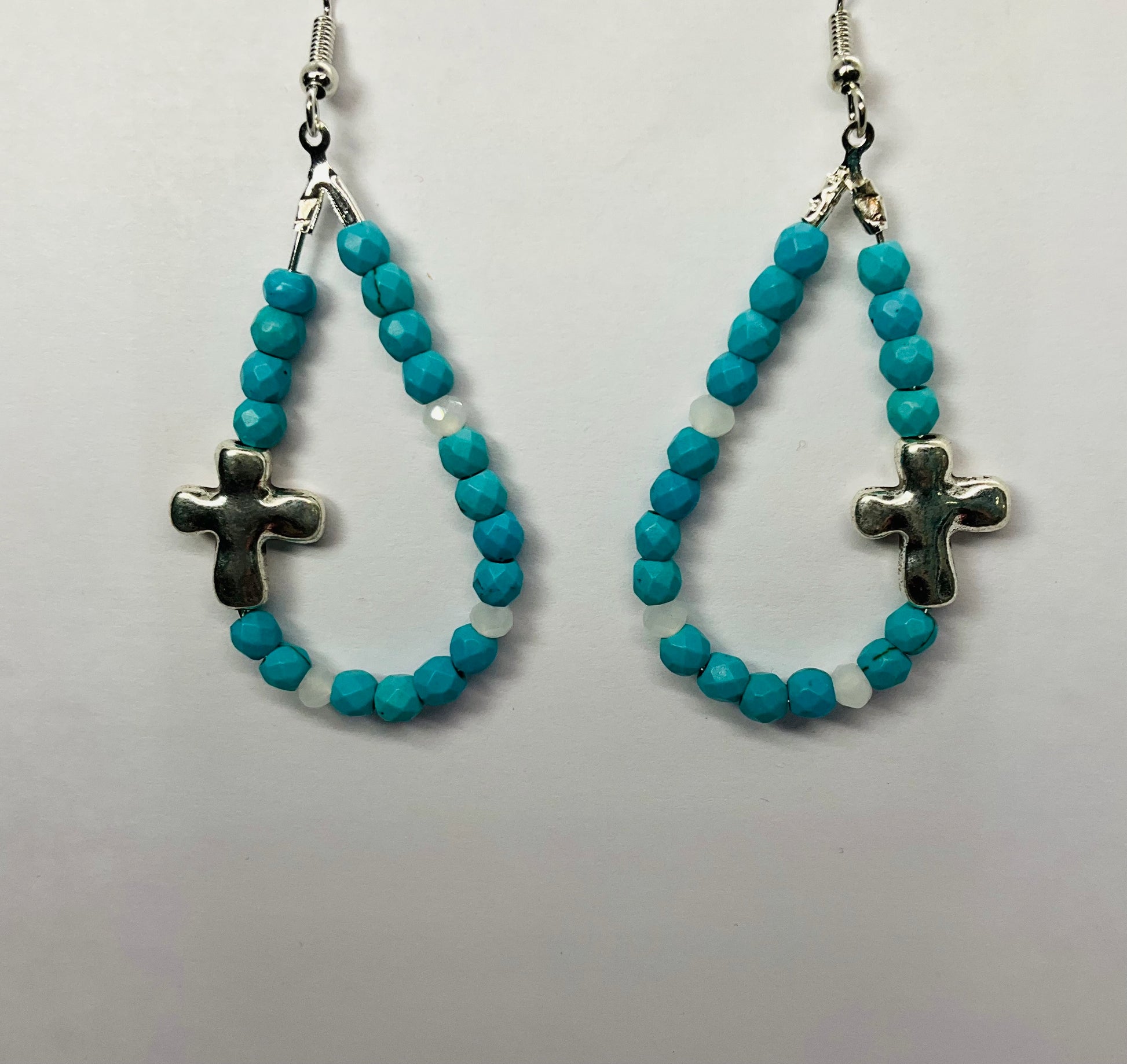 Discover the elegance of these stunning Amethyst Blue Teardrop Dangle Earrings. Crafted with a beautiful combination of teardrop-shaped beads and a silver cross design, these earrings perfectly blend style and symbolism.