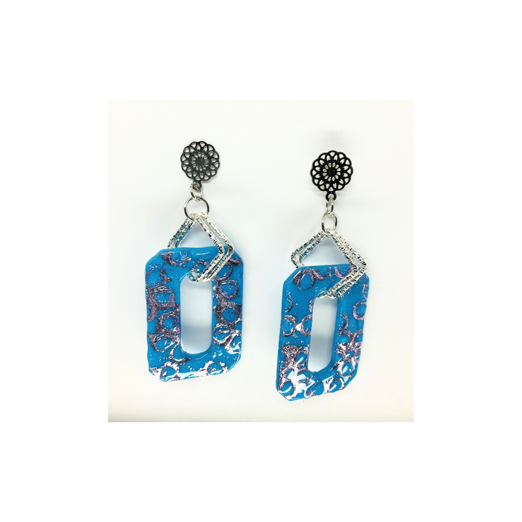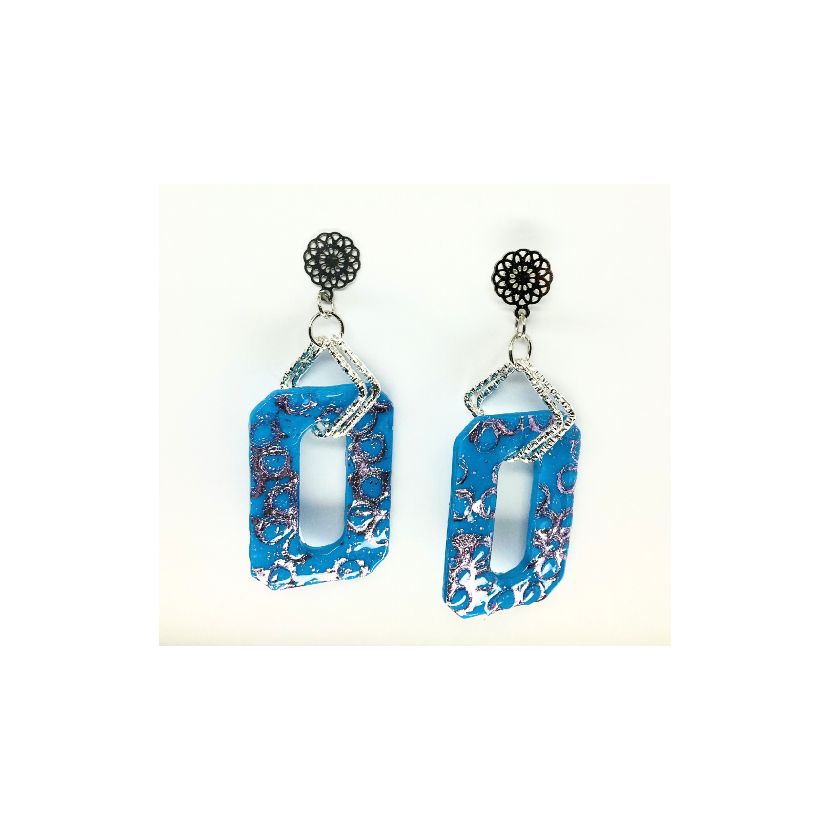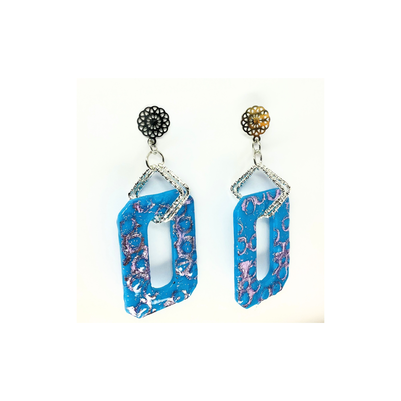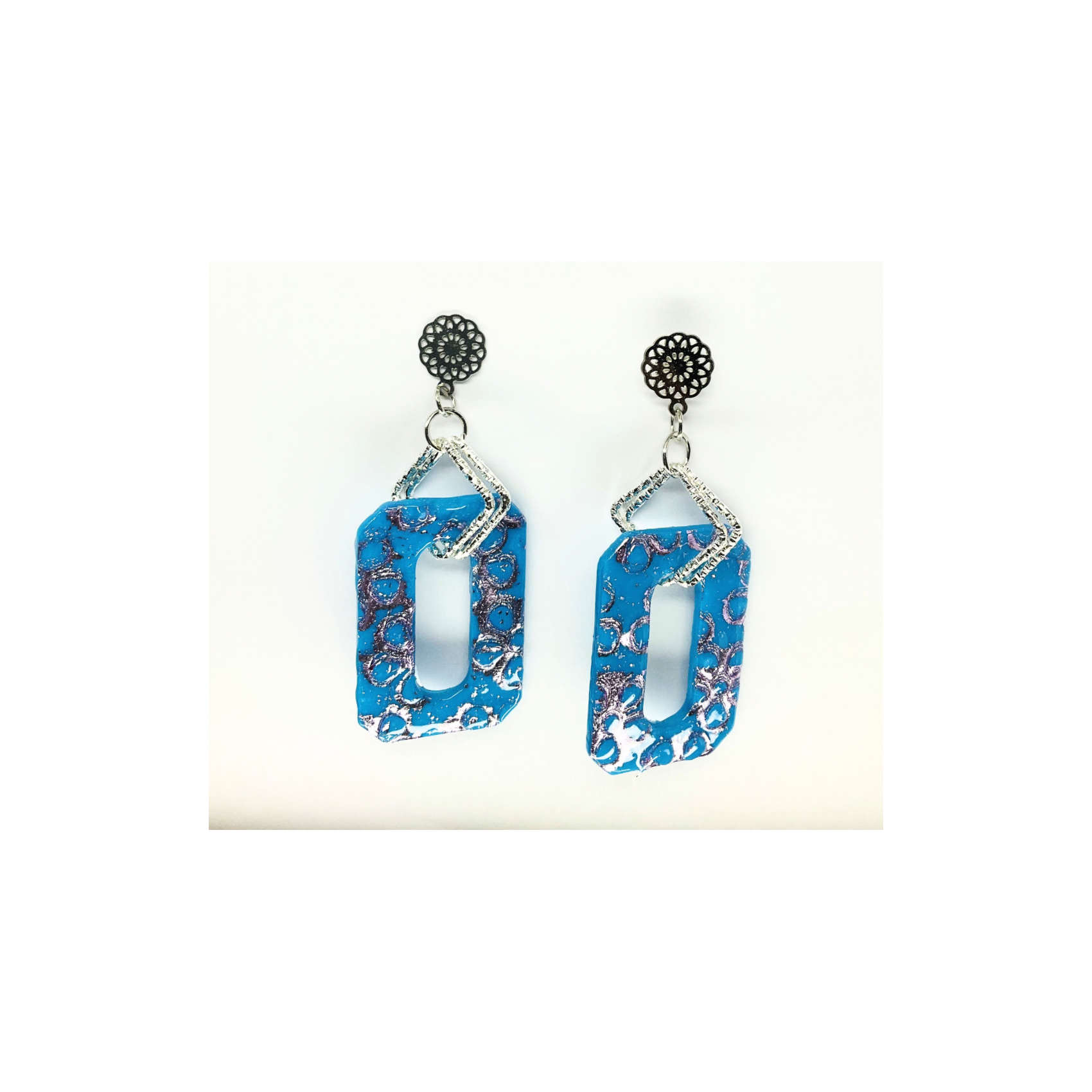 Azure Blue and Purple Dangle with Filigree Silver Stud Earring-Crafting By BB