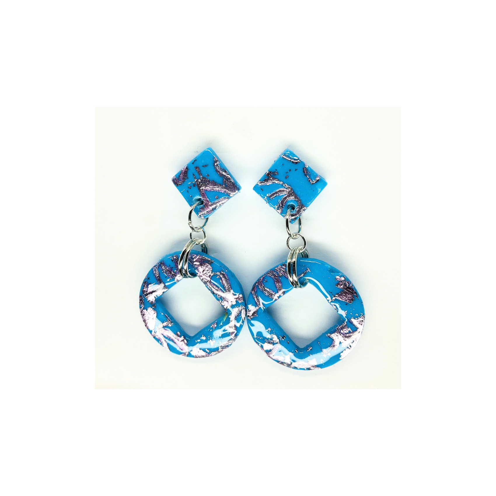 Azure Blue Round Dangle with Square Stud Earrings-Crafting By BB