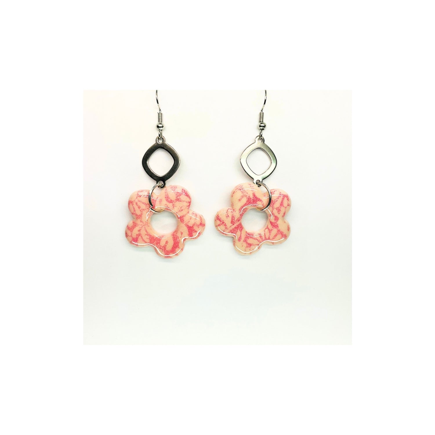 Beach Bloom Collection Pink Flower with Silver Dangle Earrings
