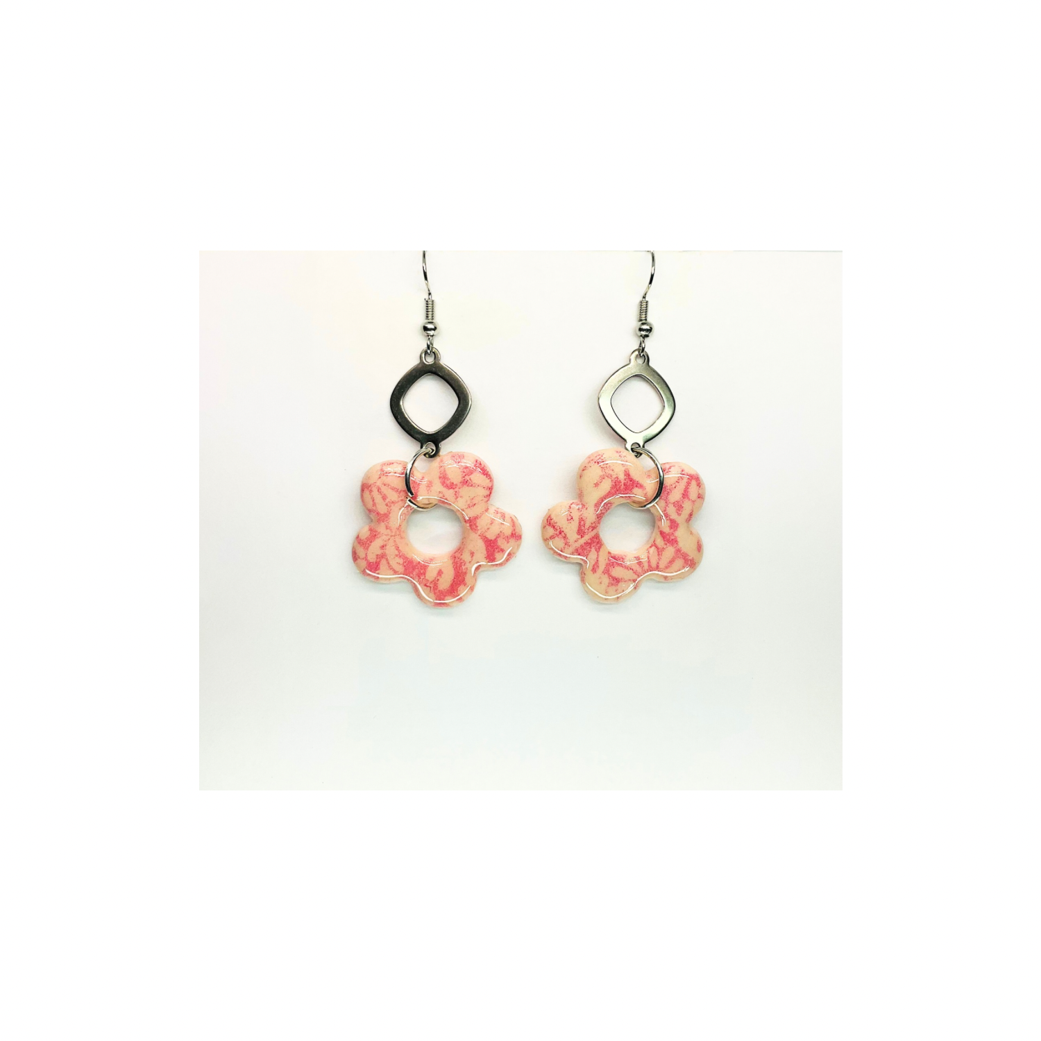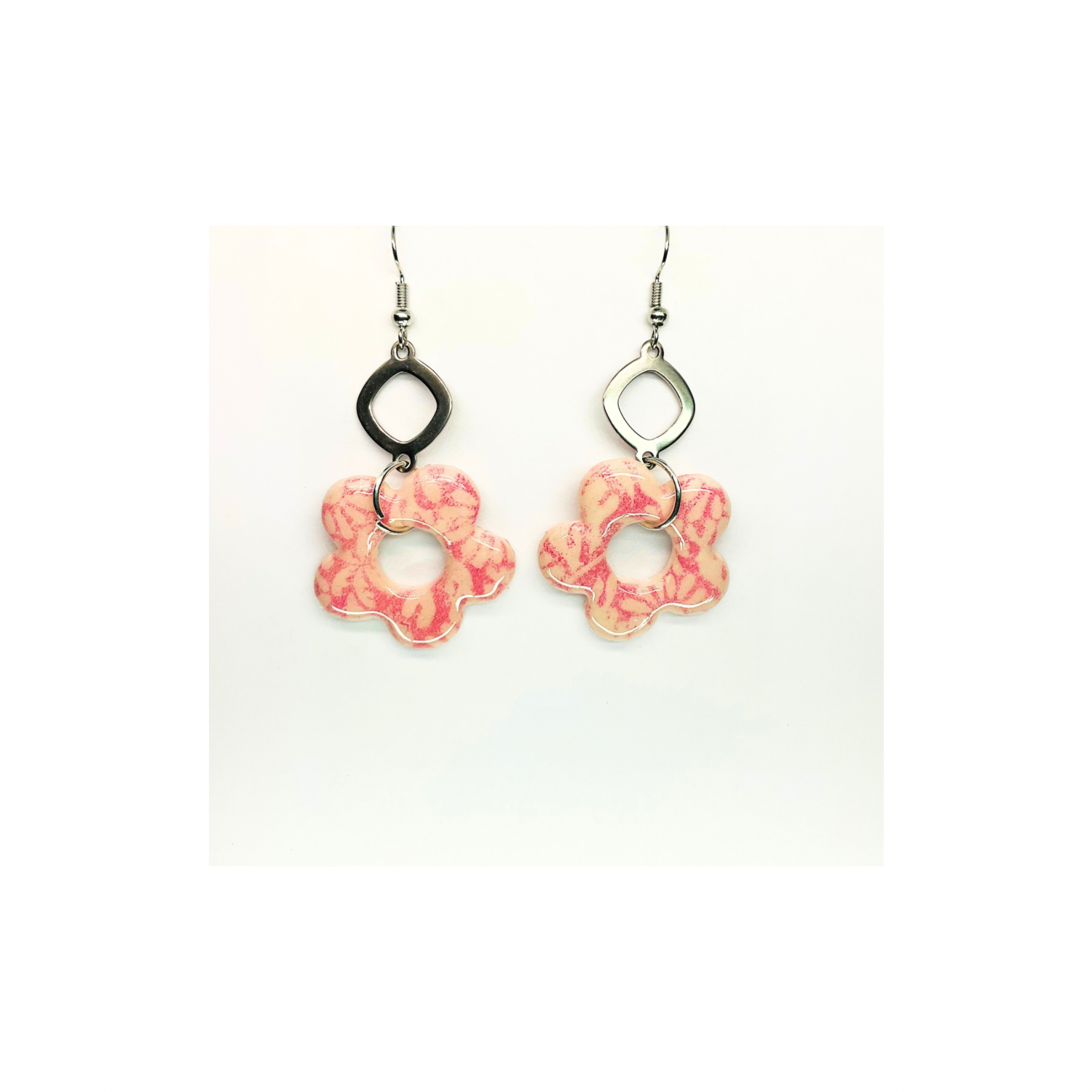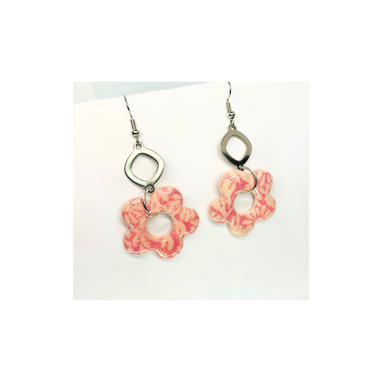 Beach Bloom Collection Salmon Flower with Silver Dangle Earrings - Unique Design Earrings for Beach Bloom Lovers