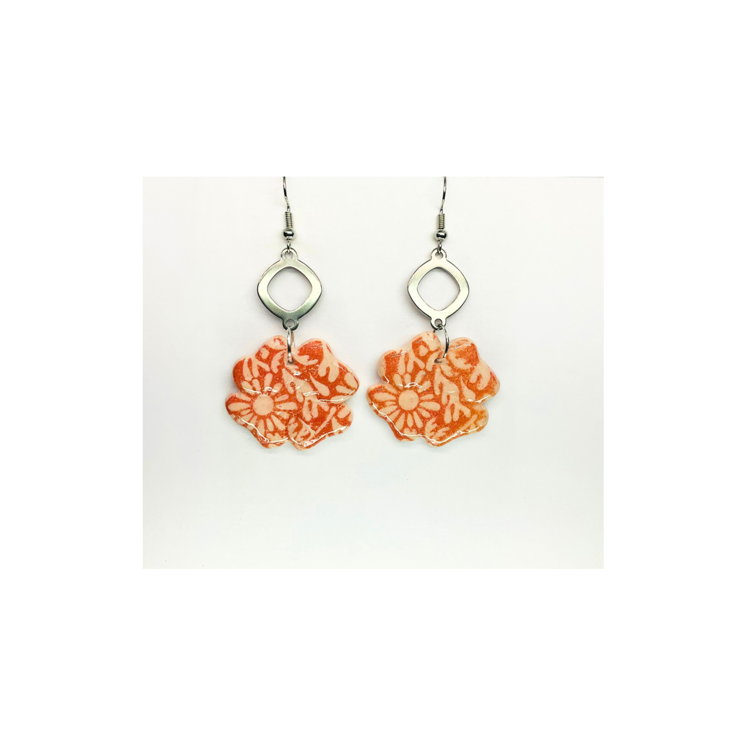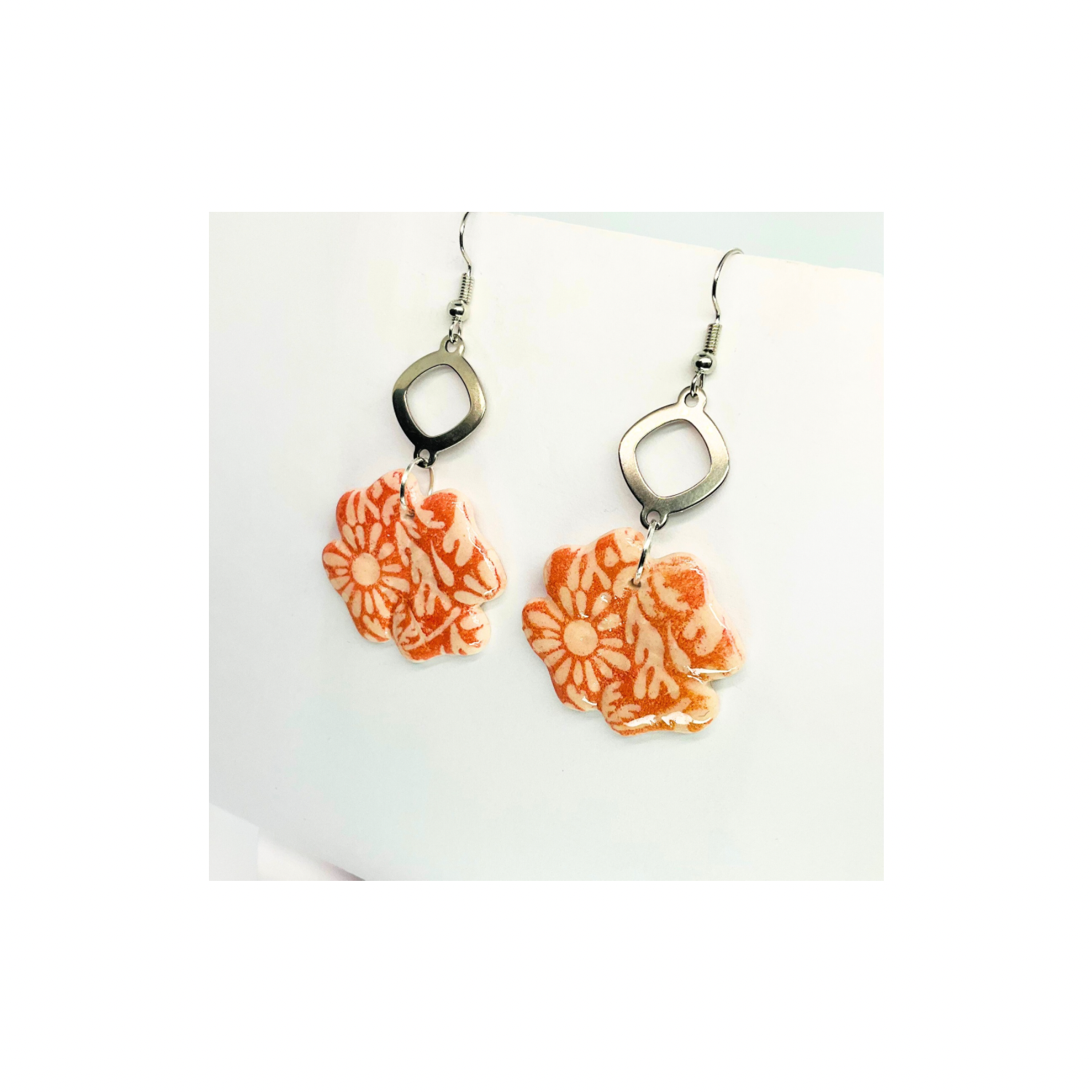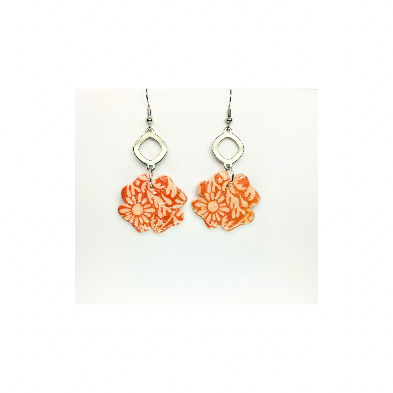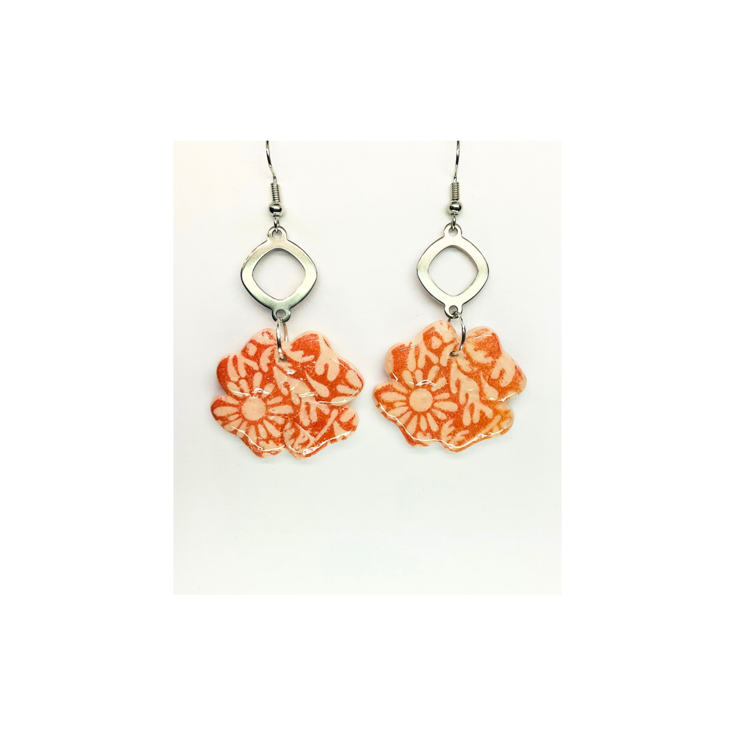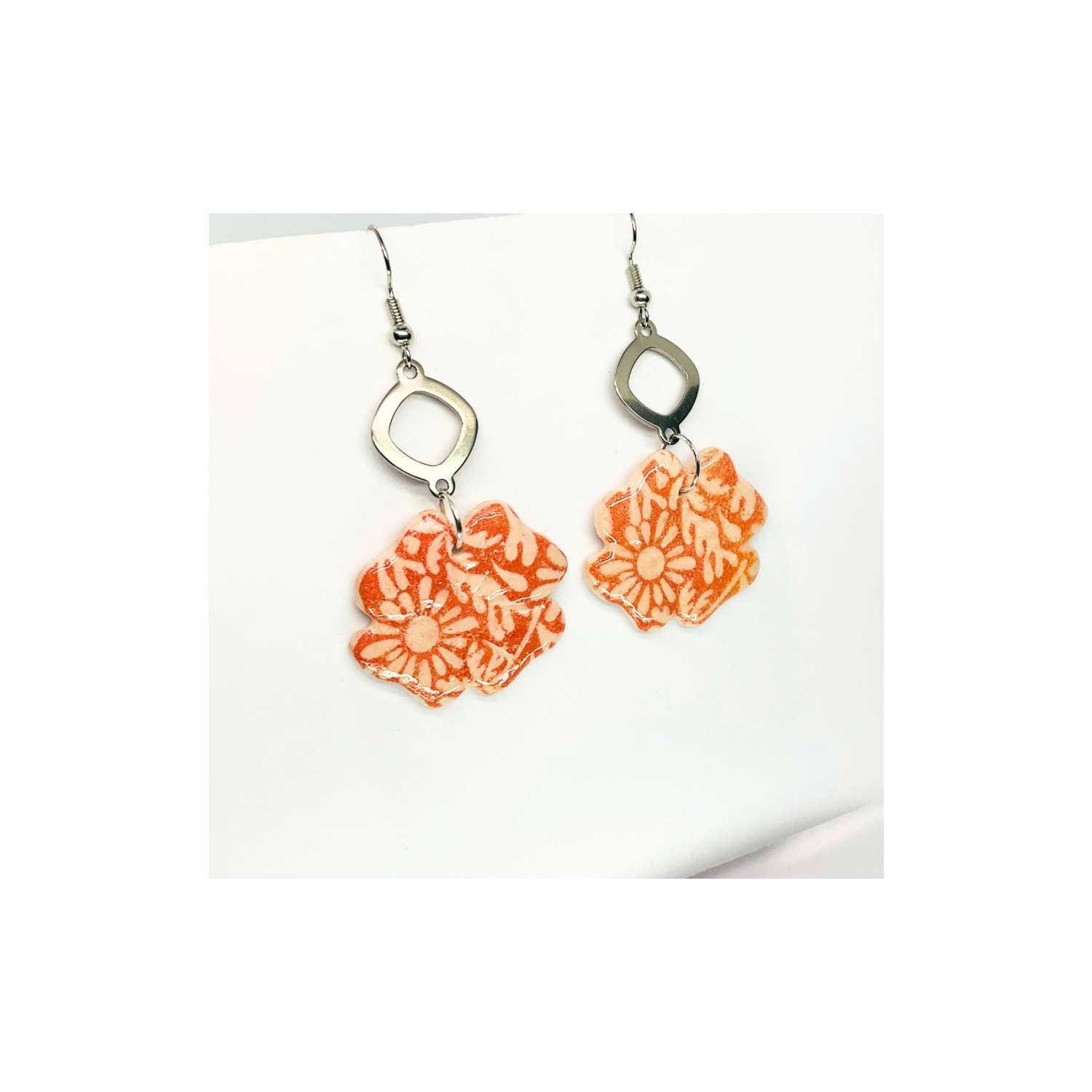🌸 Beach Bloom Collection Salmon Four Conner Flower Dangle Earrings