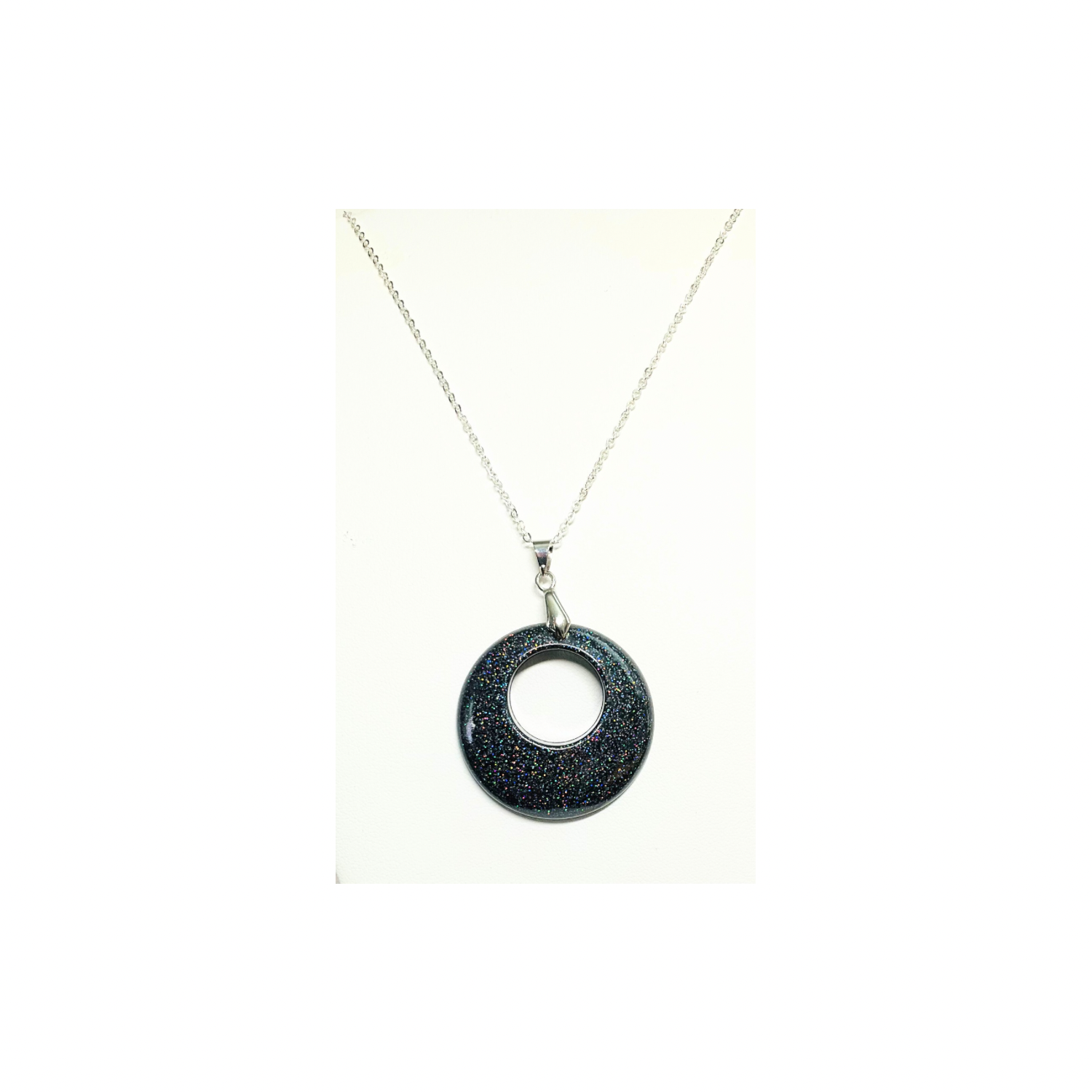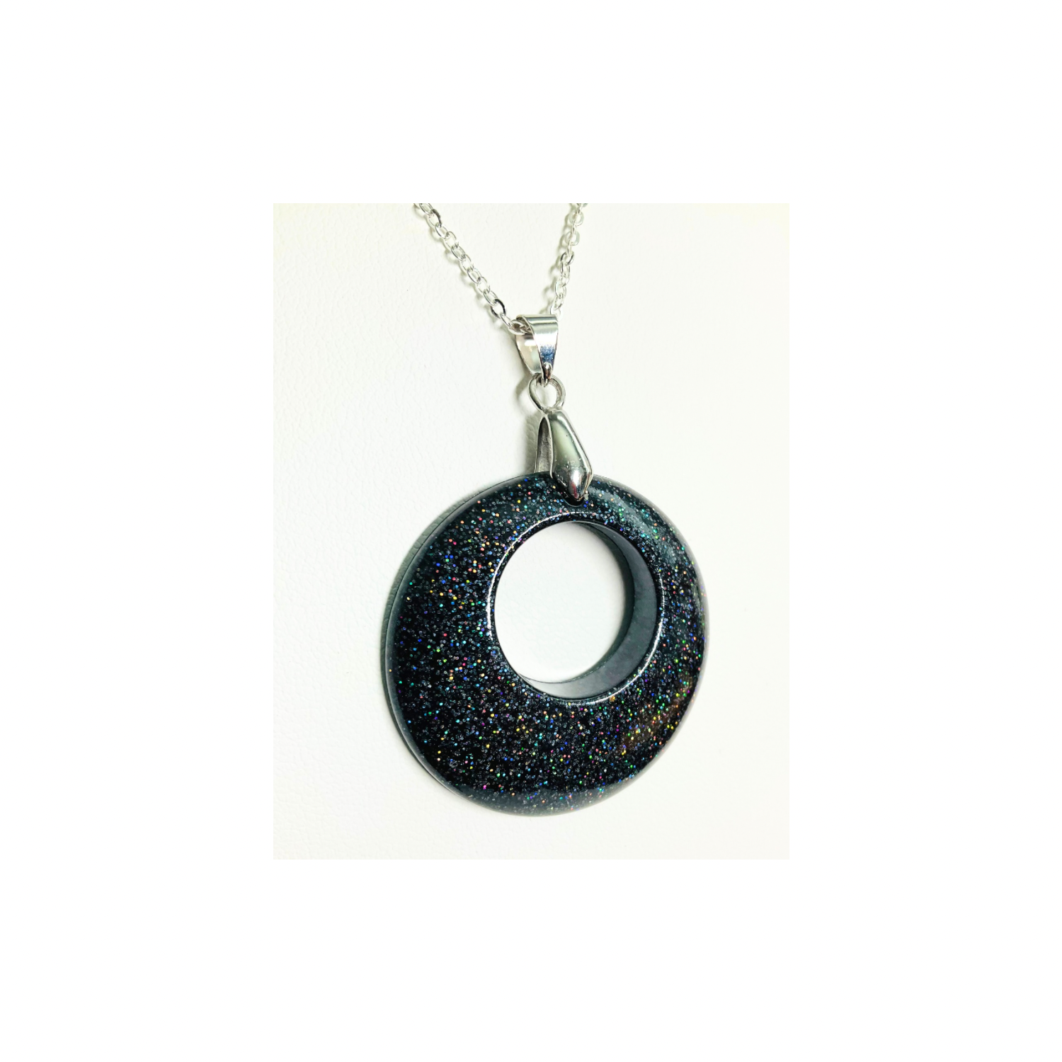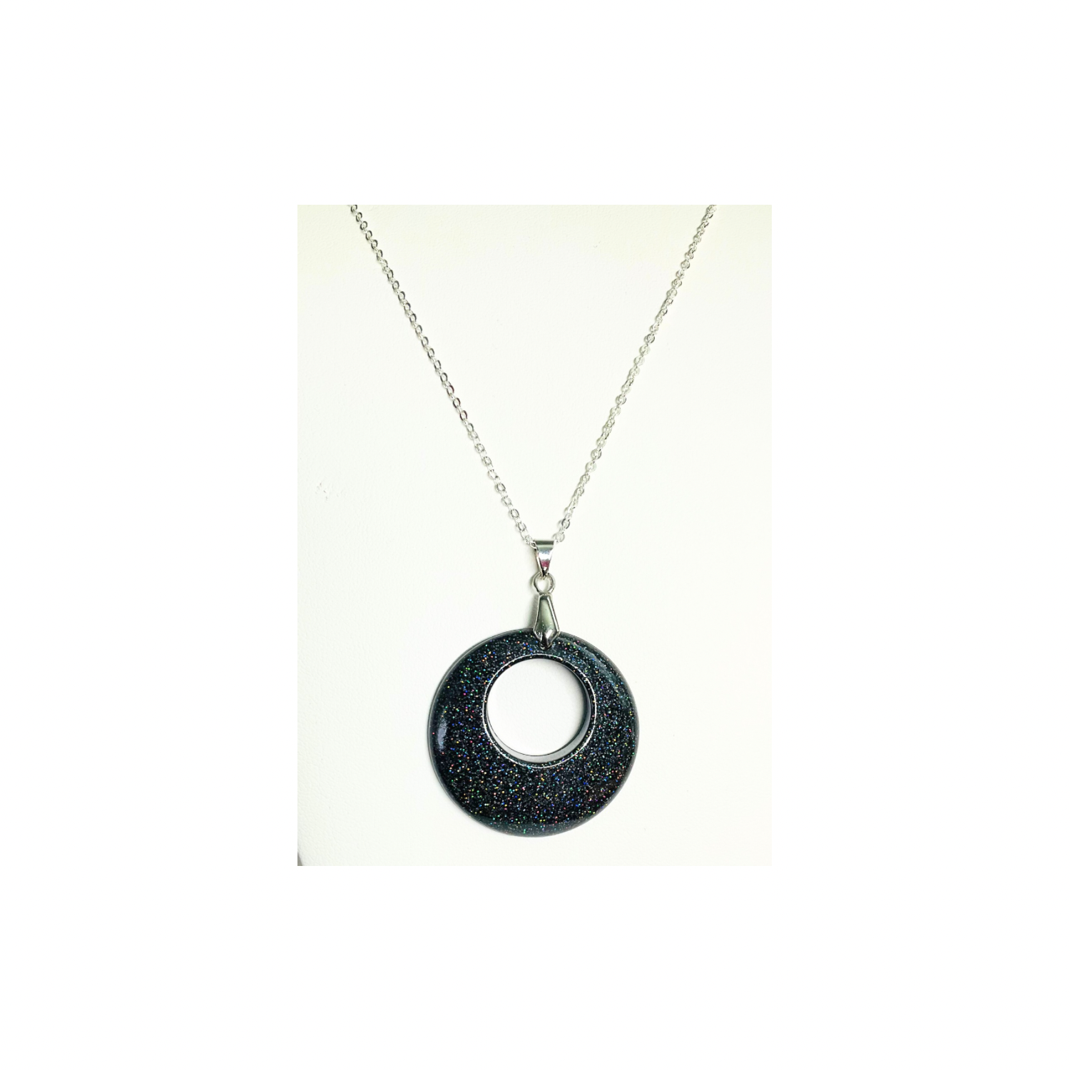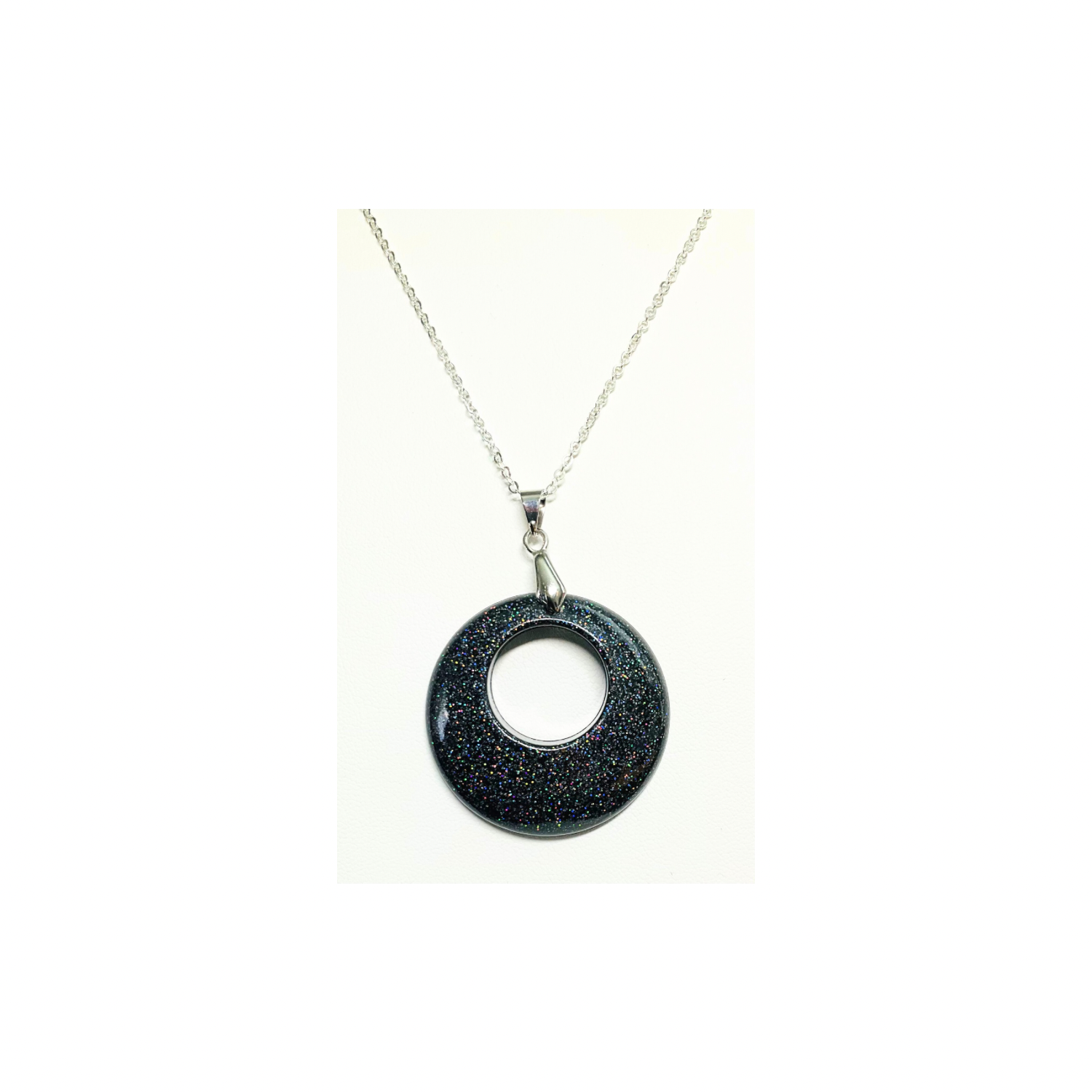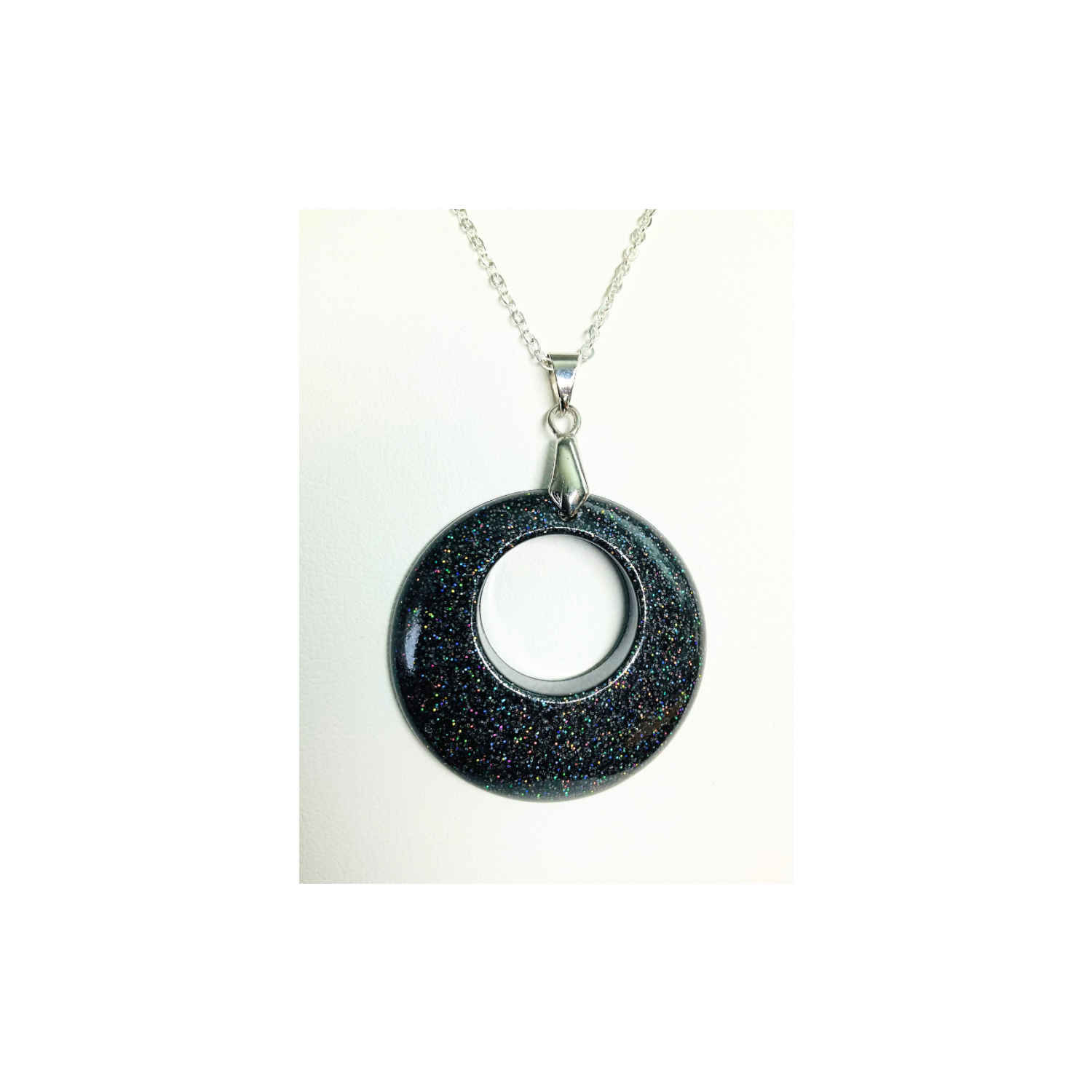 Black Sparkle Circle Necklace on 18-inch Silver Chain - Elegant Simple Design for Any Occasion
