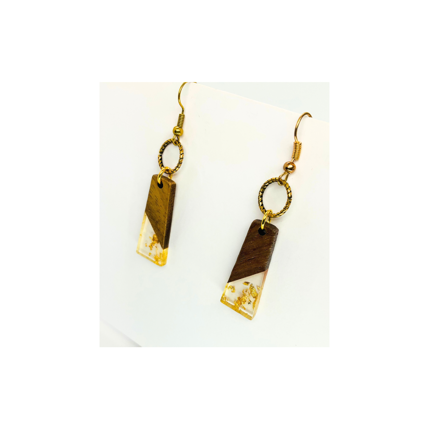 Boho Wood Collection Dangle Earrings for Female - Unique Design with Gold Accents and Wooden Elements