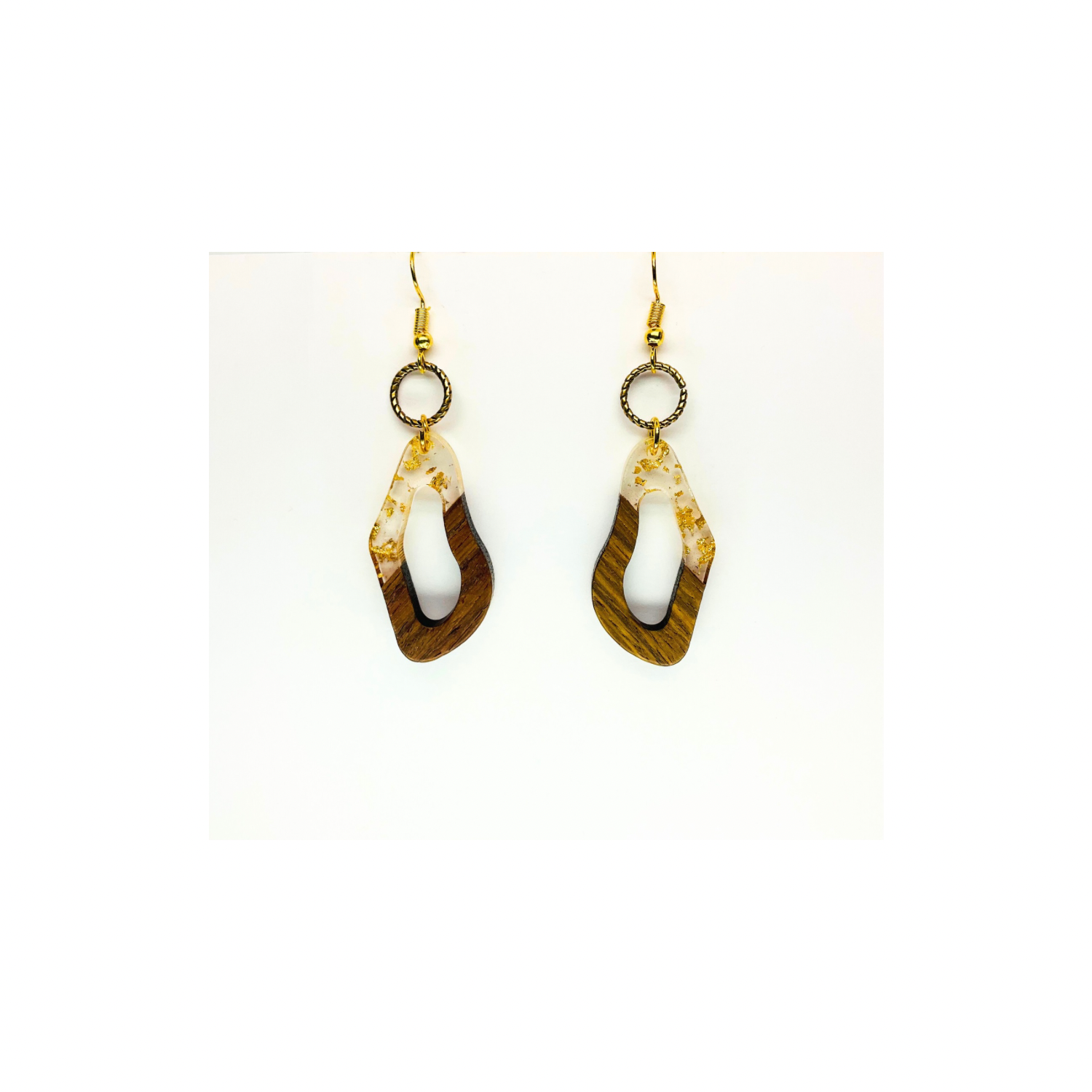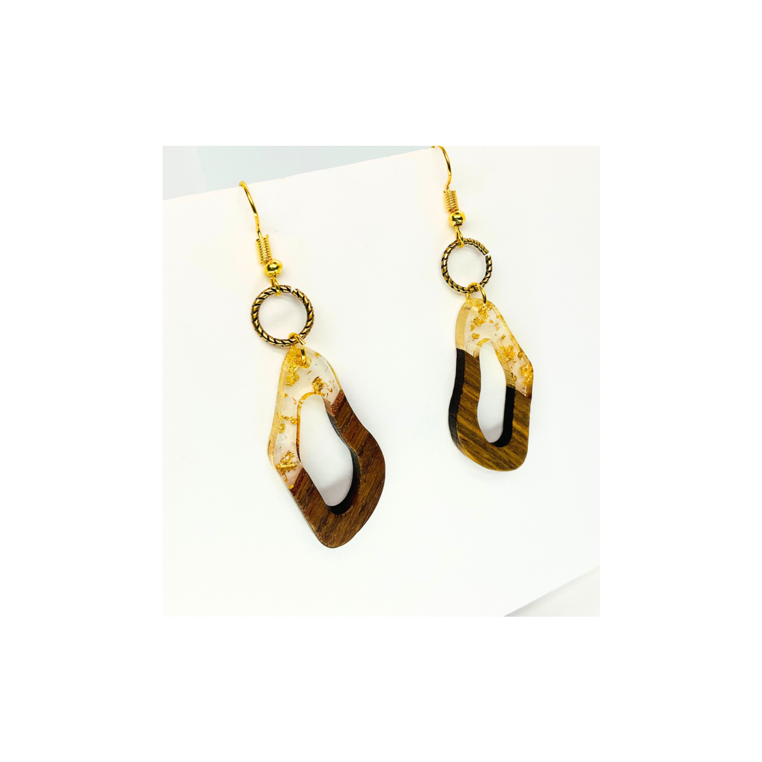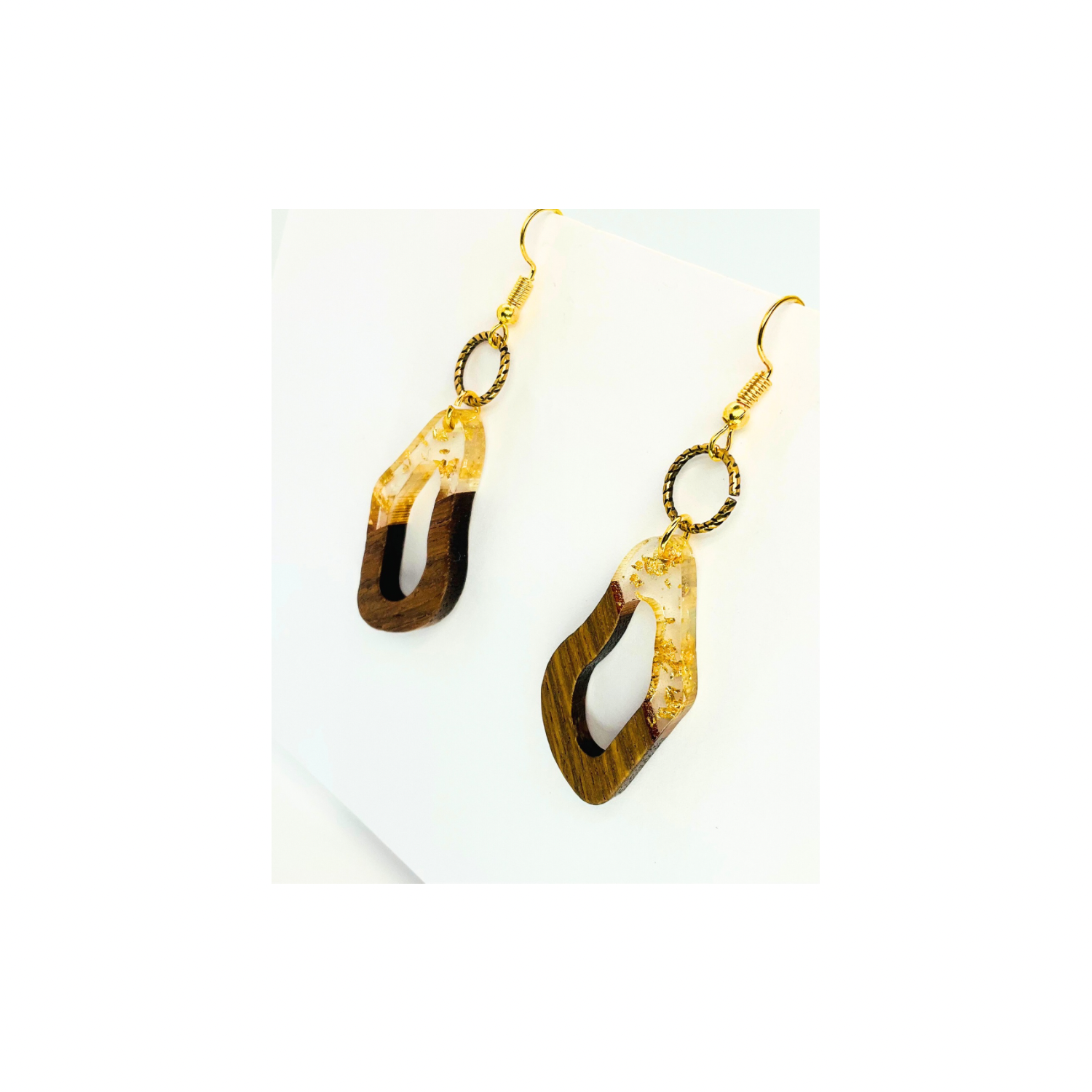 Boho Wood Collection Geometric Dangle Earrings for Female - Wooden Design with Gold Accents
