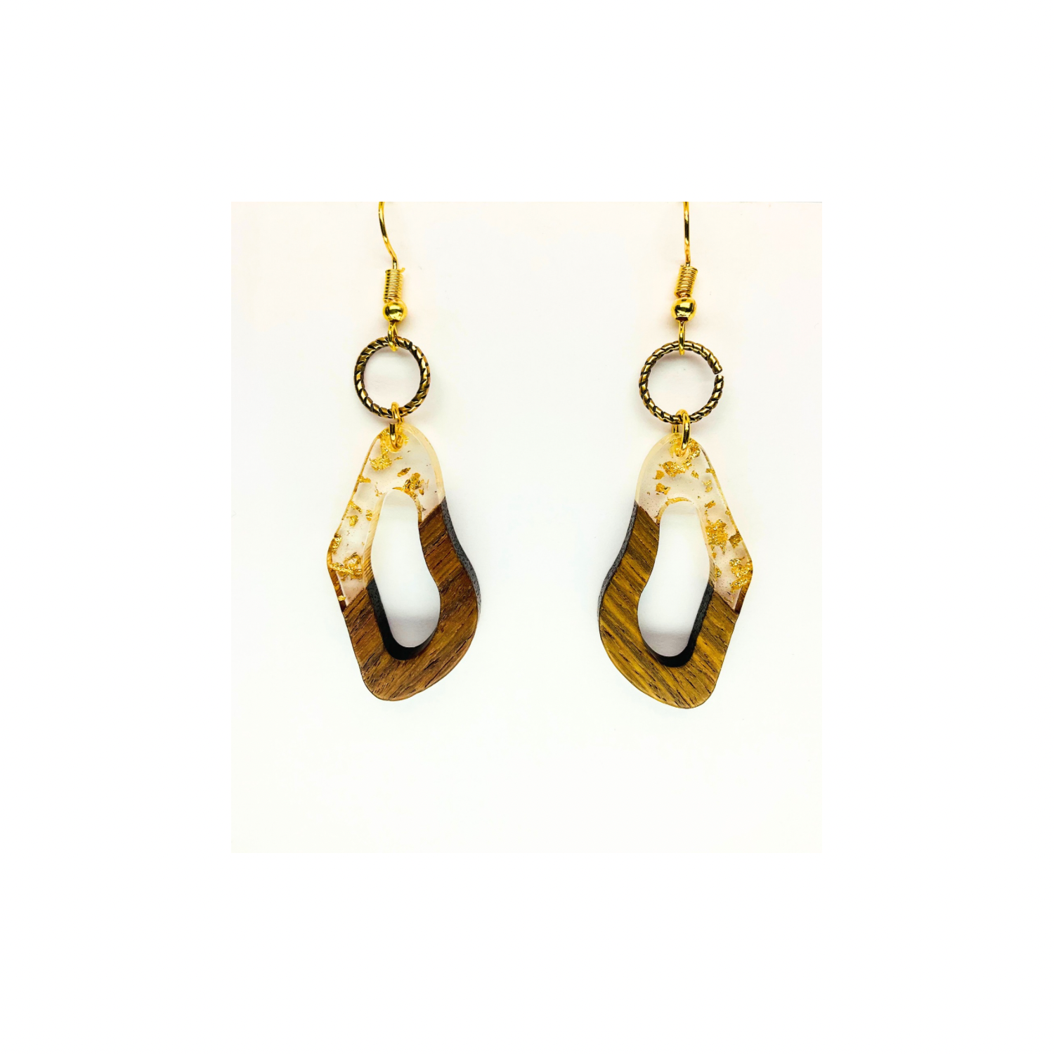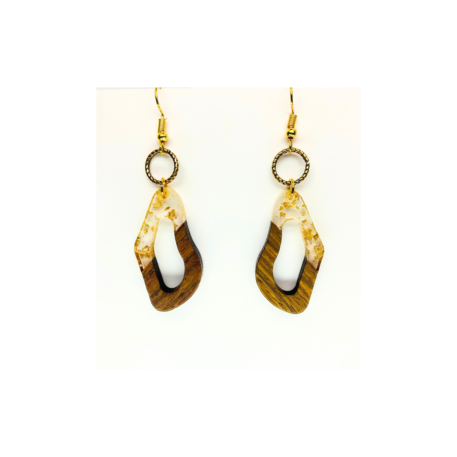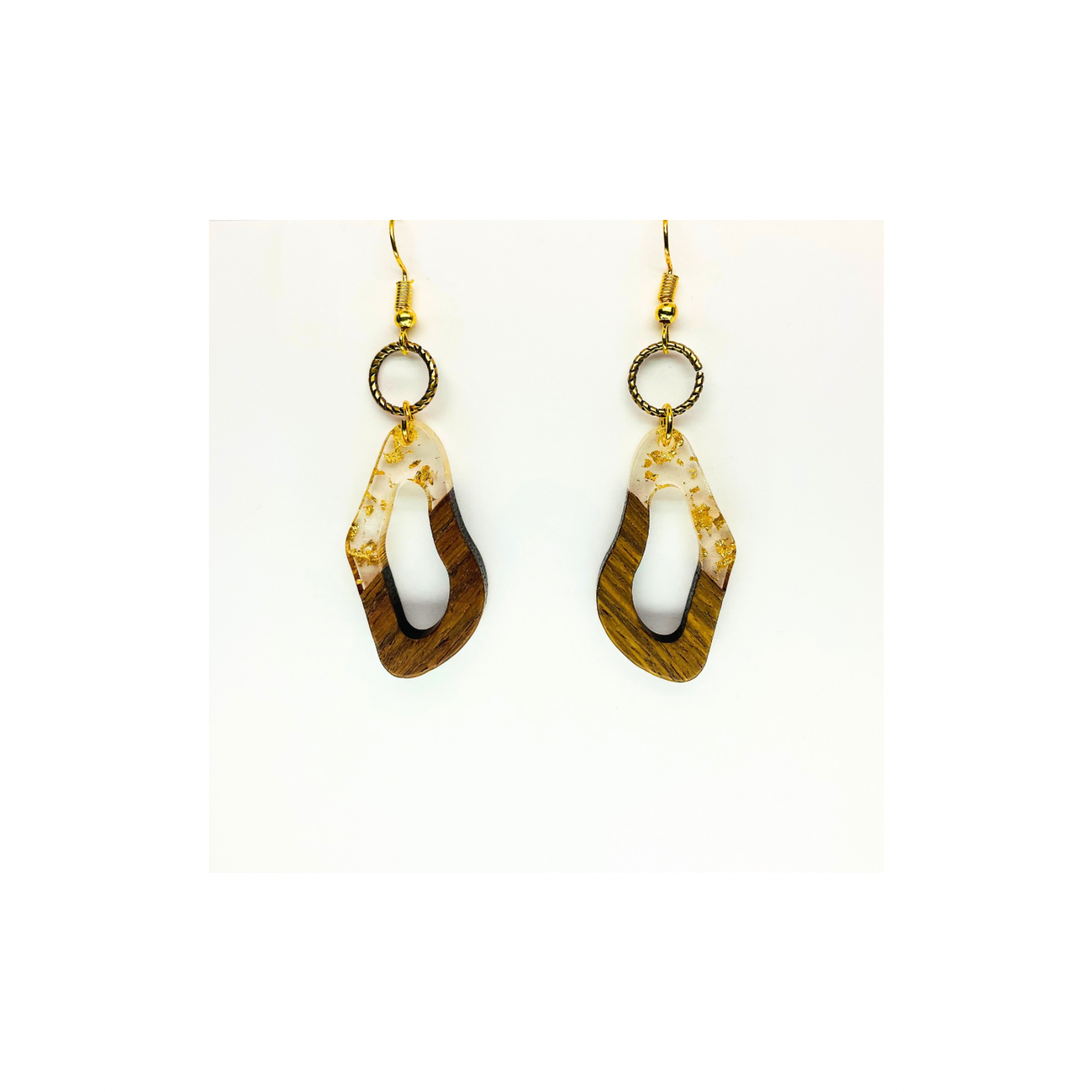 Boho Wood Collection Geometric Dangle Earrings for Female - Wooden Design with Gold Accents