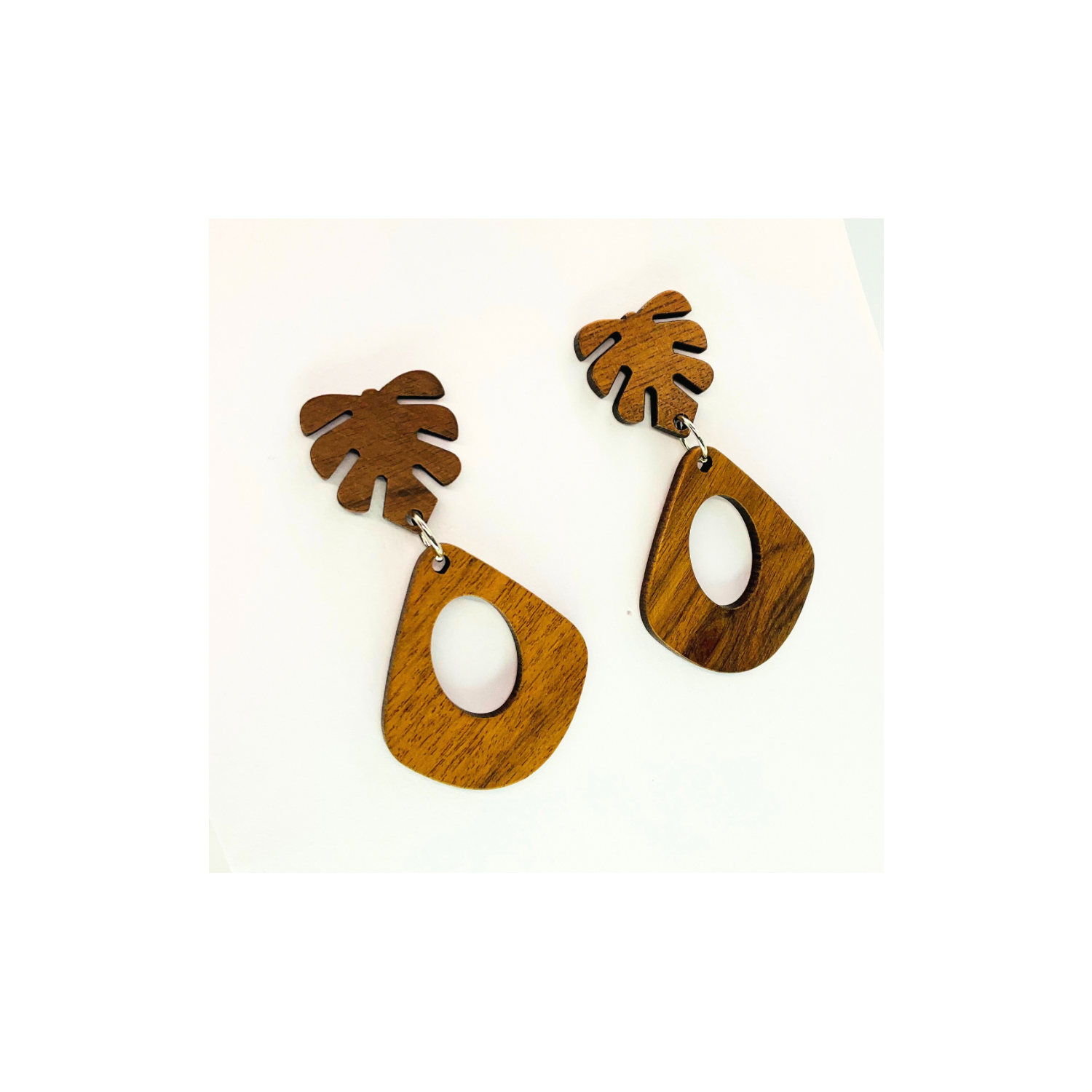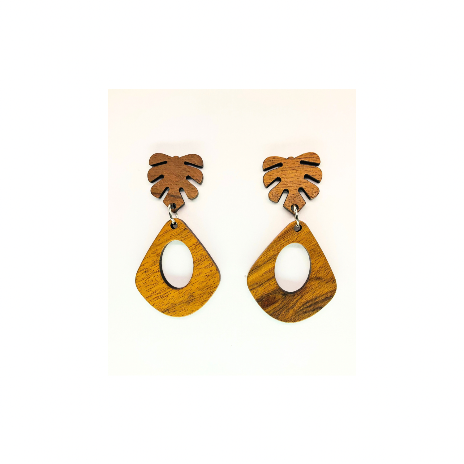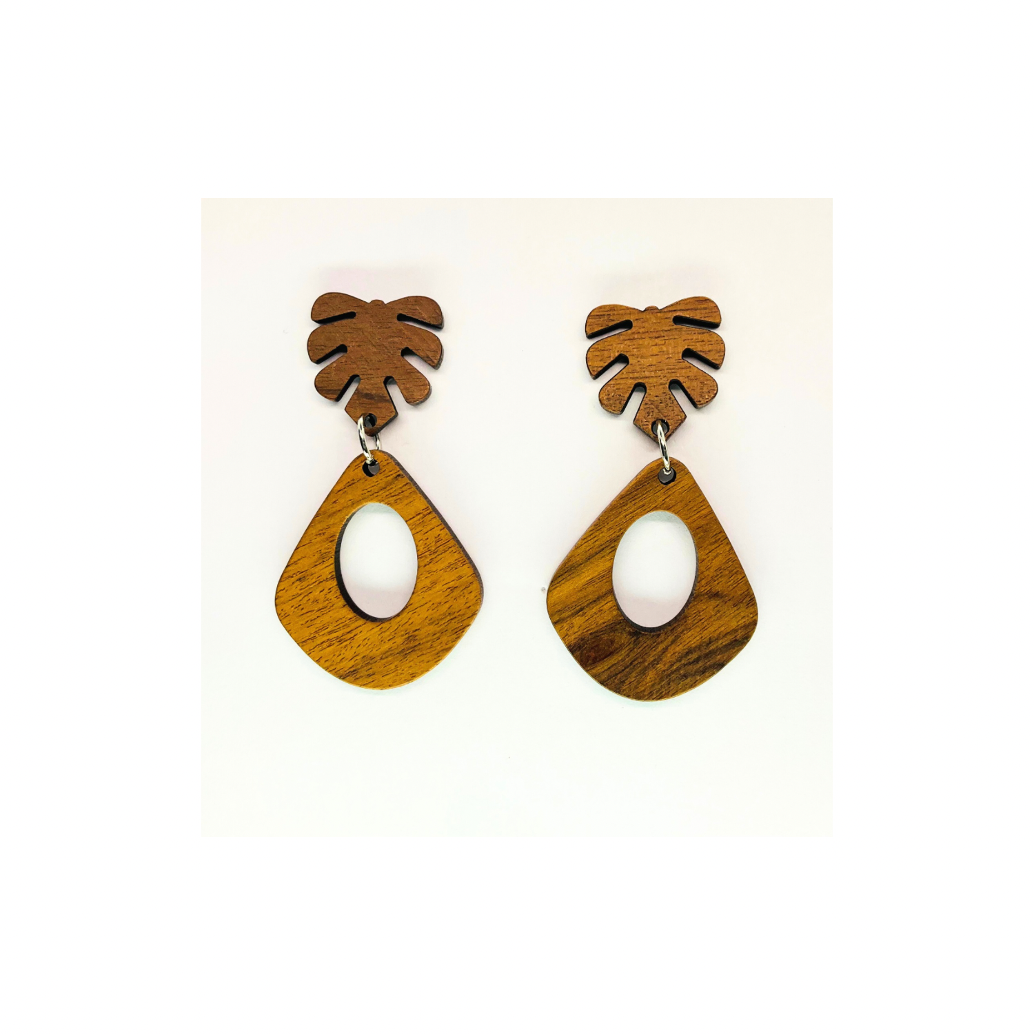 Boho Wood Collection Leaf Stud Dangle Earrings for Female - Wooden Design with Leaf Motif and Teardrop Shape