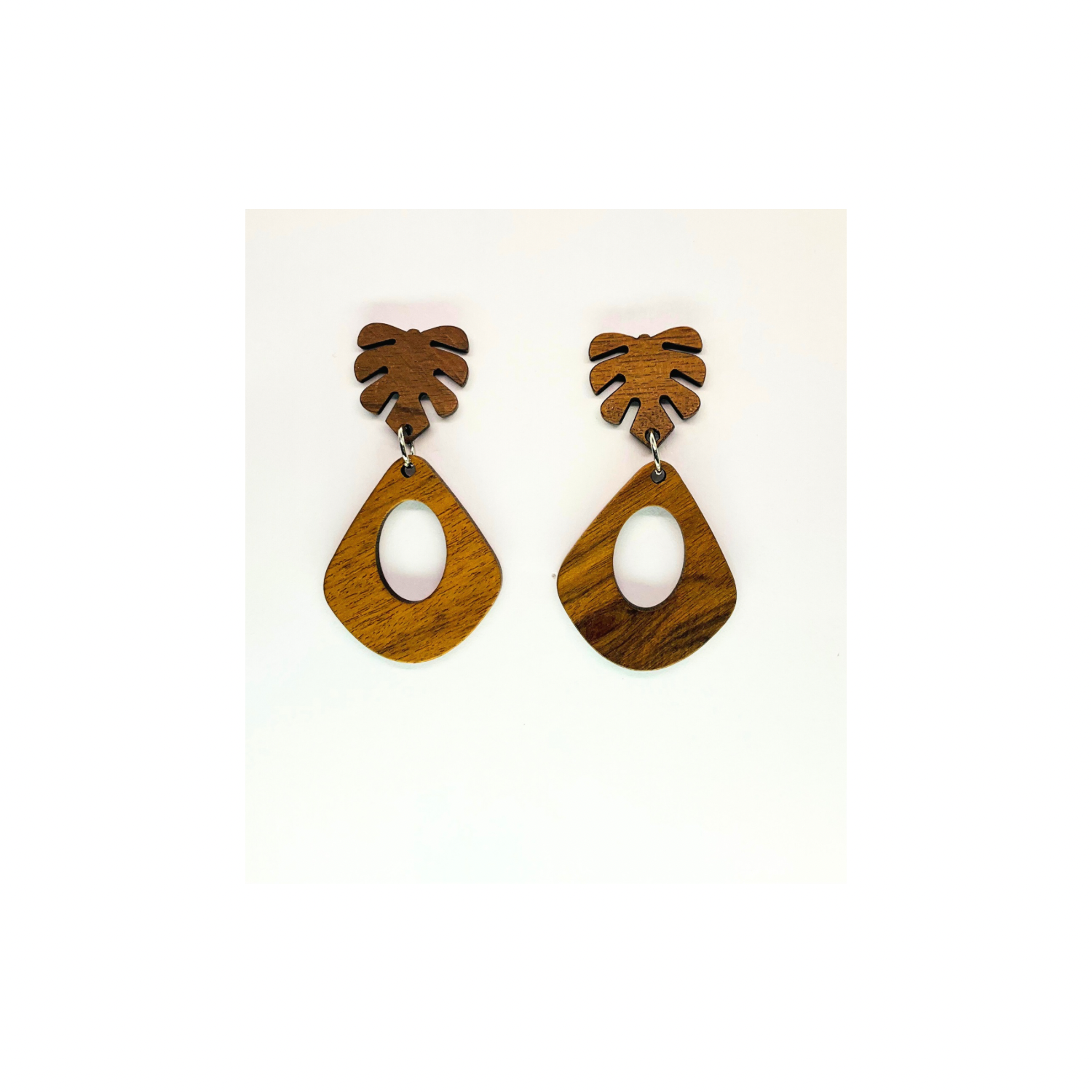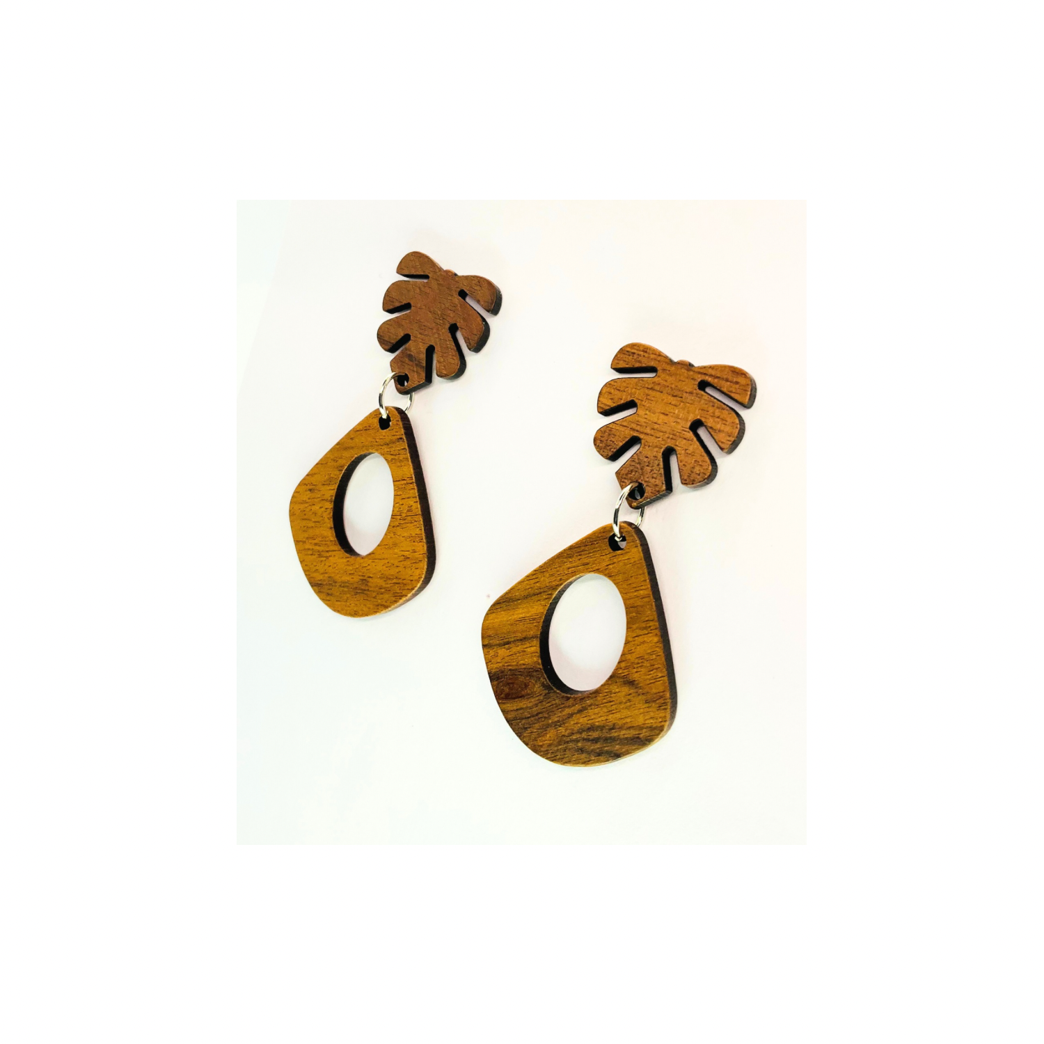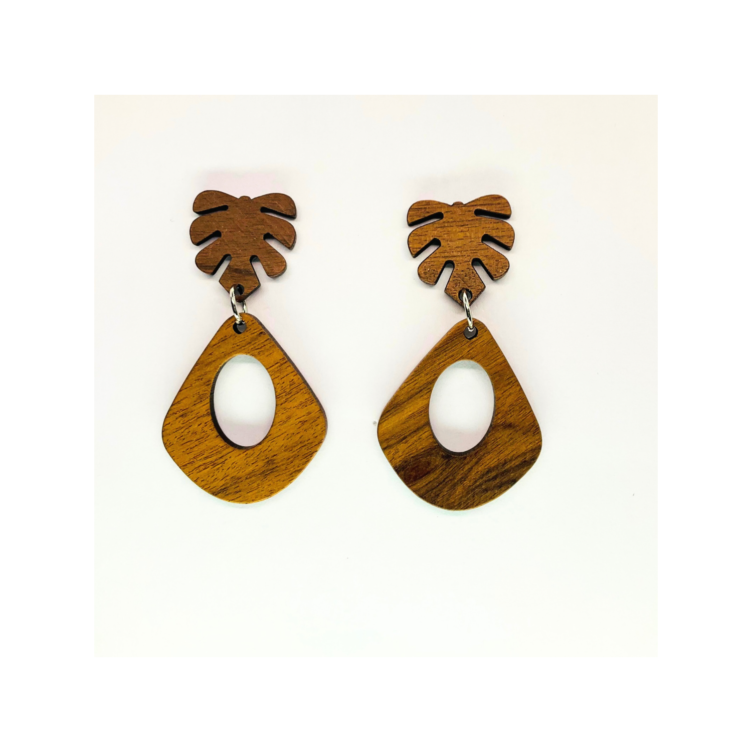 Boho Wood Collection Leaf Stud Dangle Earrings for Female - Wooden Design with Leaf Motif and Teardrop Shape