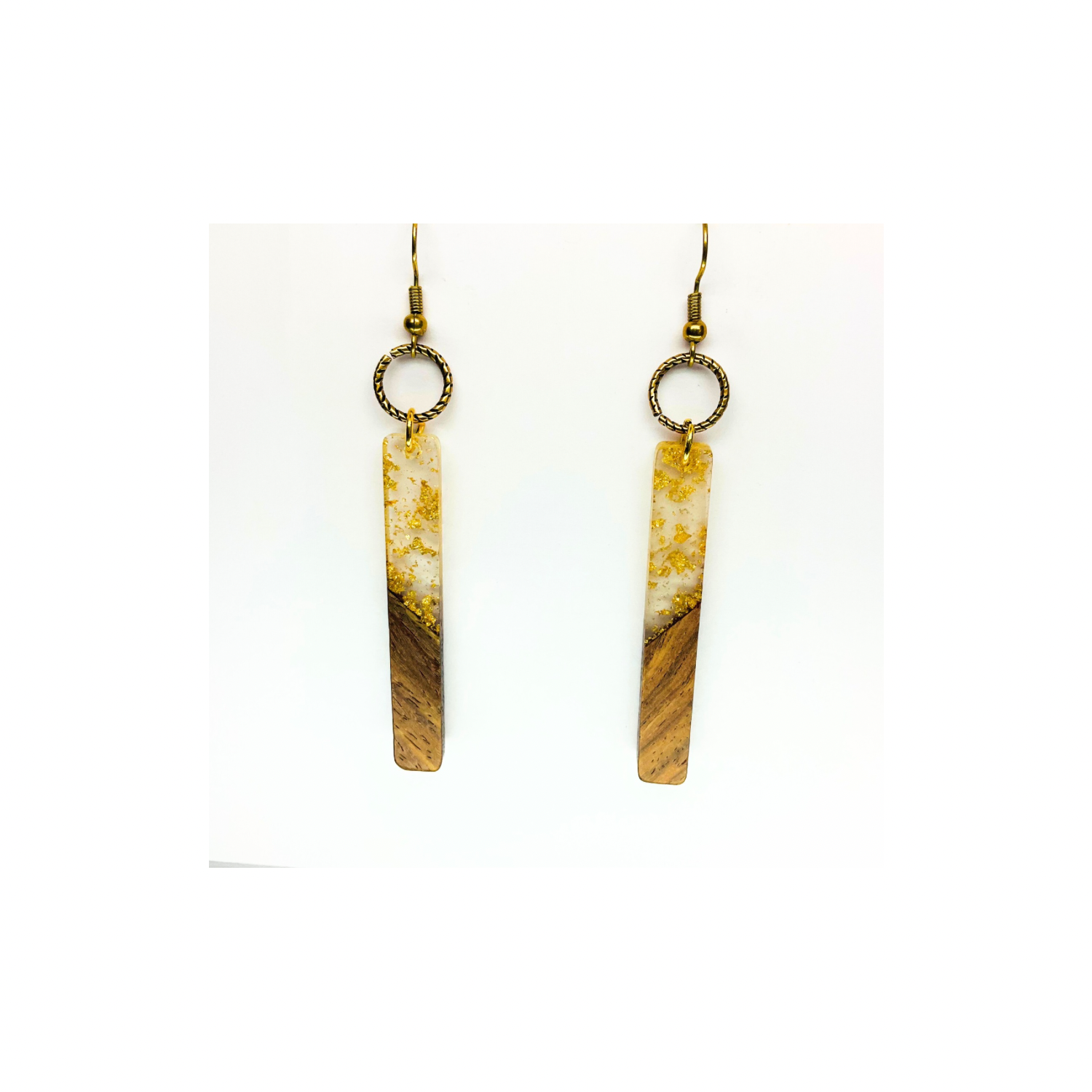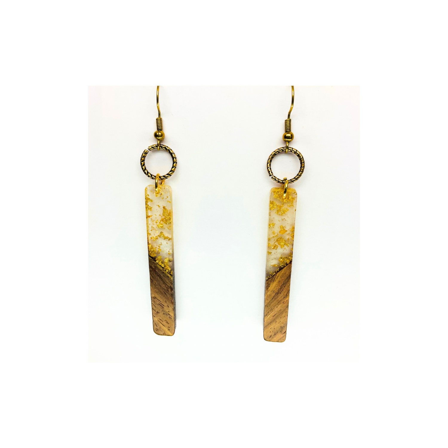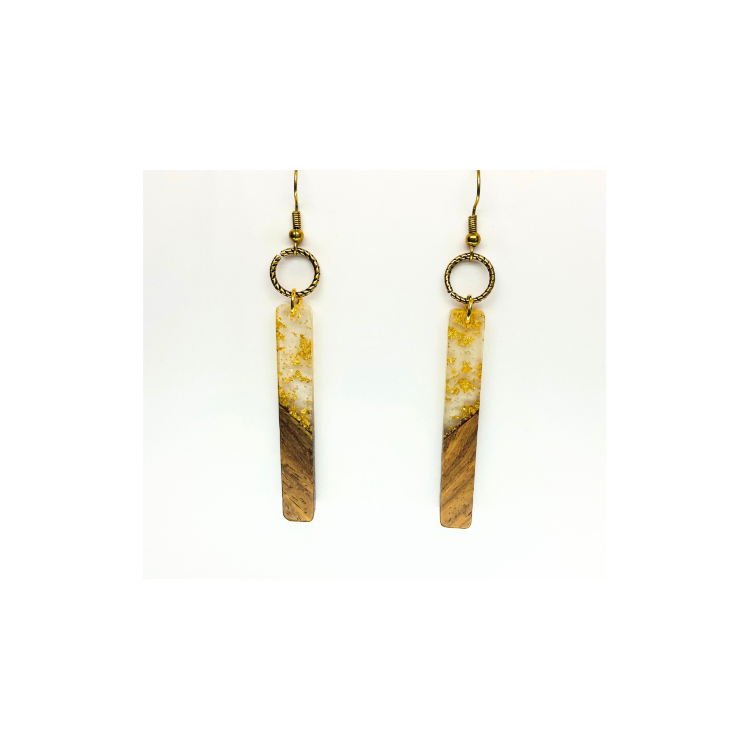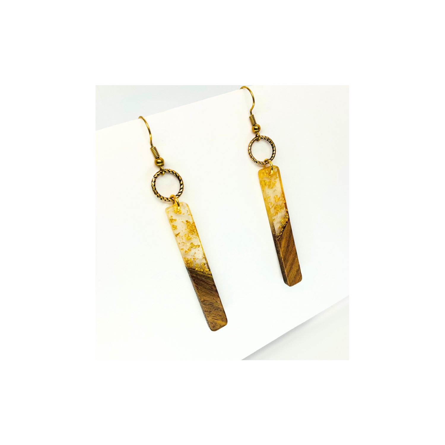 Boho Wood Collection Long Dangle Earring with Gold Accents and Wooden Design Elements