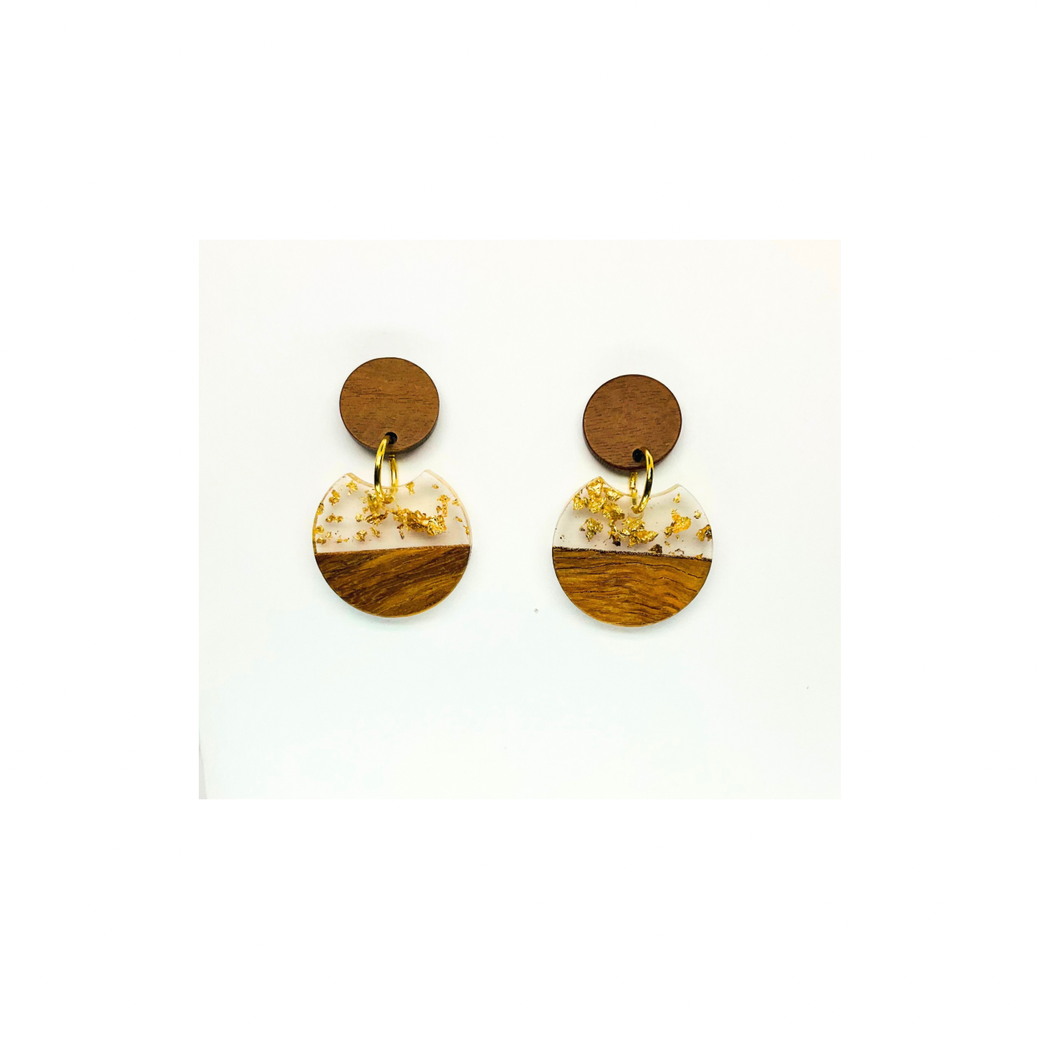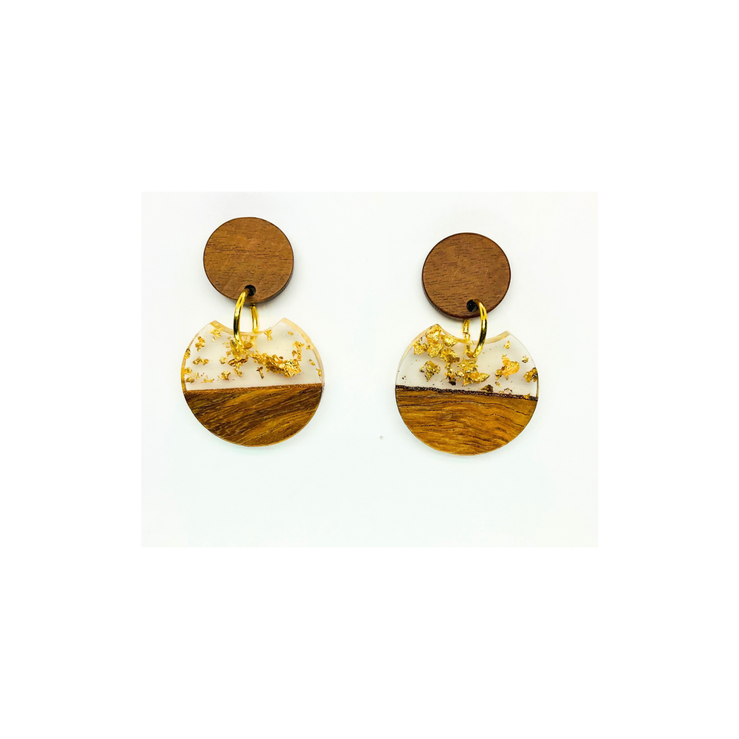 Boho Wood Collection Round Stud Earring with Gold Accents and Wooden Design Elements