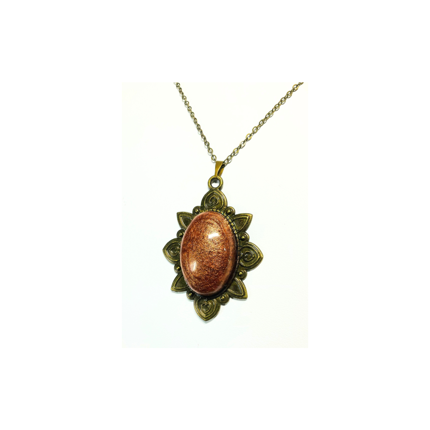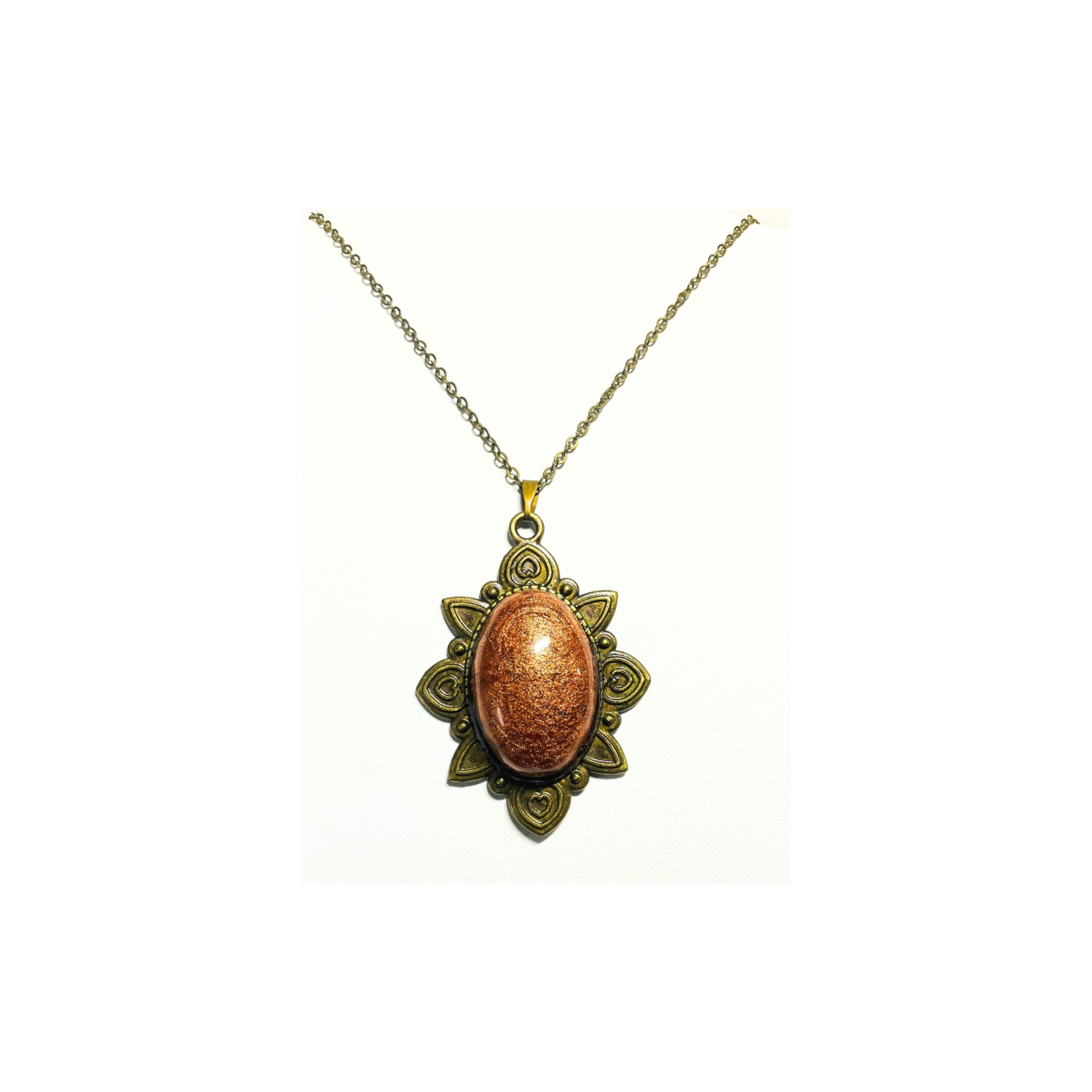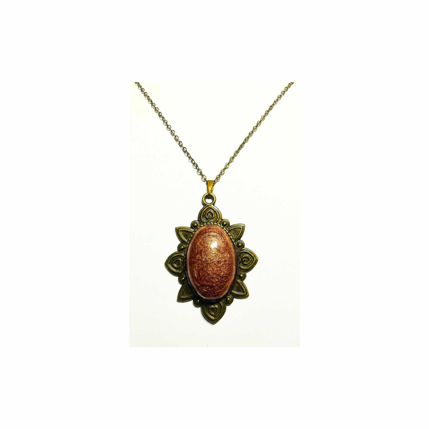 Bronze Oval Antique Style 18-inch Necklace with Oval Pendant and Detailed Floral Design Metal Coating Vintage Aesthetics