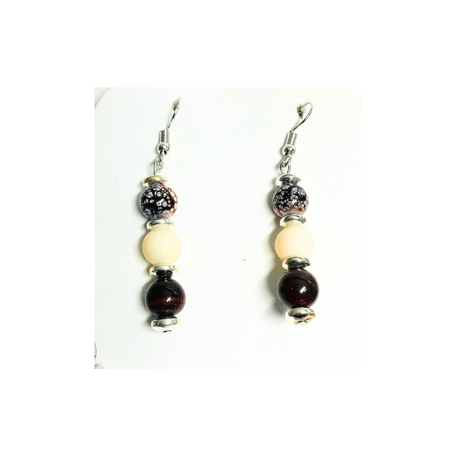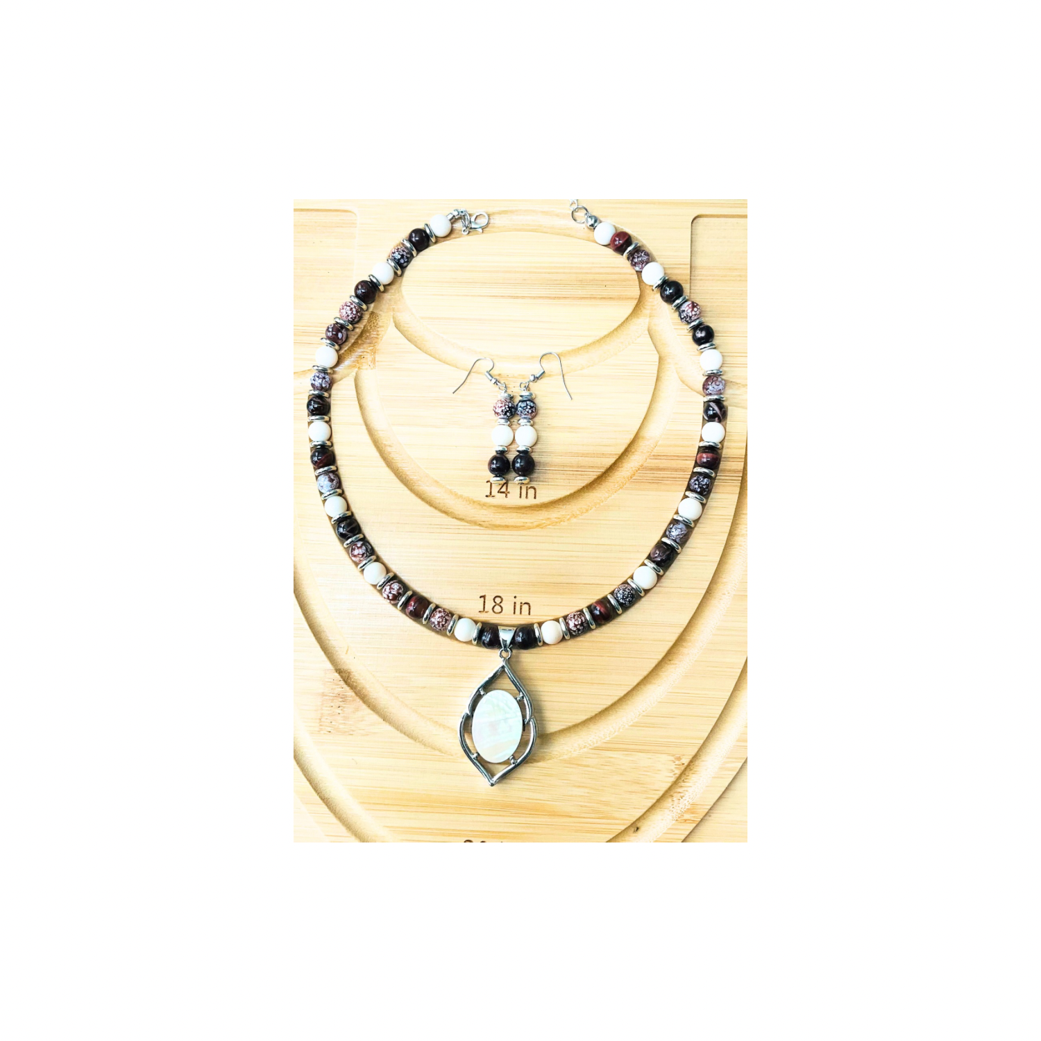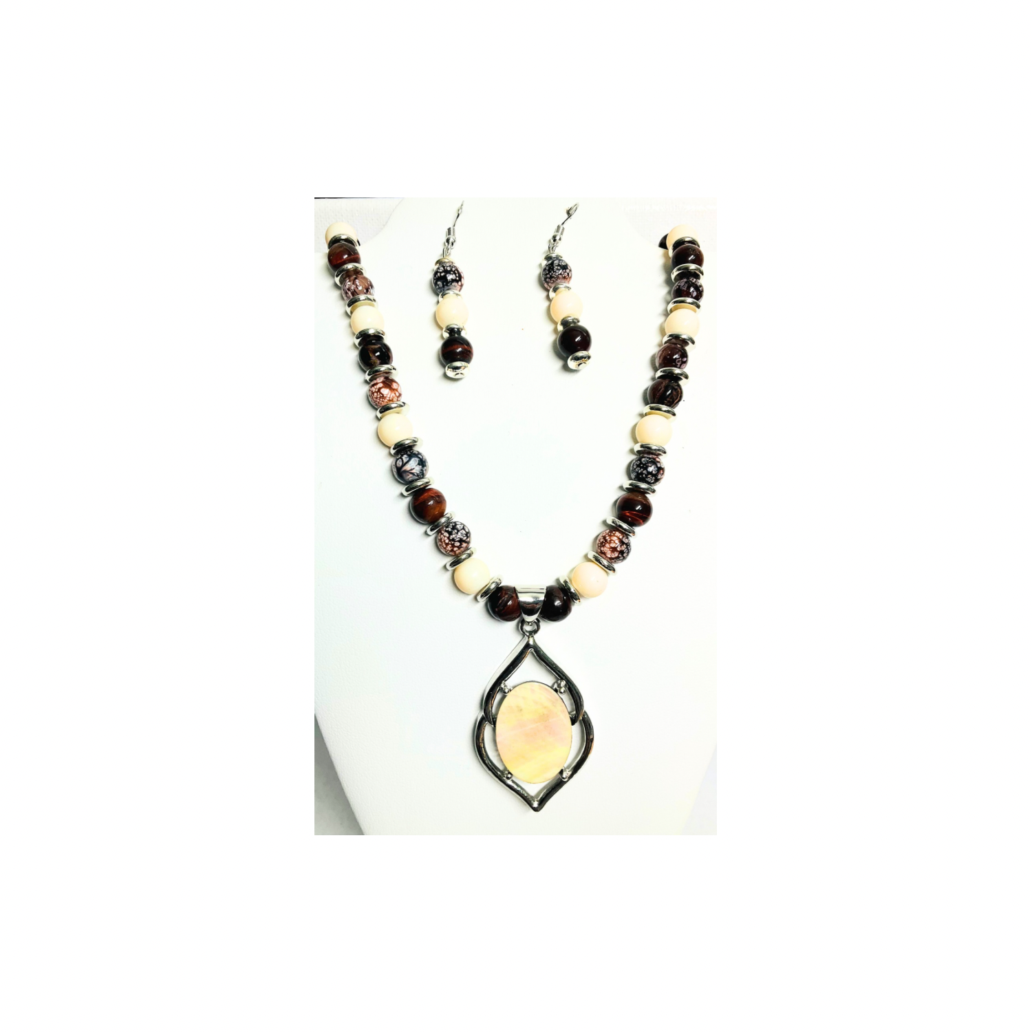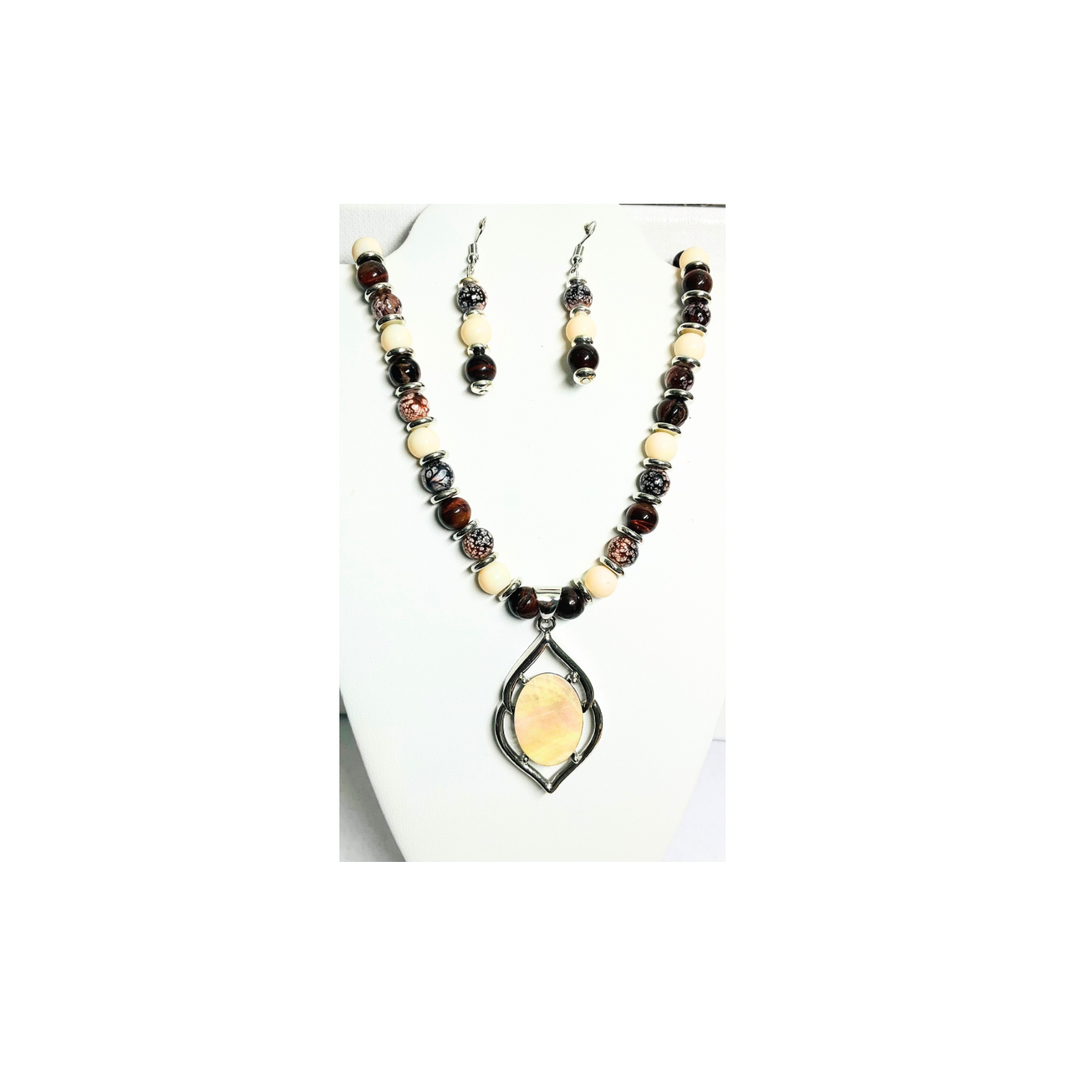 Beaded Necklace and Dangle Earring Set: Mother of Pearl Pendant