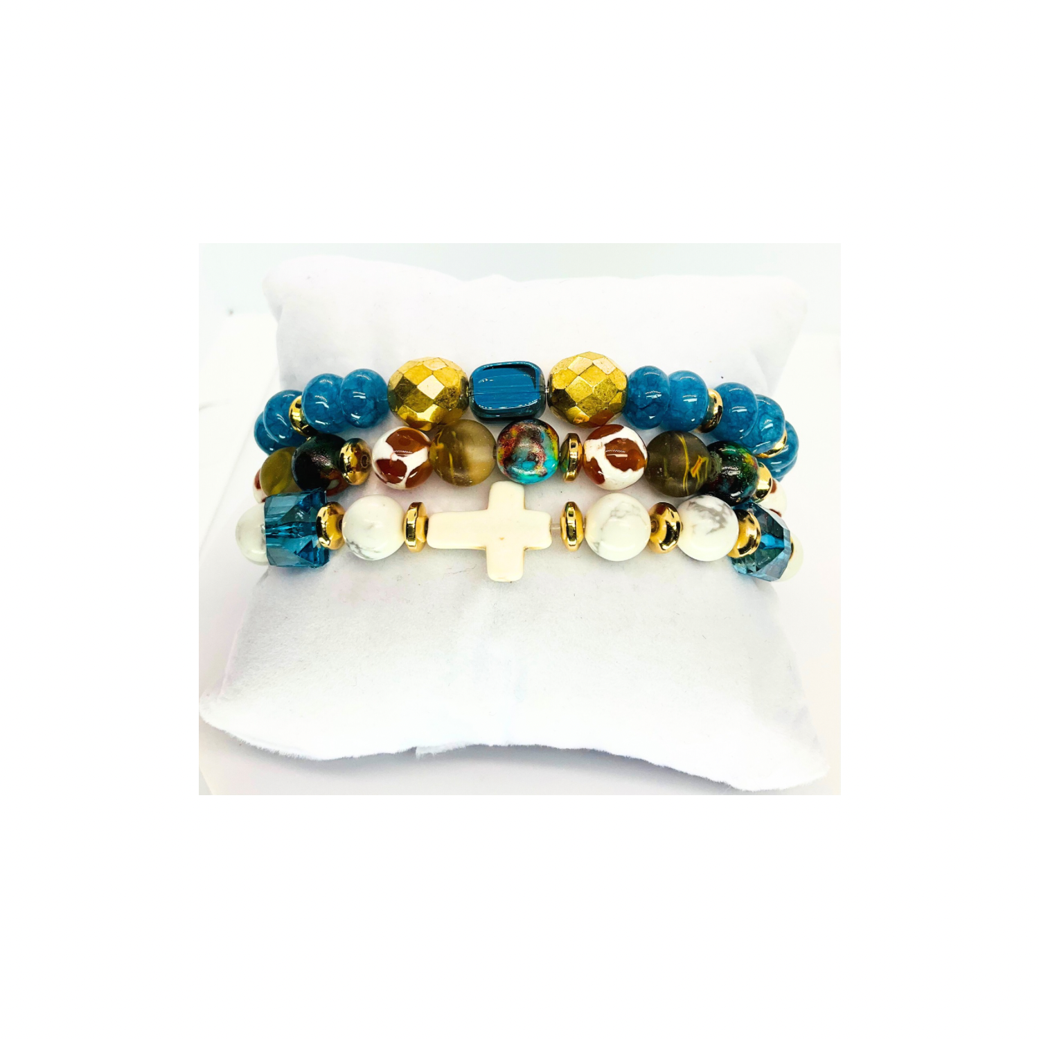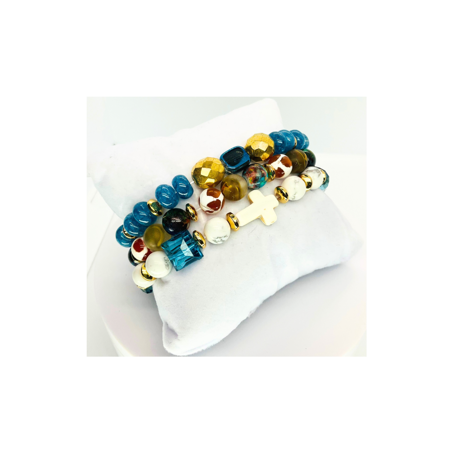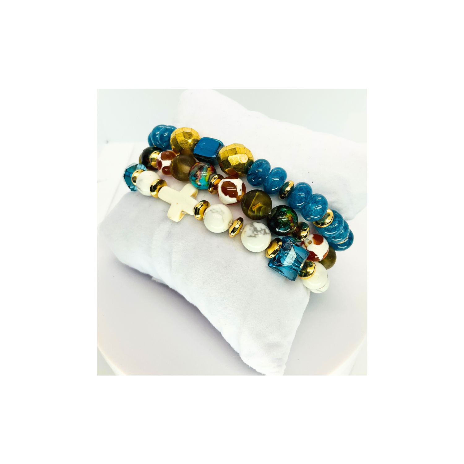 β¨ Set Includes: Three cerulean blue stacked stretch bracelets. π