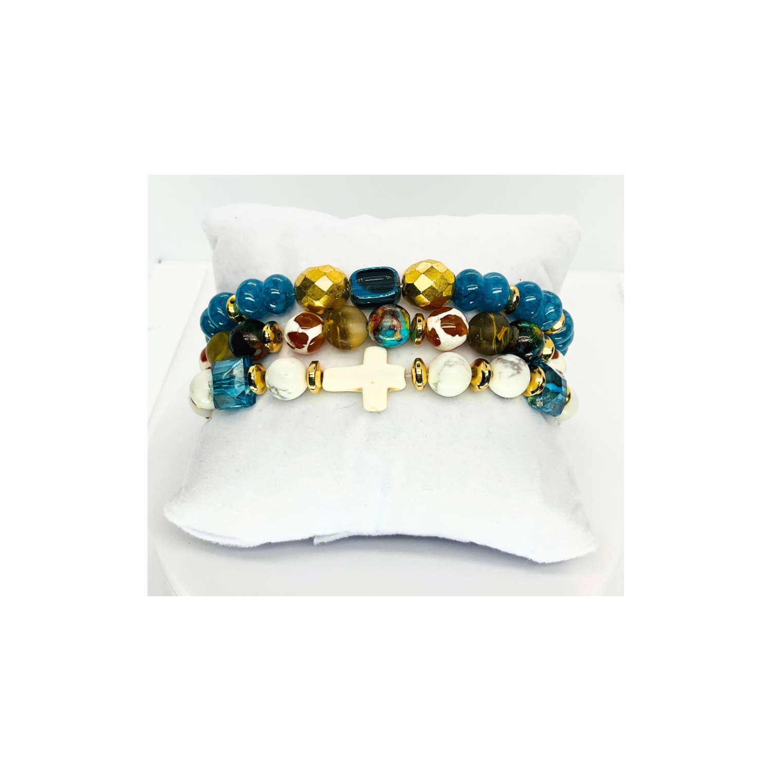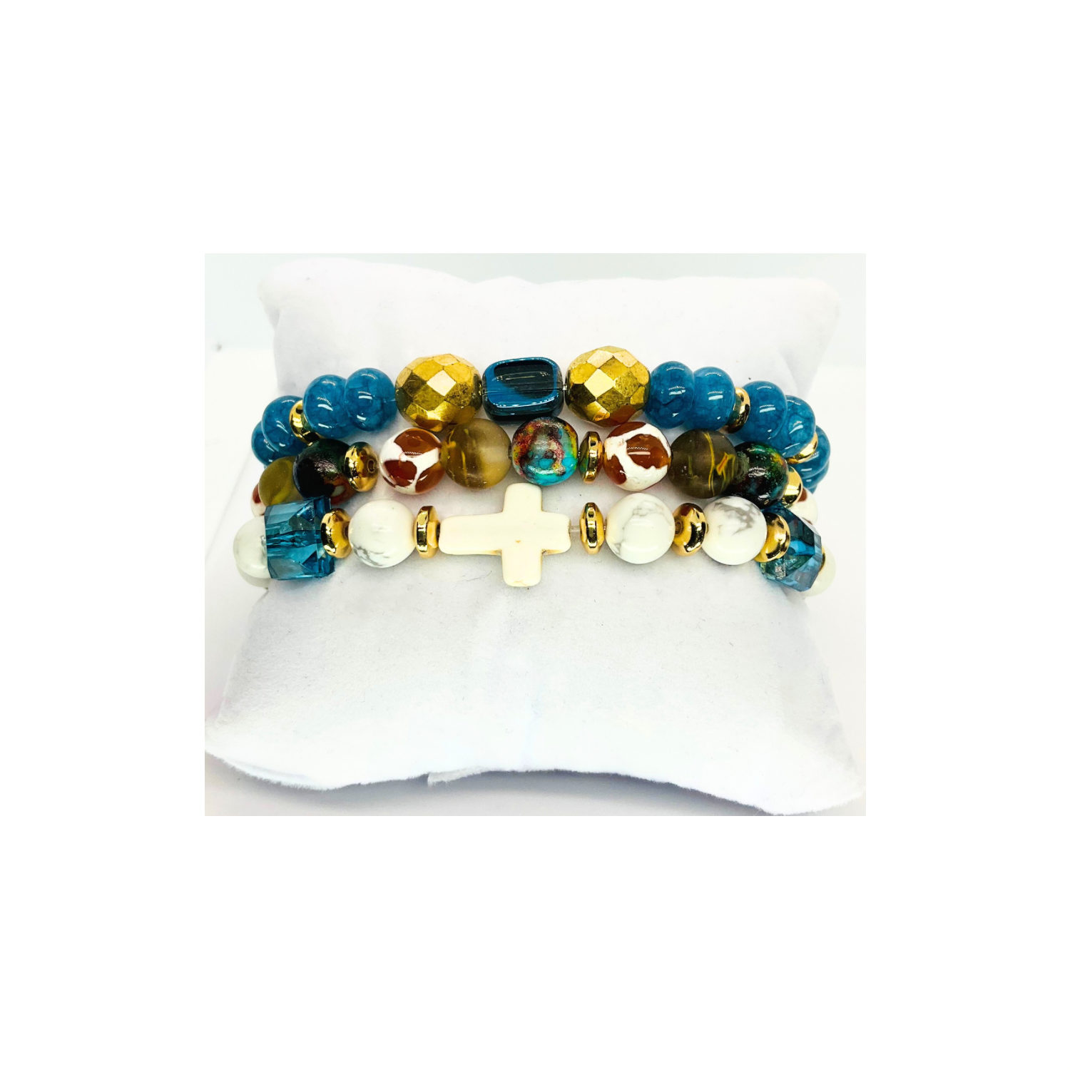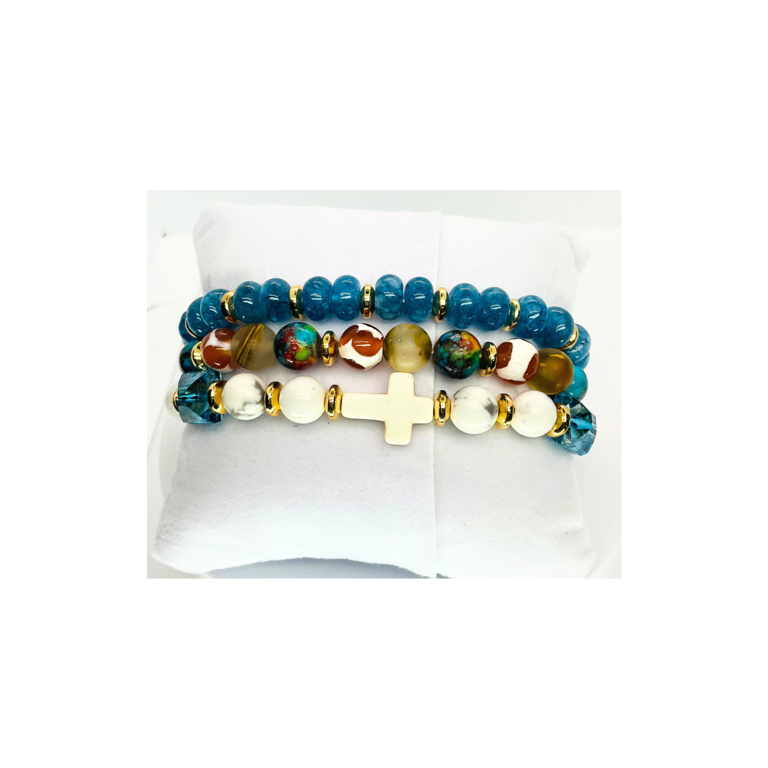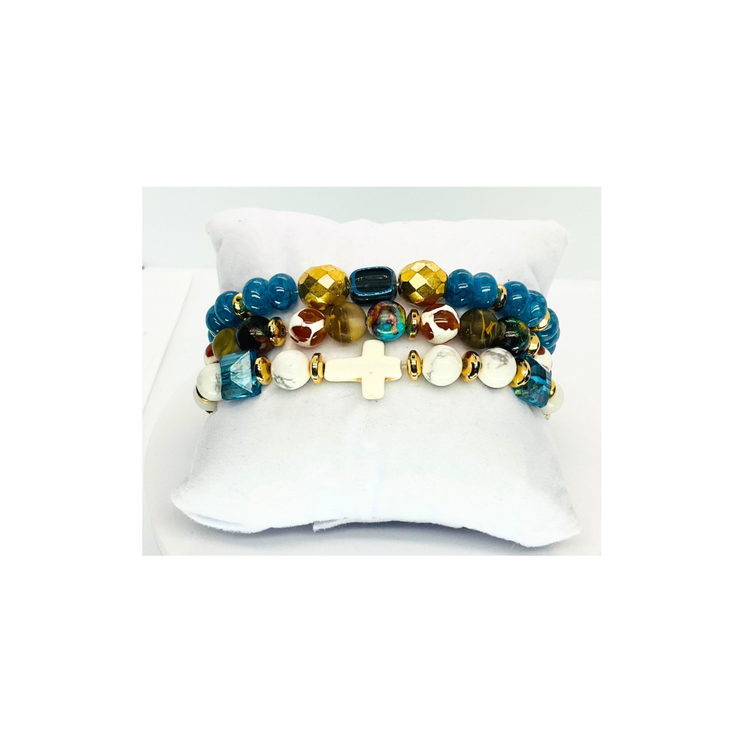 β¨ Set Includes: Three cerulean blue stacked stretch bracelets. π