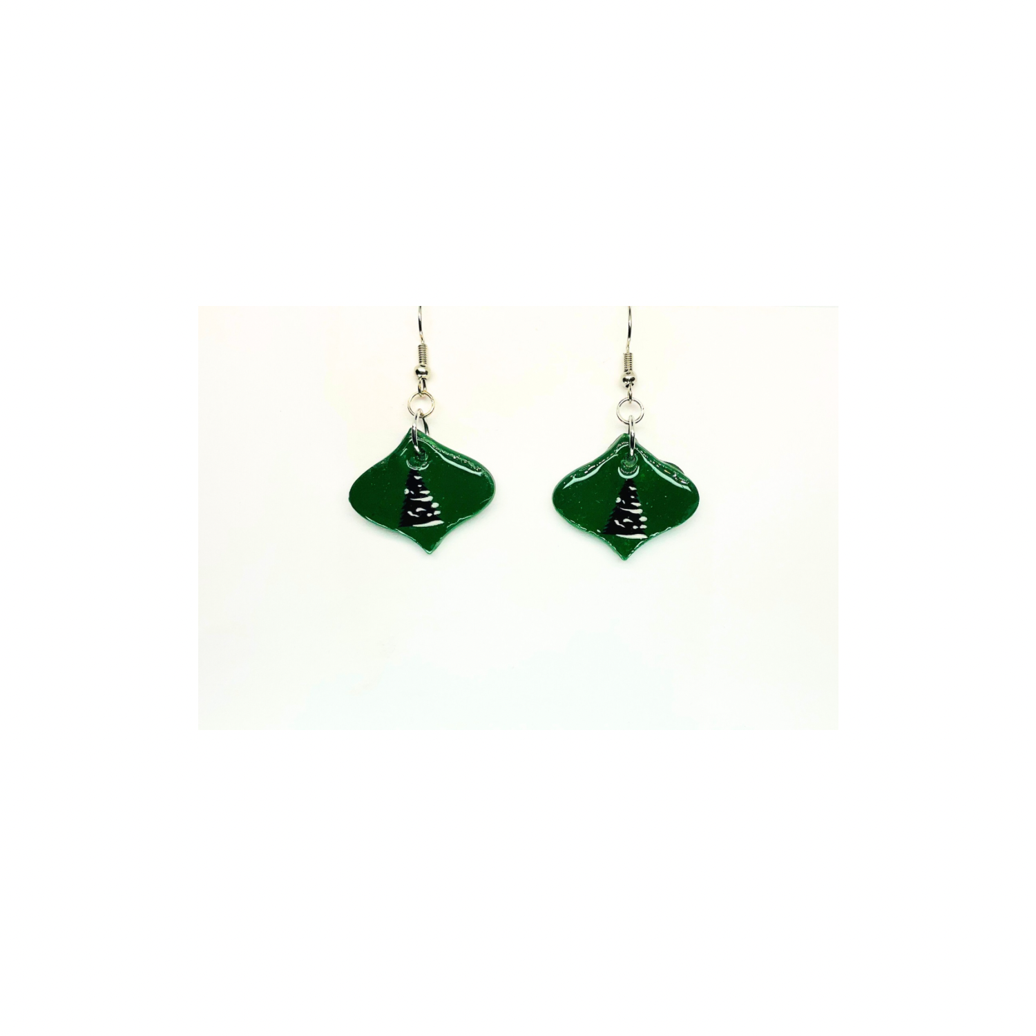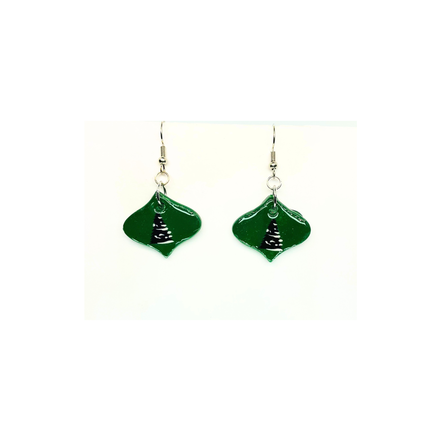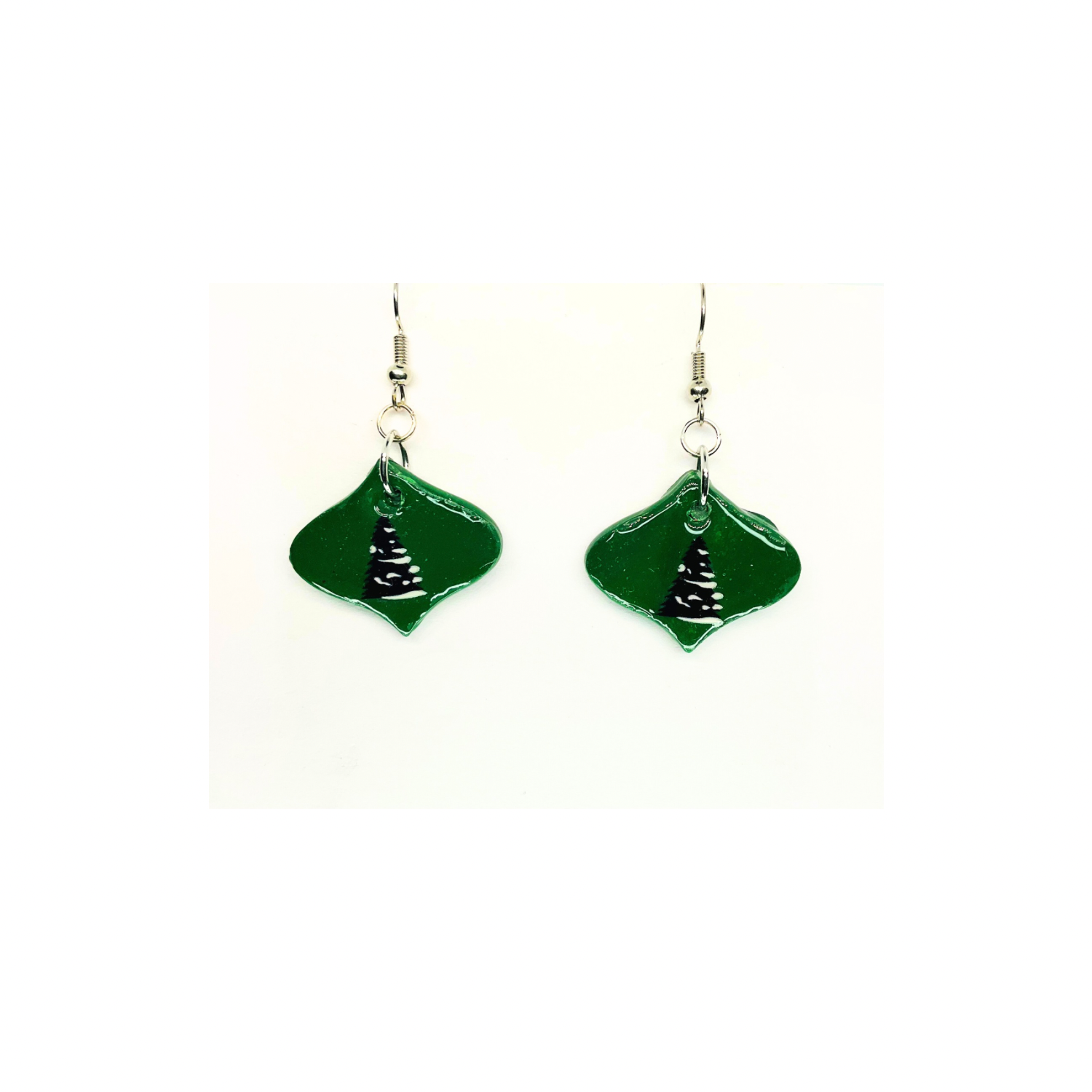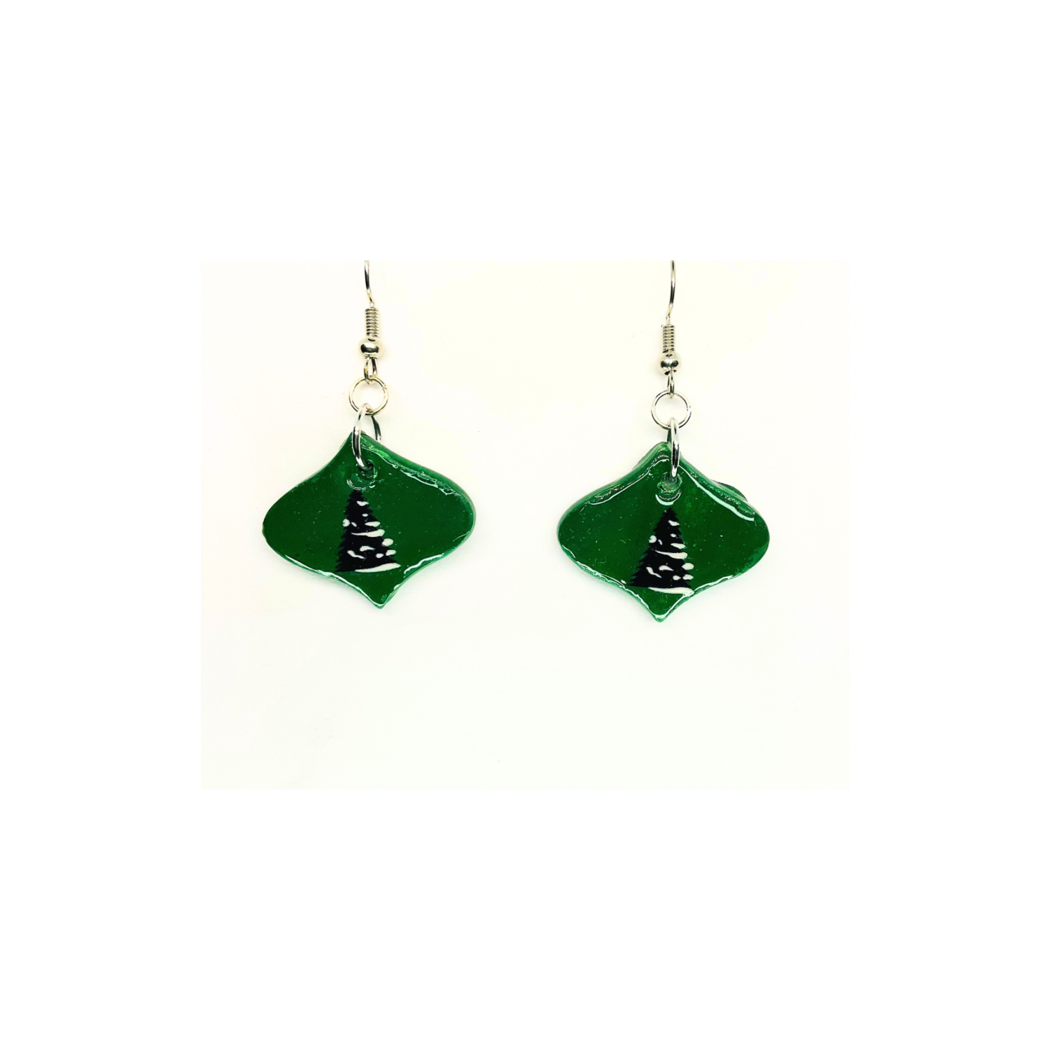 Christmas in July Collection Green Ornament with Tree Dangle Earrings