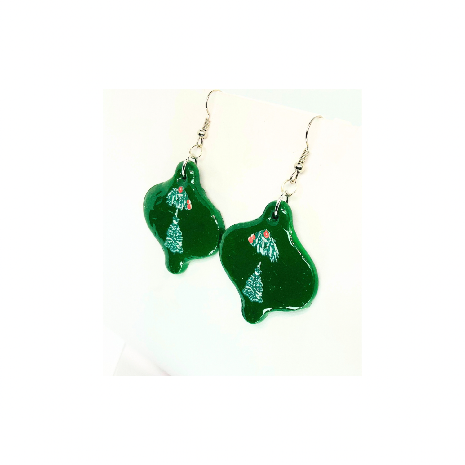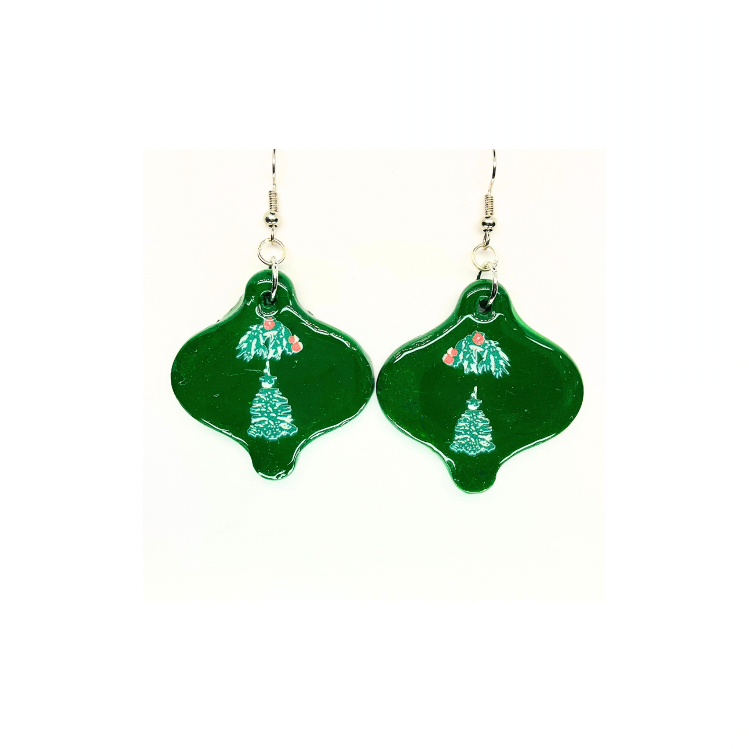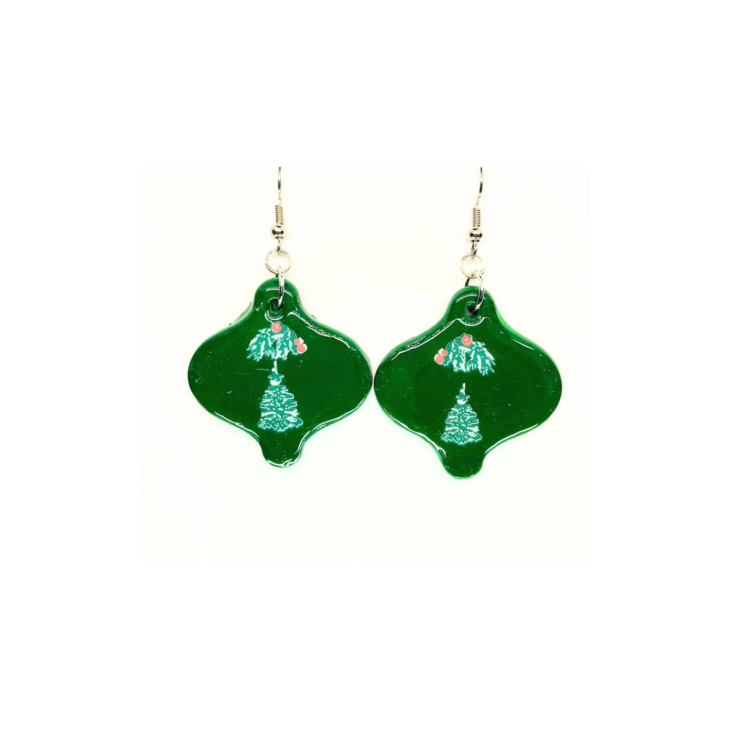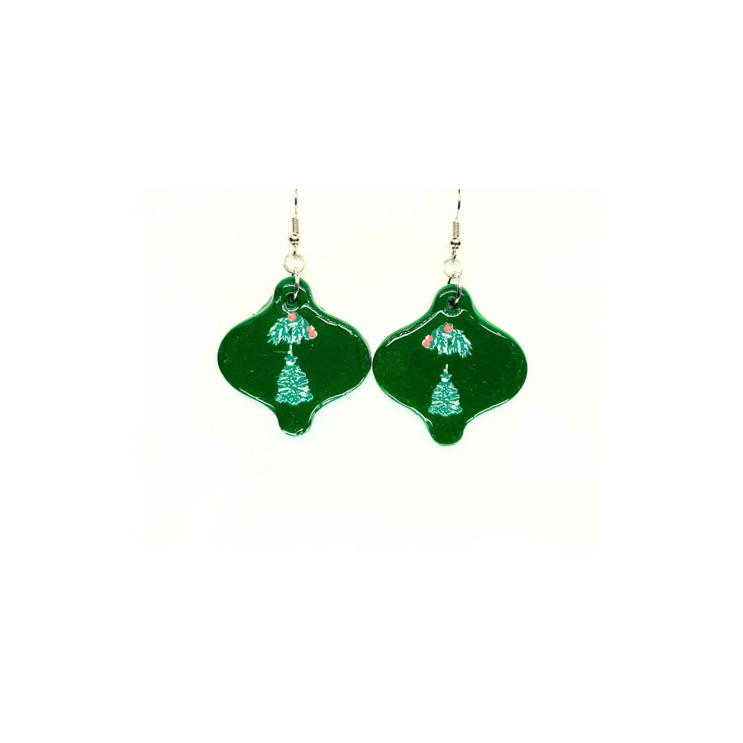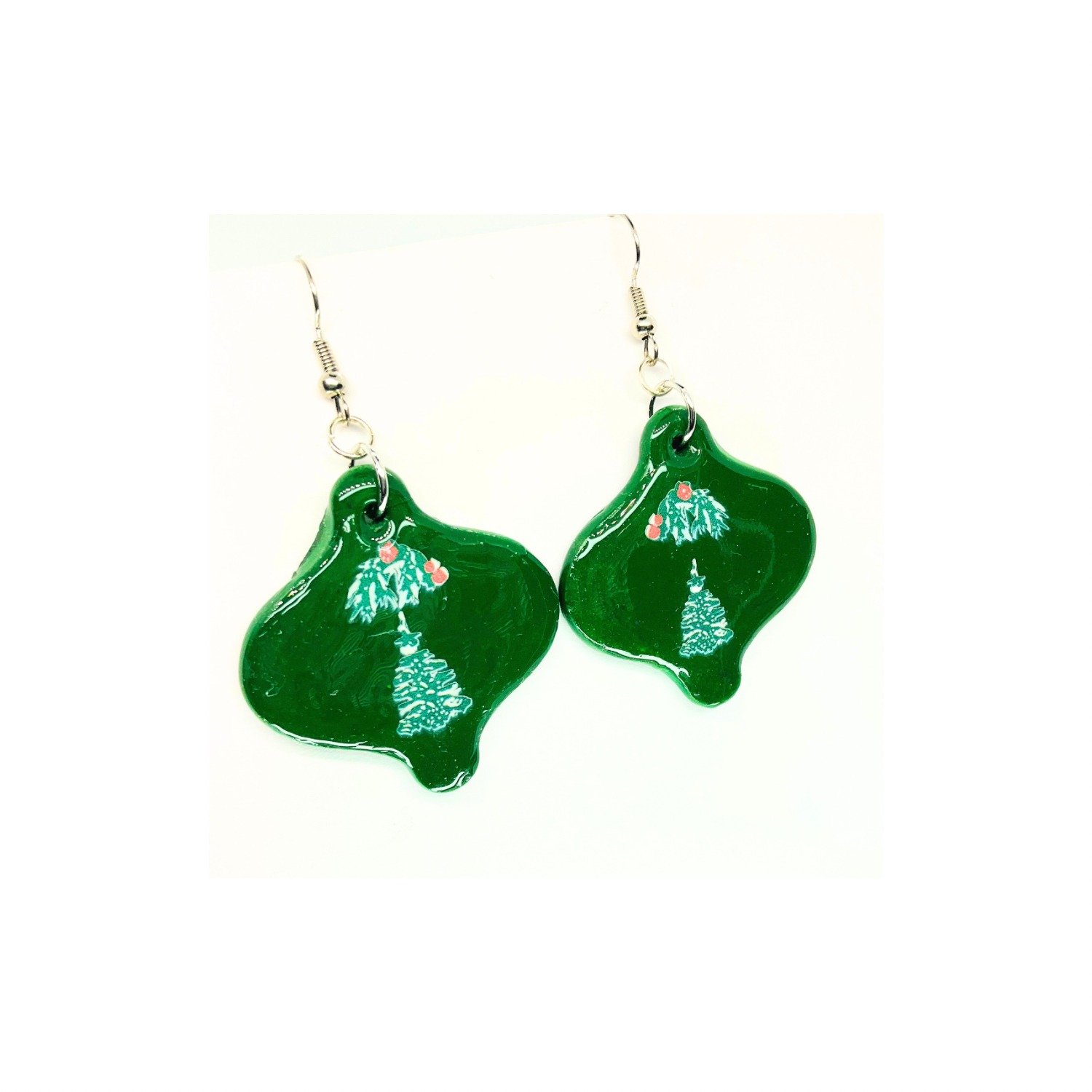 - These earrings feature a green ornament design, perfect for the Christmas in July collection. The ornament includes a tree embellishment, adding a touch of holiday cheer. Ideal for festive occasions, they bring a seasonal vibe to your look.