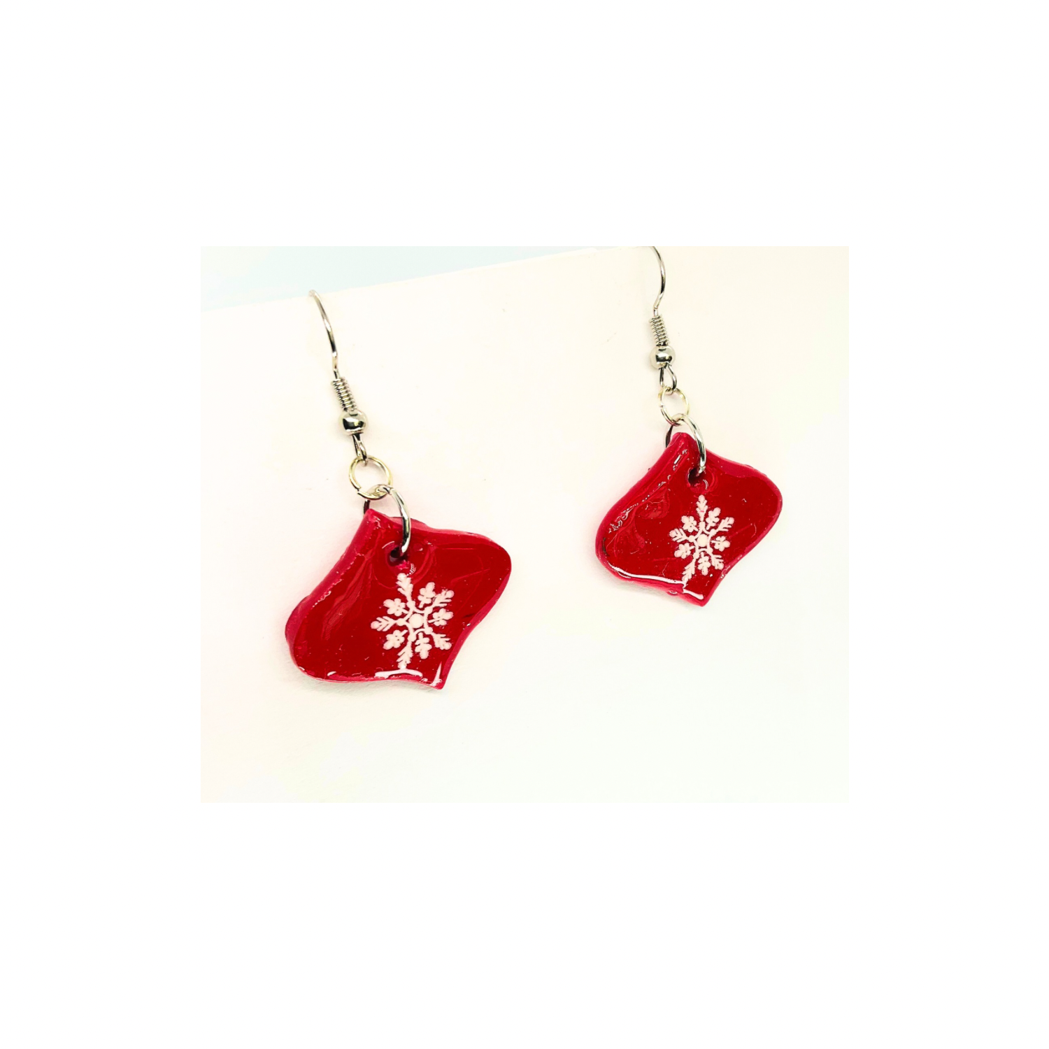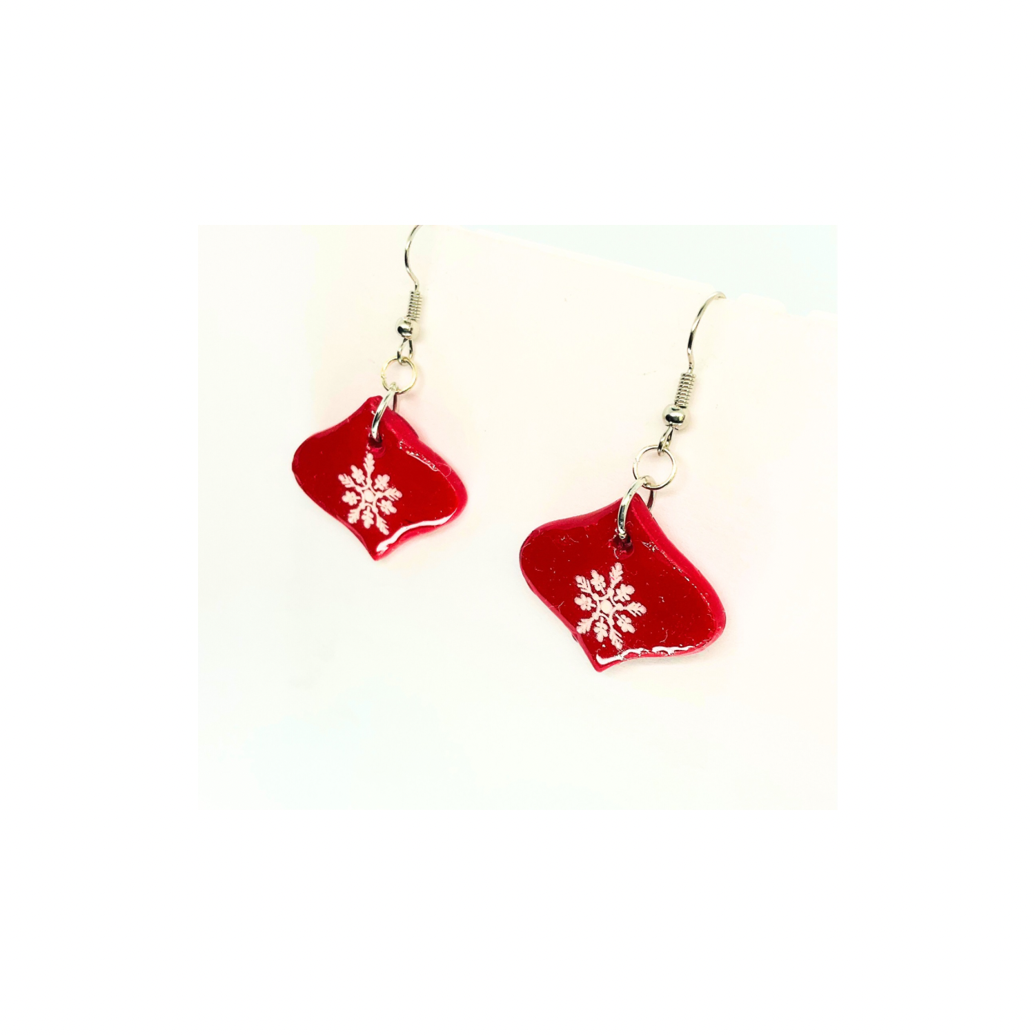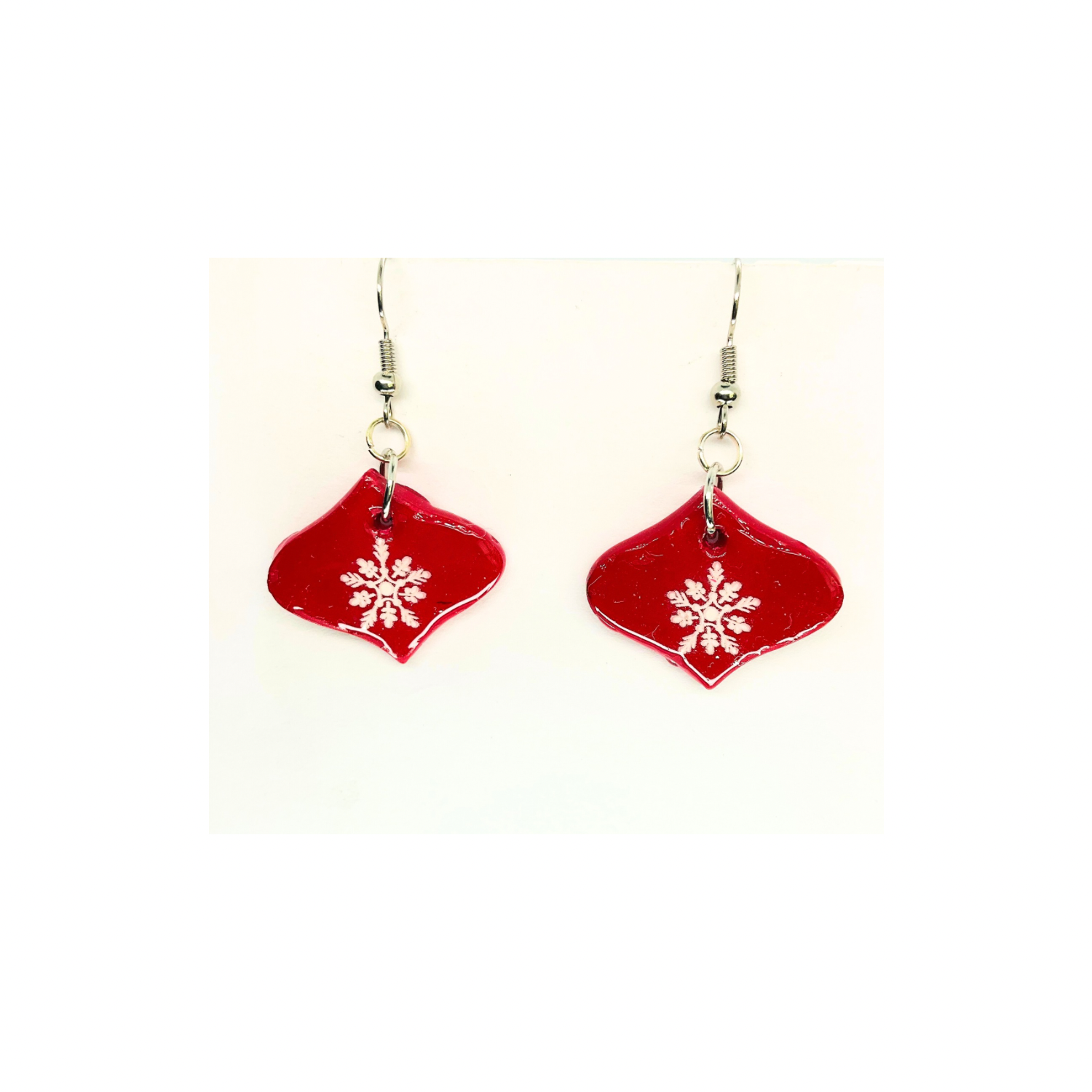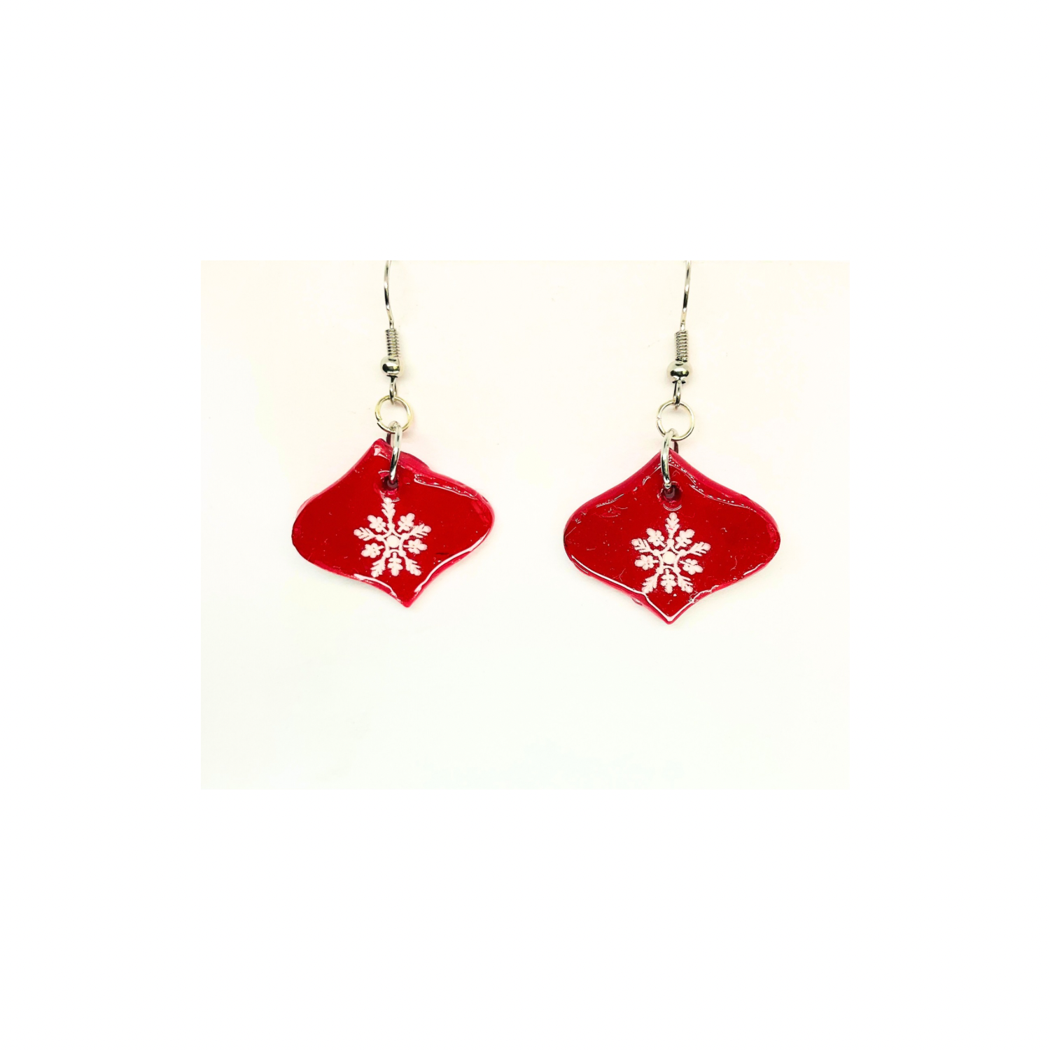 Christmas in July Collection Red Ornament with Snowflake Dangle Earrings - Festive Holiday Accessory