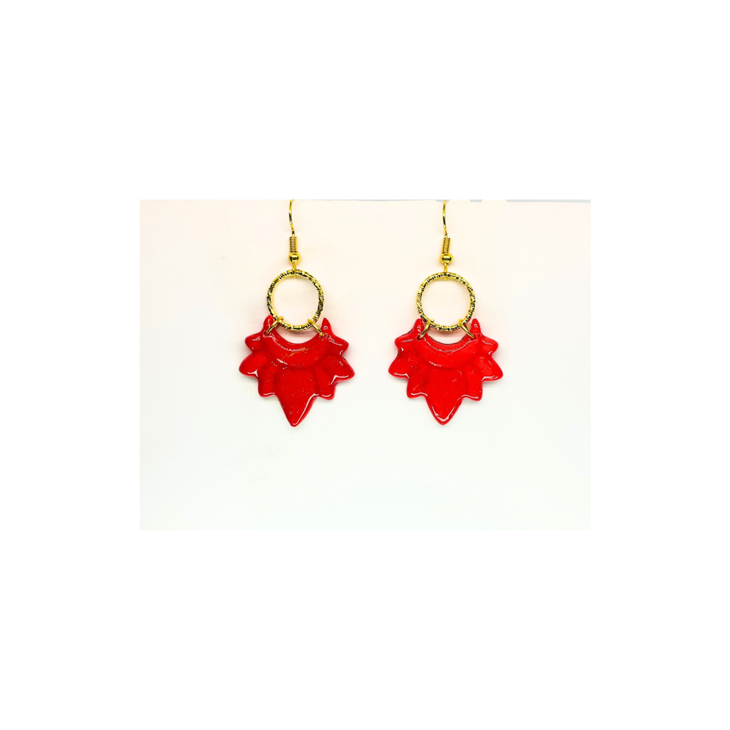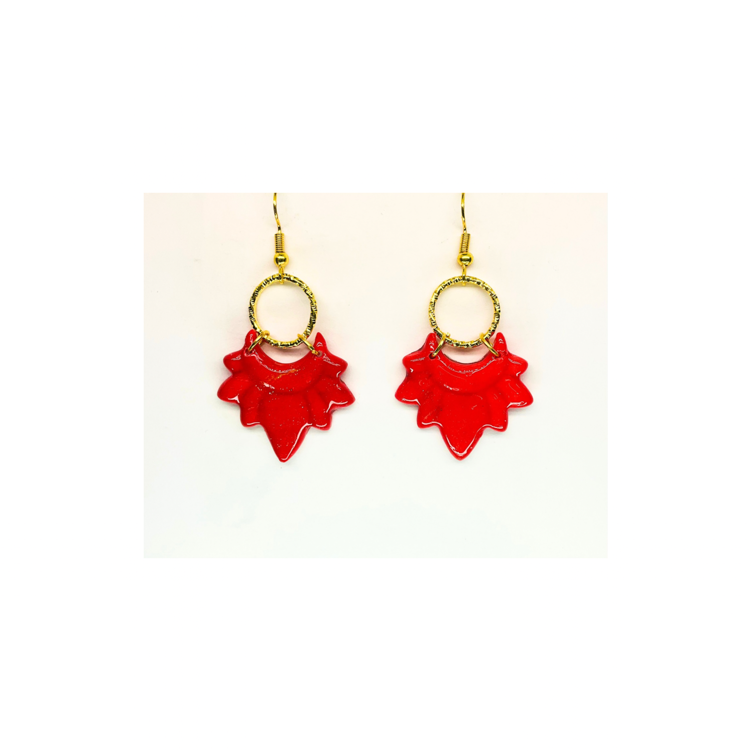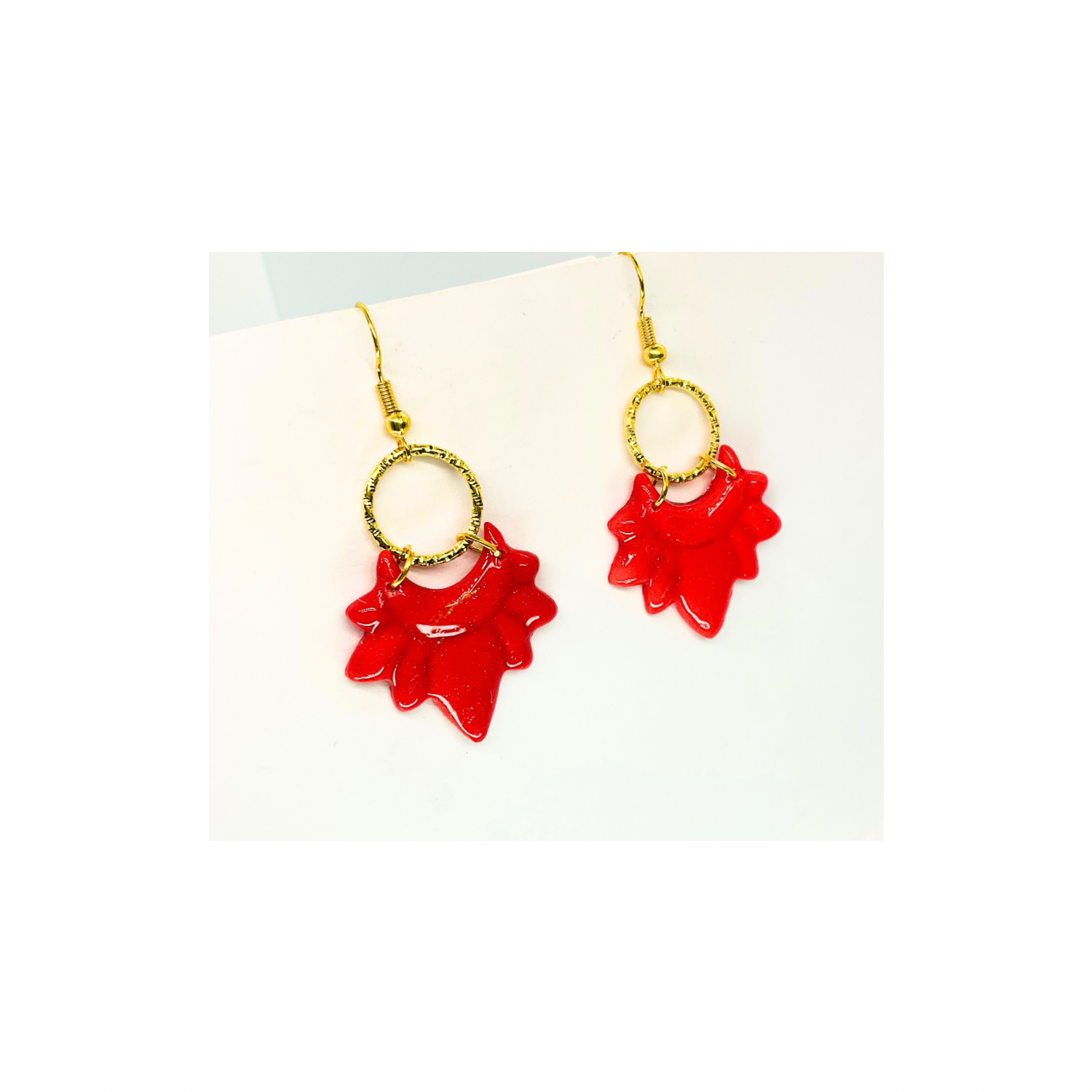 - These dangle earrings feature a striking combination of red and gold accents. Perfect for adding a festive touch to any outfit. π