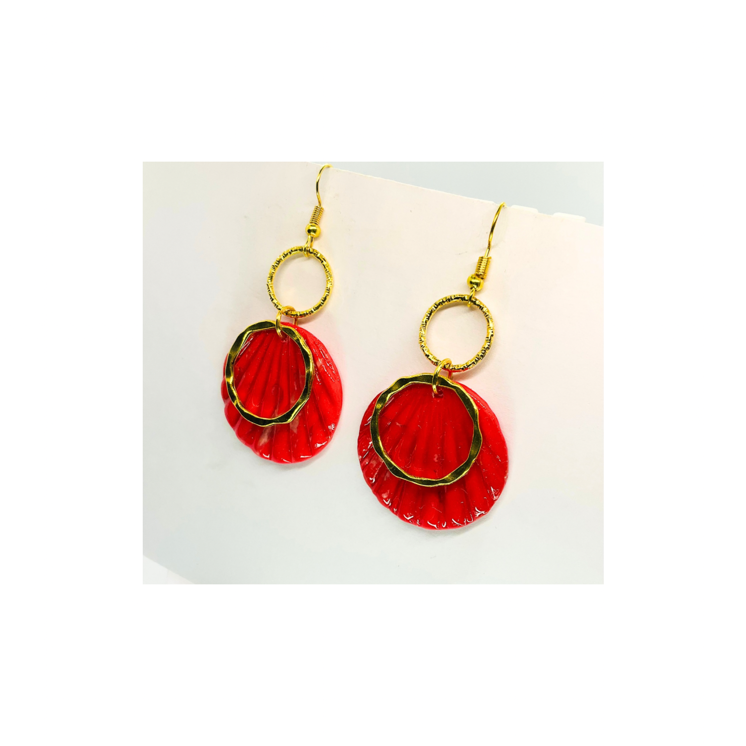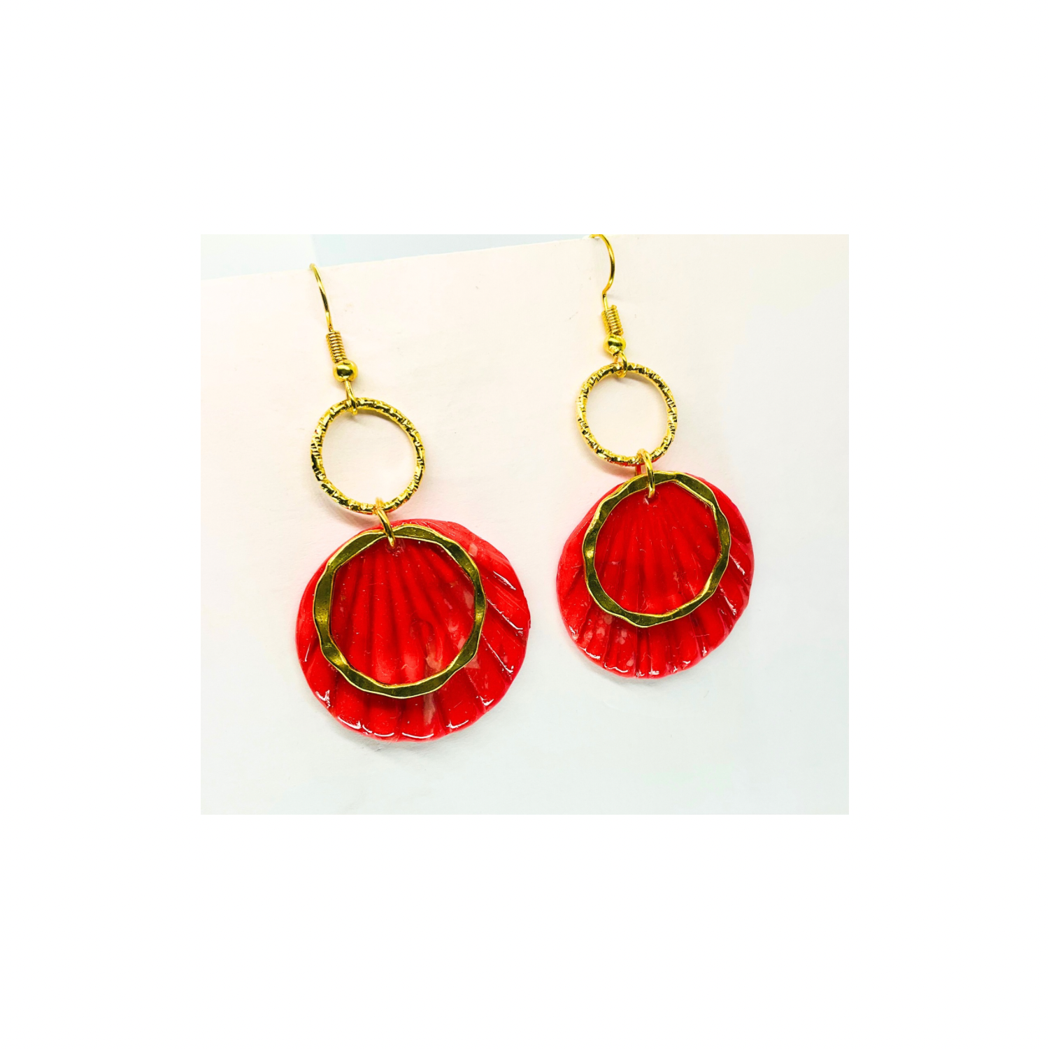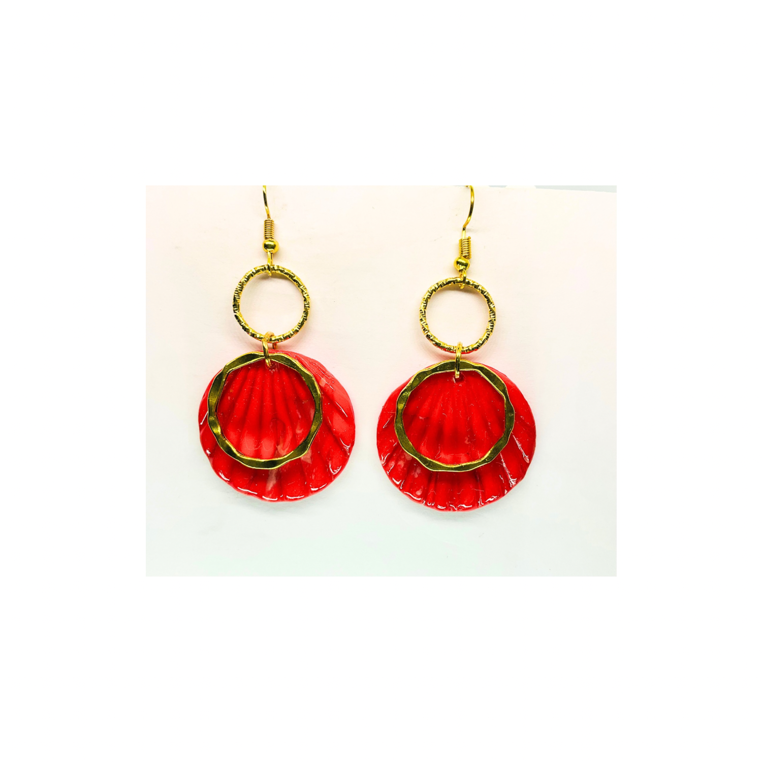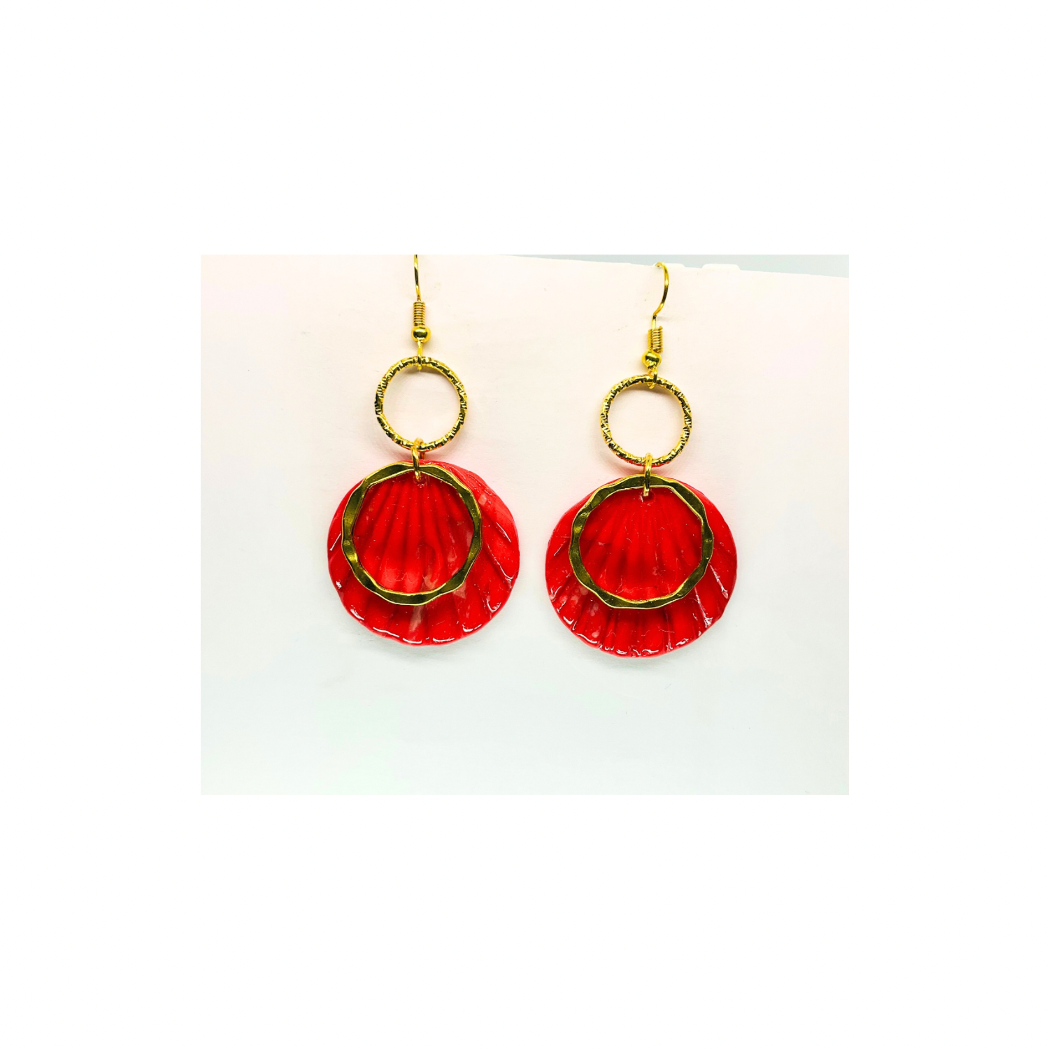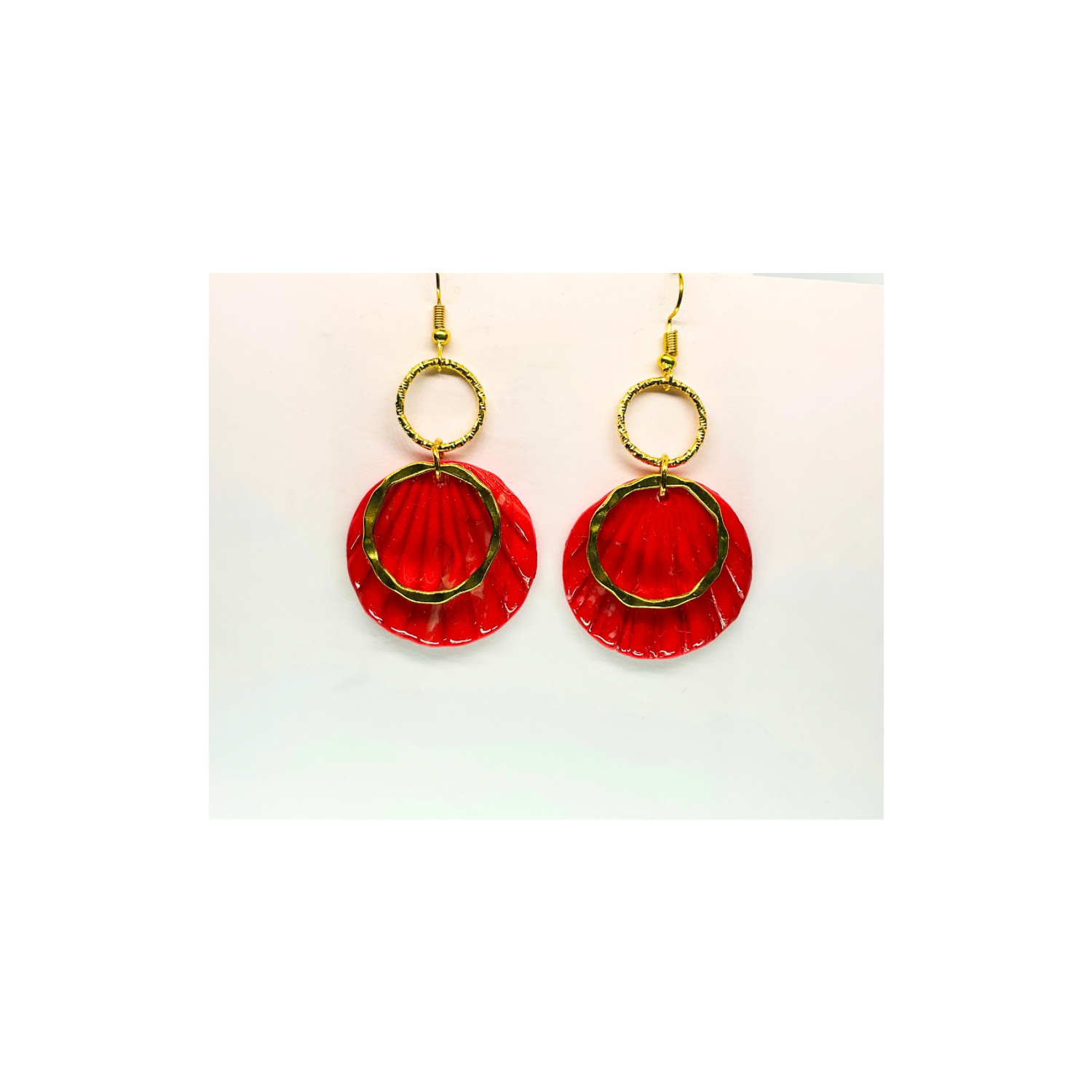 Christmas in July Collection Round with Gold Round Accent Dangle Earrings Red Translucent Design