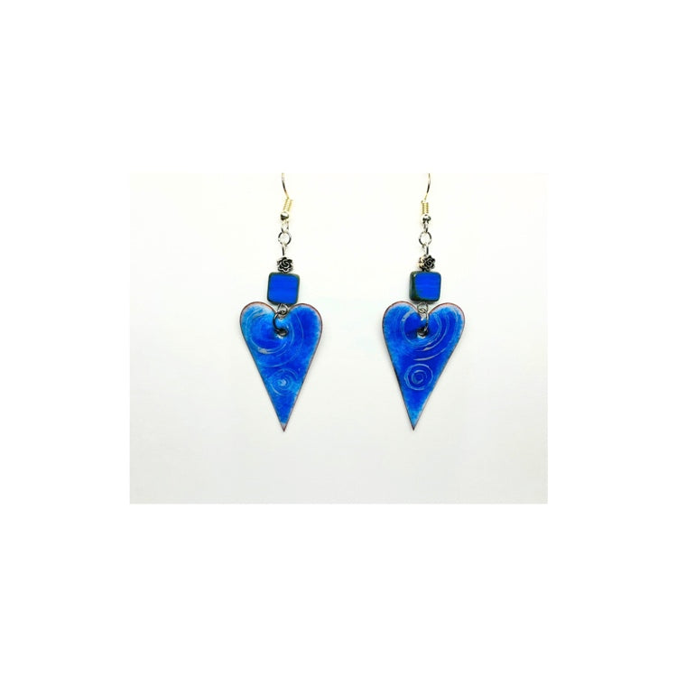 - Handcrafted Beauty: These unique earrings are handmade with care. Each piece features a copper enameled heart, adorned with a blue bead and a silver ear wire. No two pairs are alike, ensuring a one-of-a-kind accessory. π
