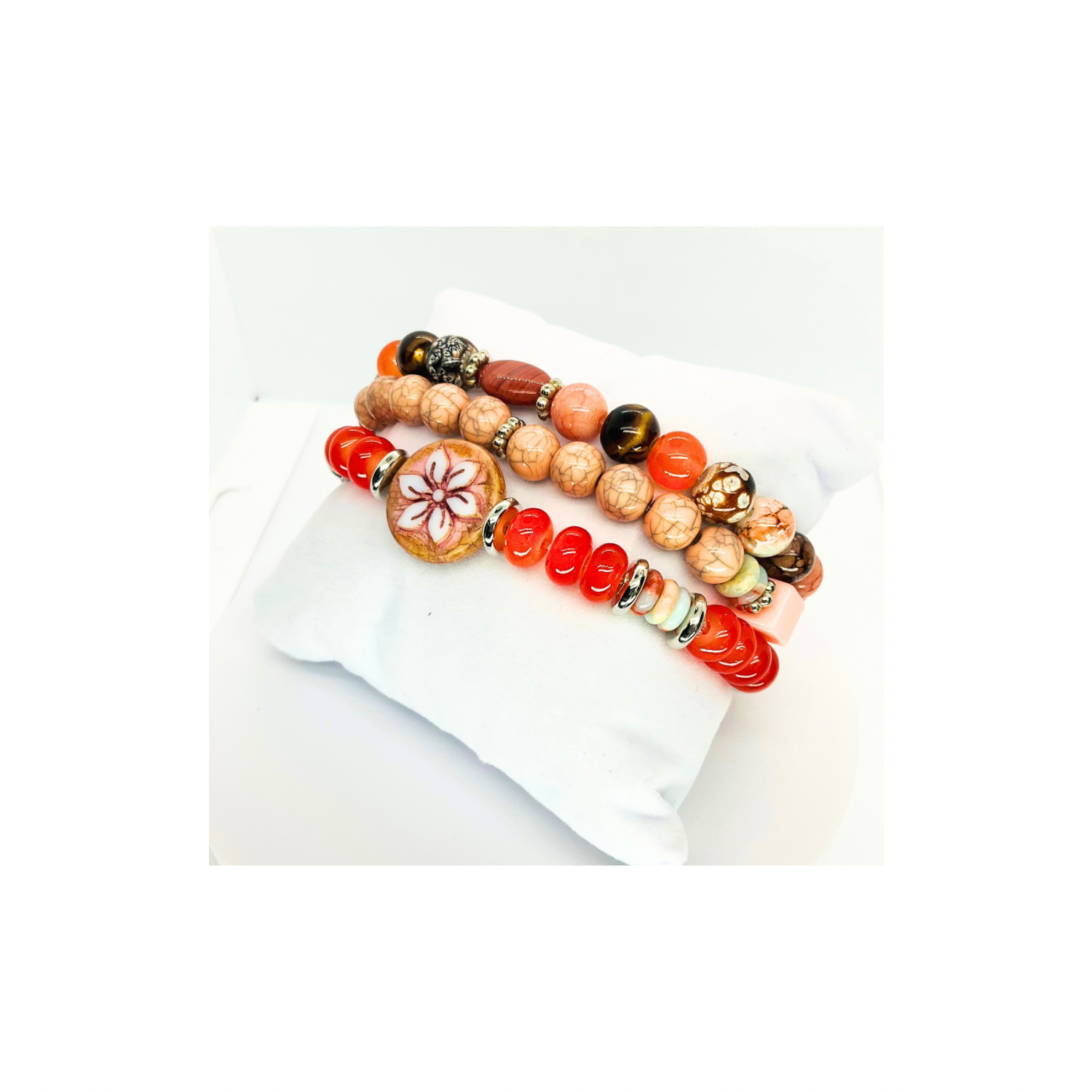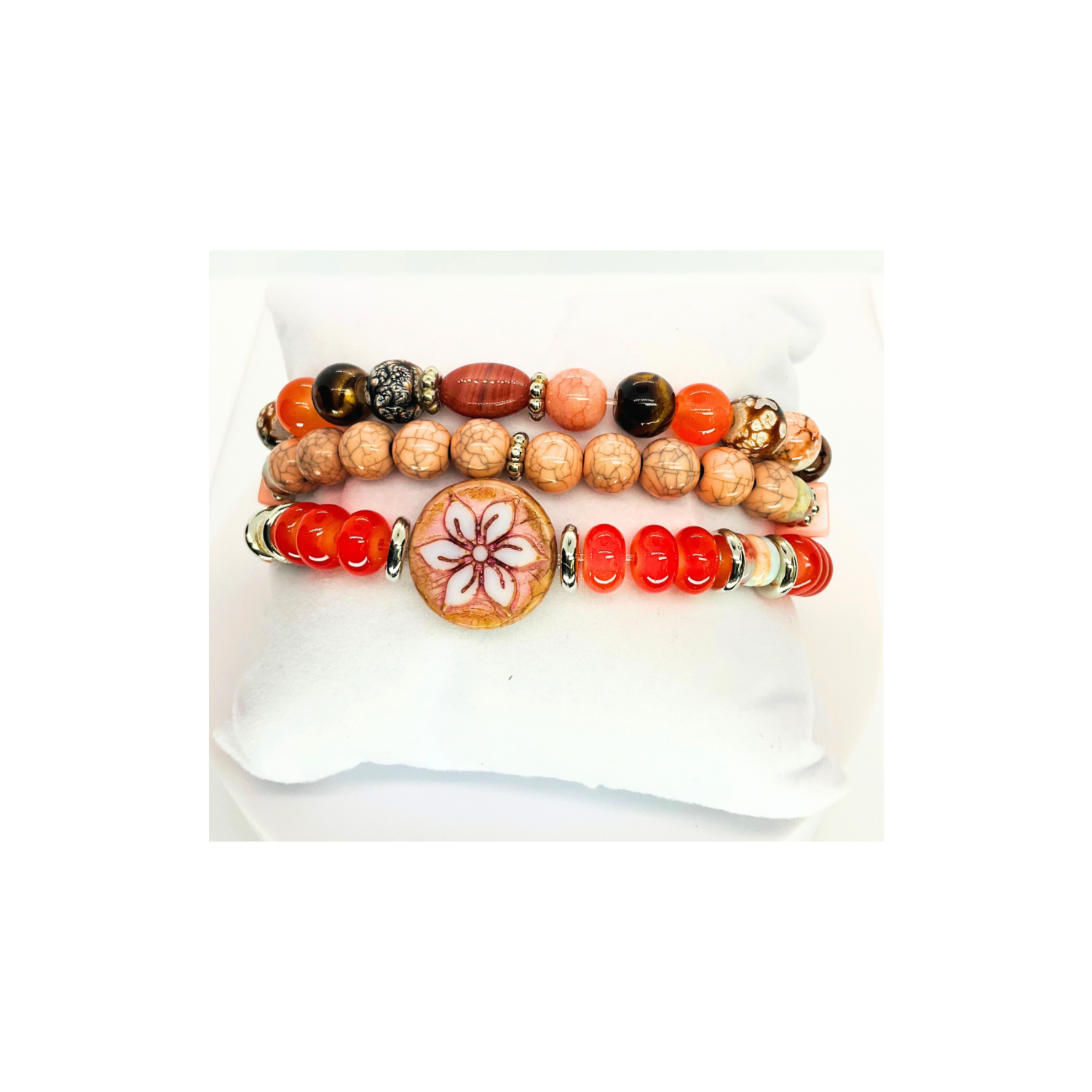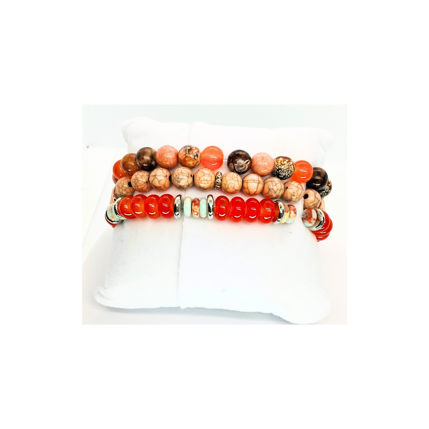 π Coral Stacked Stretch Beaded Set of Three Bracelets π