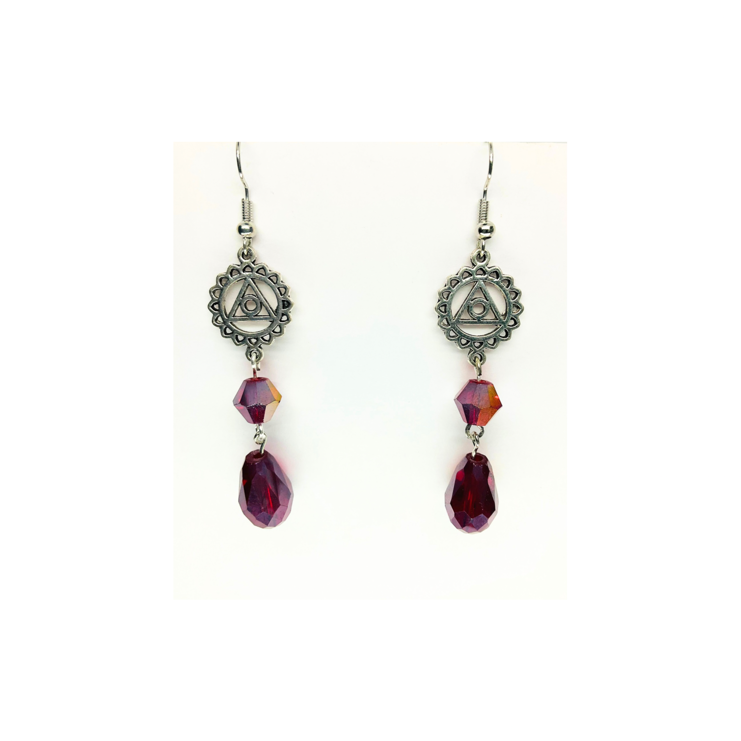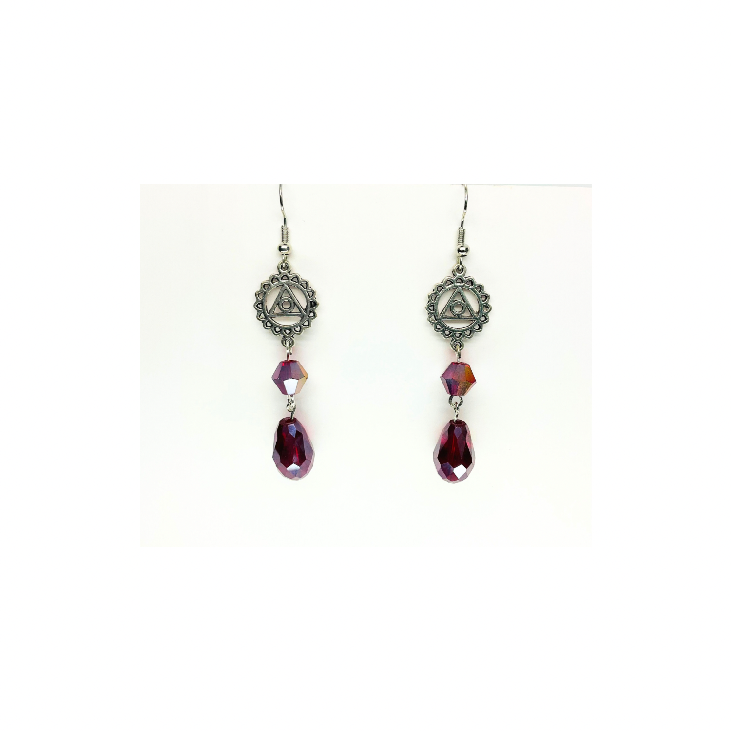 Crystal Chandelier Collection Purple Teardrop Dangle Earrings for Female with Triangle Design and Sparkling Crystals