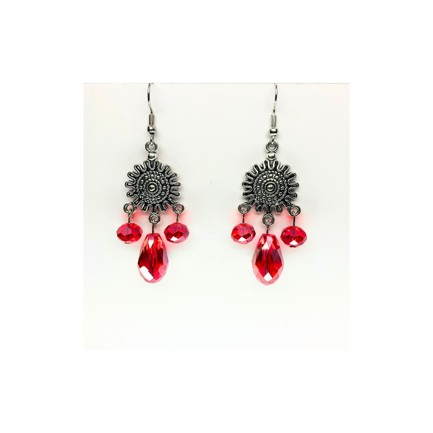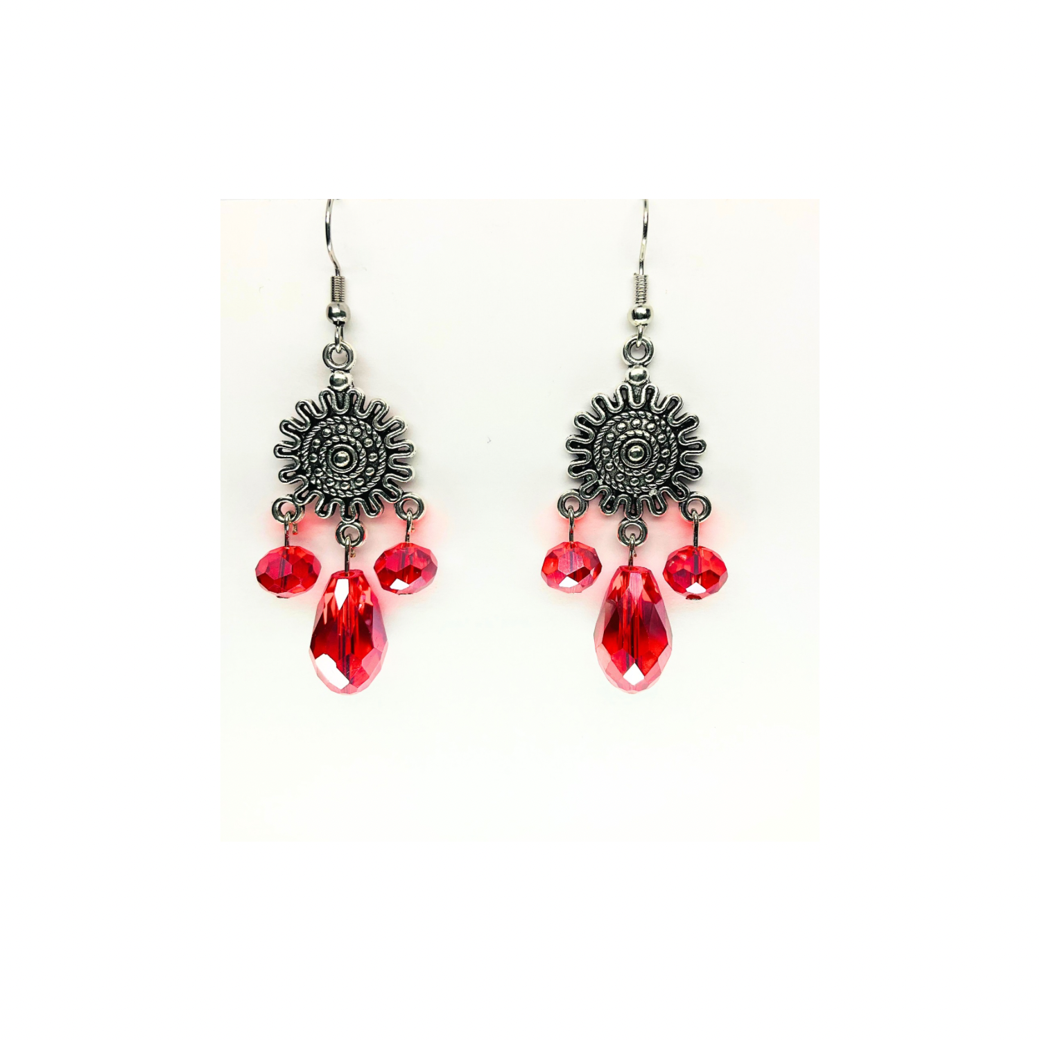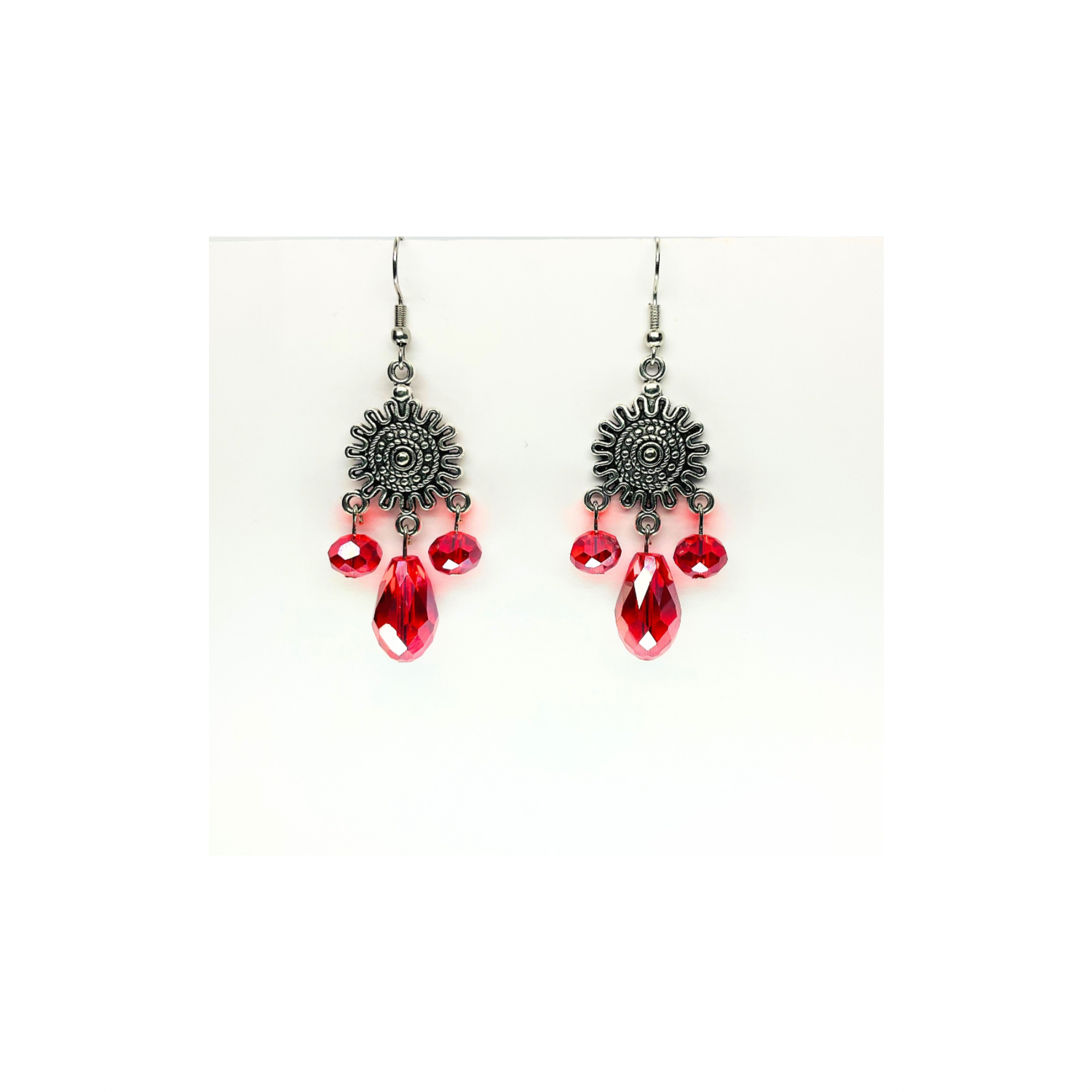 Discover the Crystal Chandelier Collection Red Teardrop Dangle Earrings. These earrings feature a teardrop shape, perfect for adding a touch of sophistication to any outfit. The red hue offers a vibrant contrast to the crystal-like material, making them a standout accessory. Ideal for those who appreciate subtle elegance.