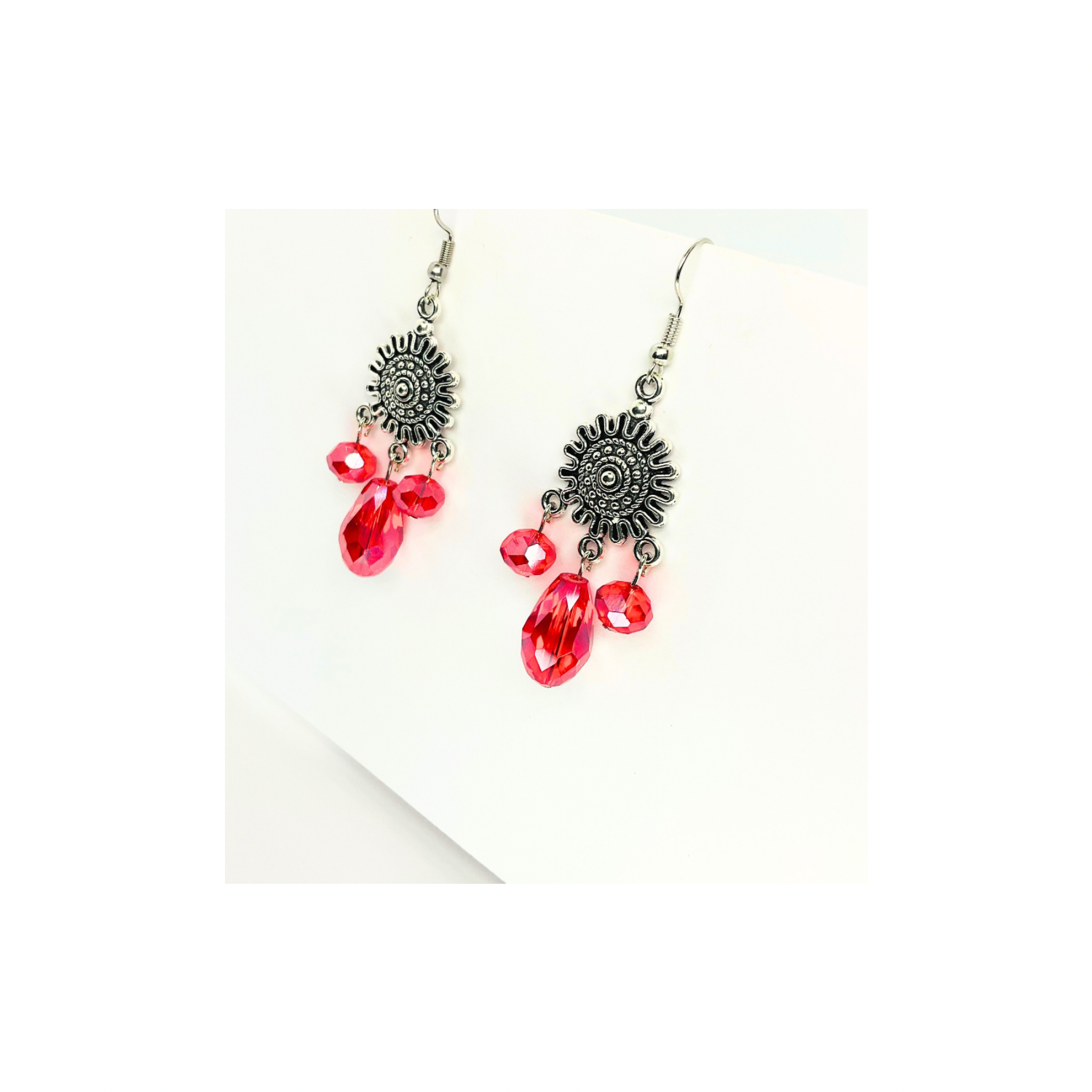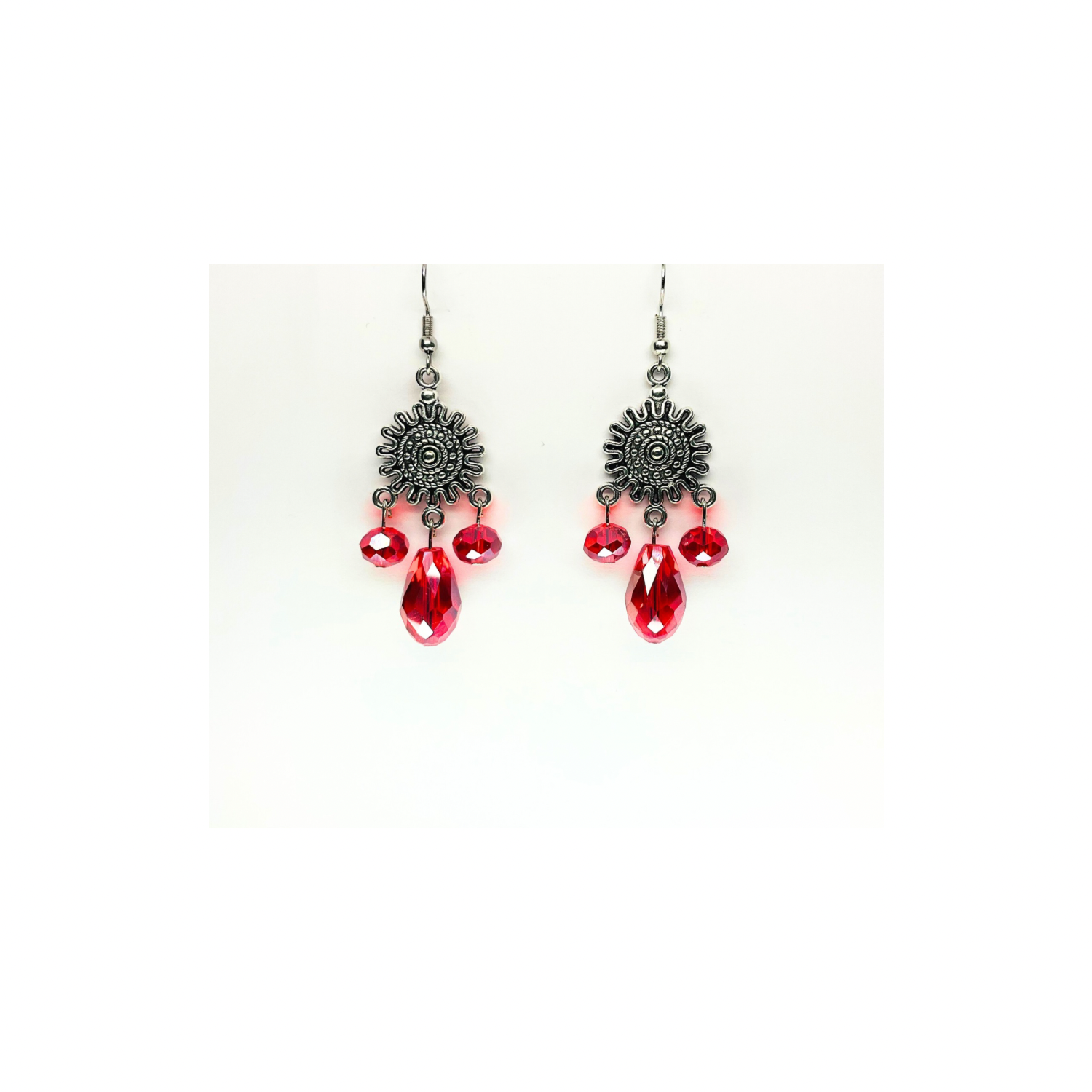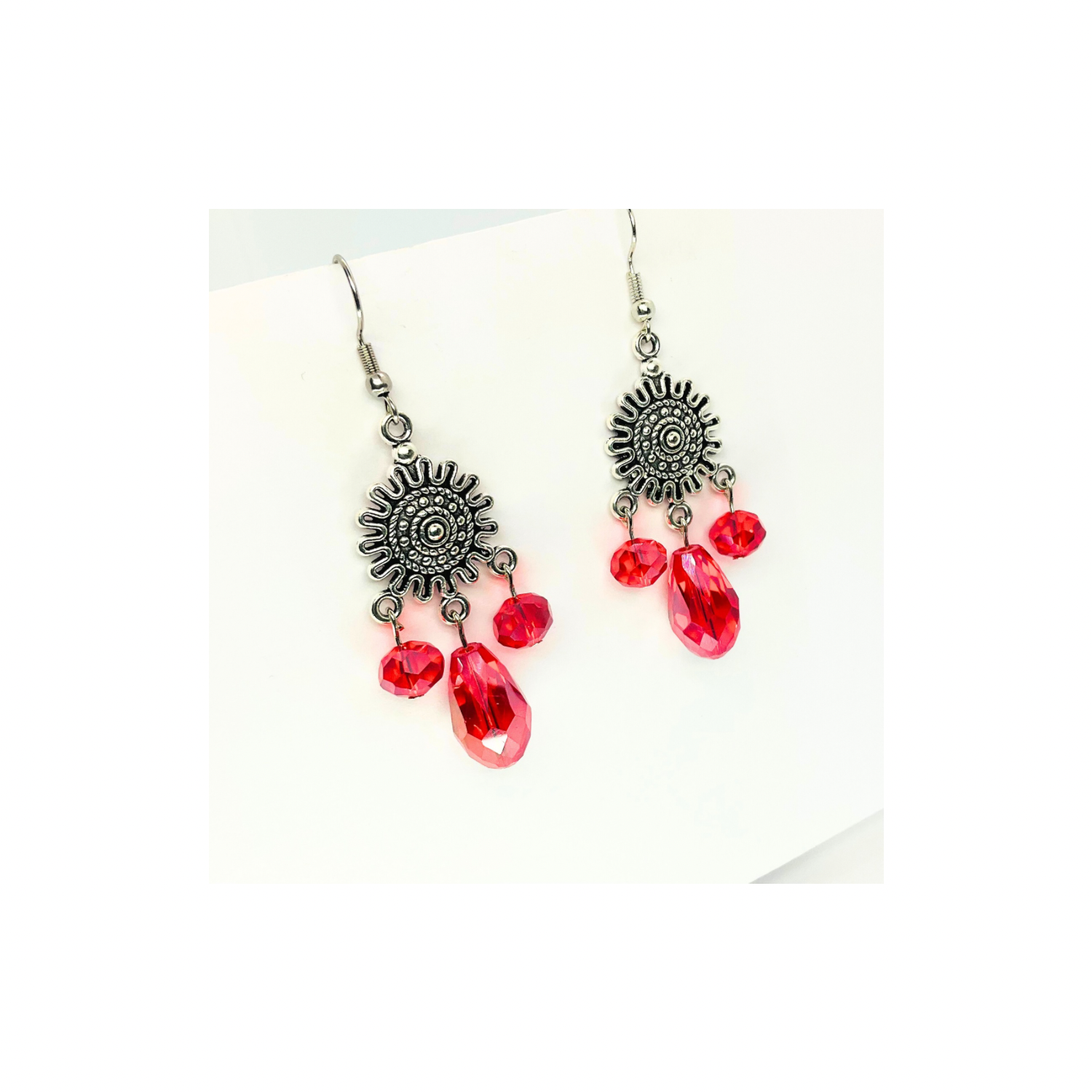 Discover the Crystal Chandelier Collection Red Teardrop Dangle Earrings. These earrings feature a teardrop shape, perfect for adding a touch of sophistication to any outfit. The red hue offers a vibrant contrast to the crystal-like material, making them a standout accessory. Ideal for those who appreciate subtle elegance.