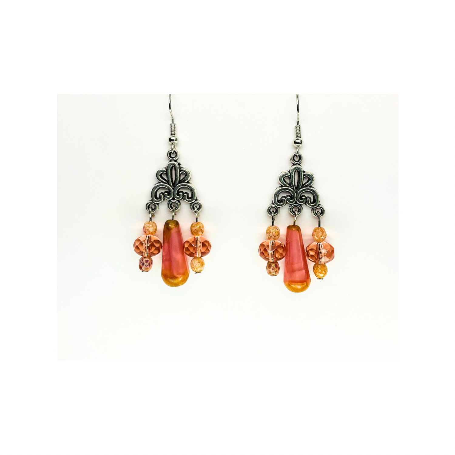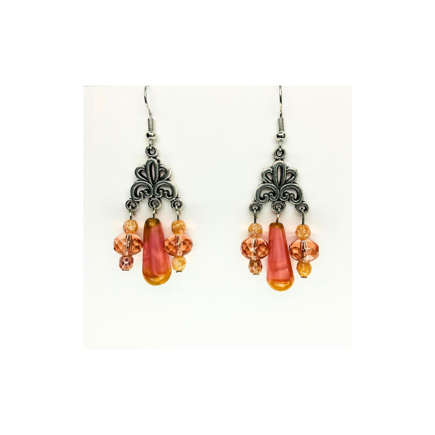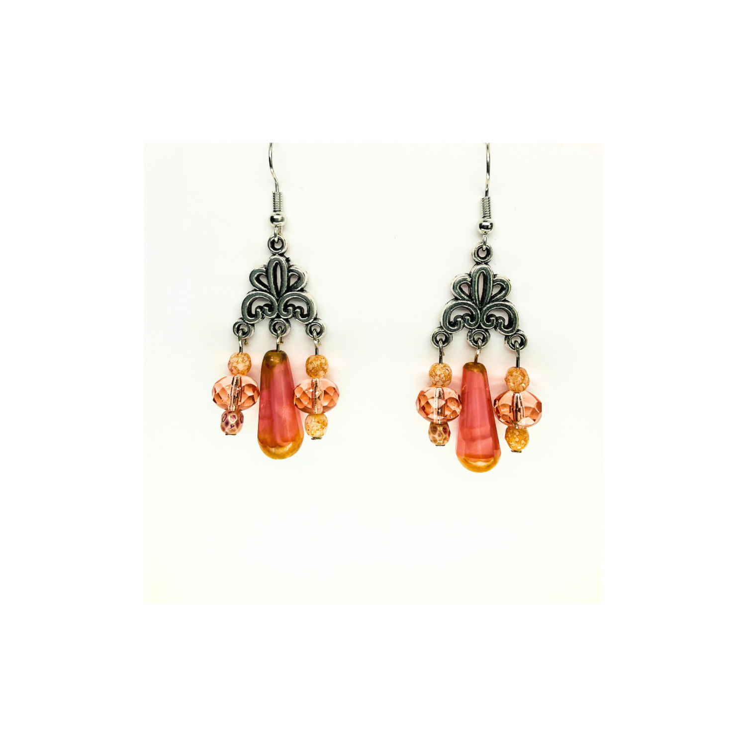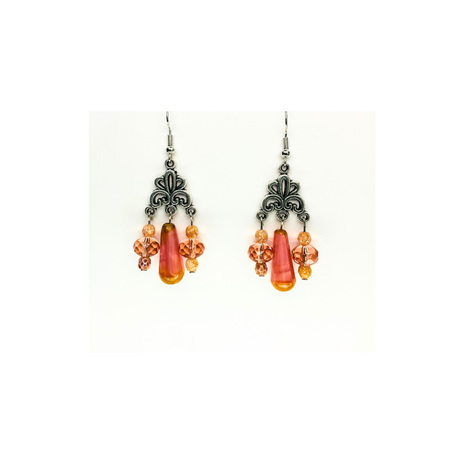 Crystal Chandelier Pink Teardrop Dangle Earrings for Female with Unique Design and Colorful Beads