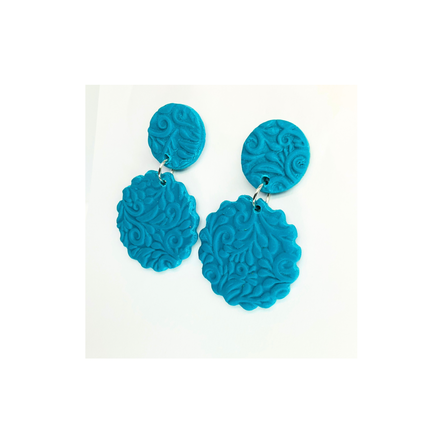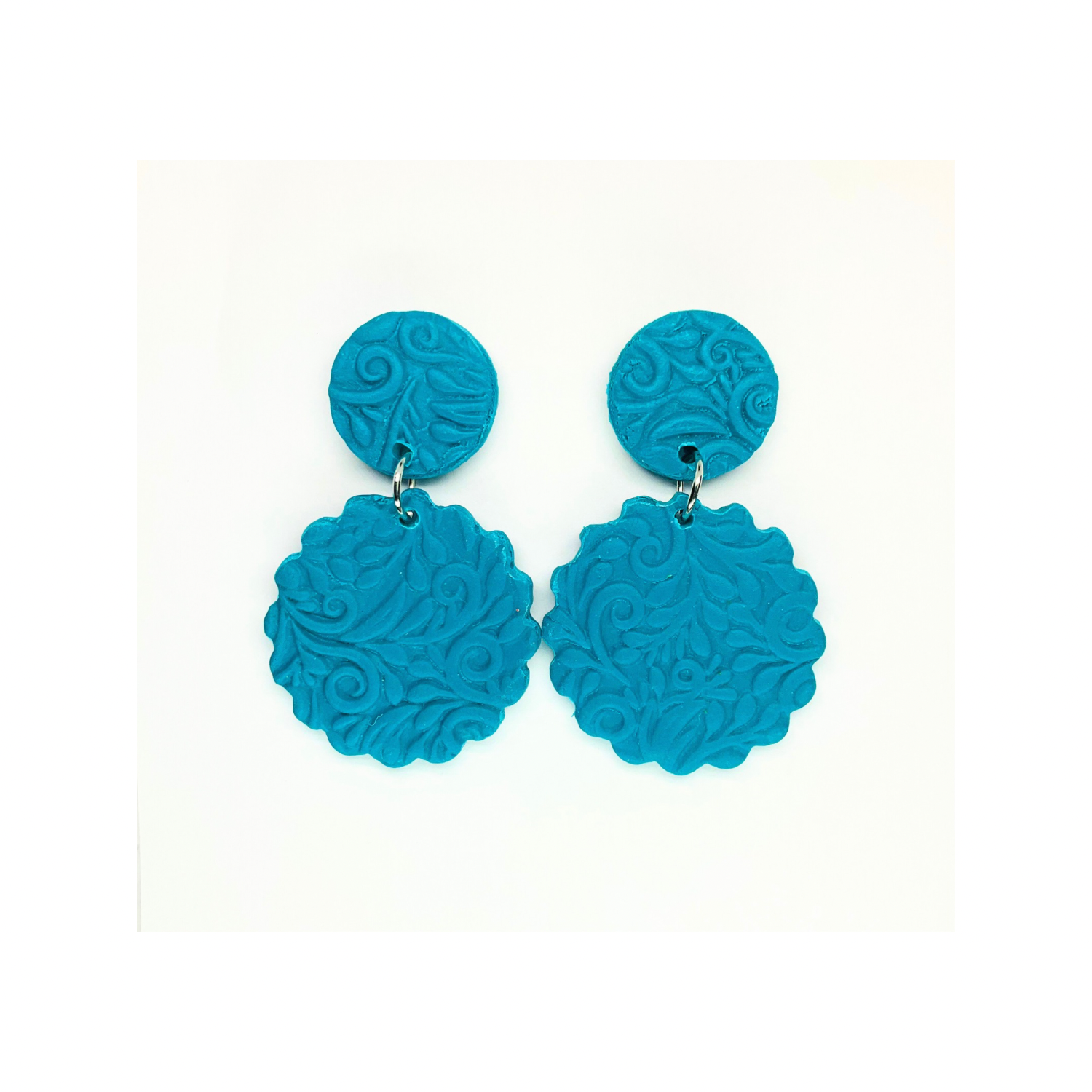 πΈ Crystal Teal Textured Circle Stud Dangle Earrings