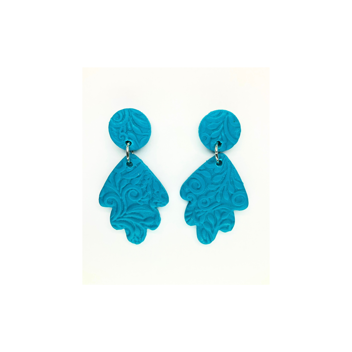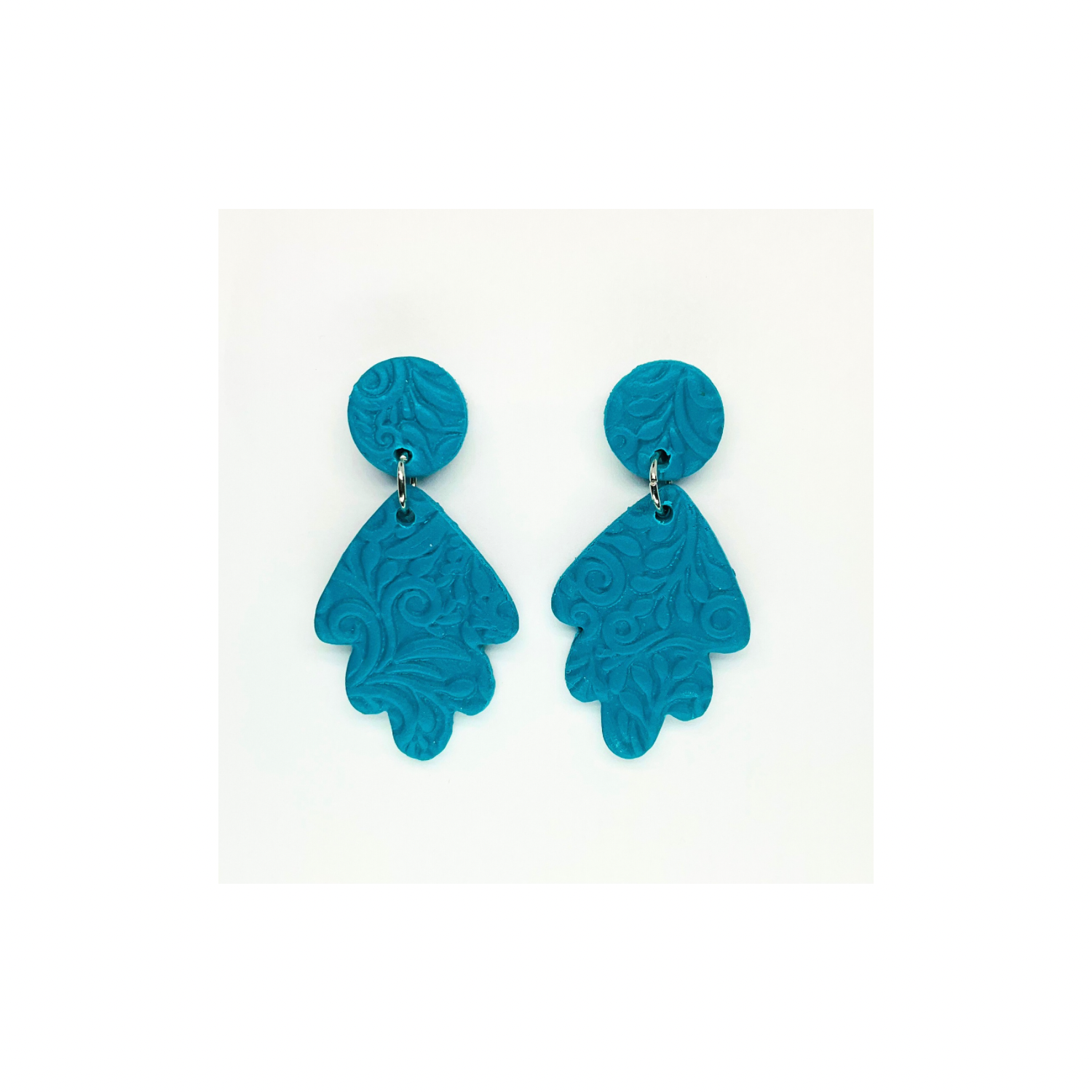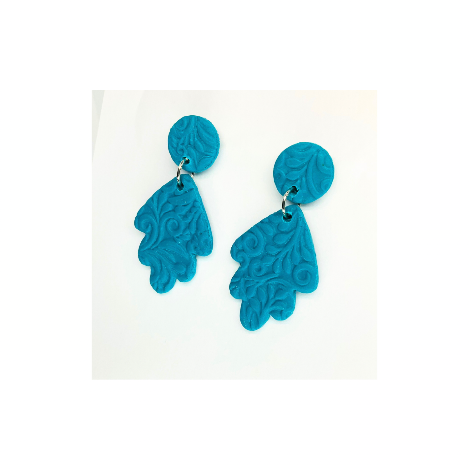 - Design: These earrings feature a leaf-shaped design with crystal teal textures. π