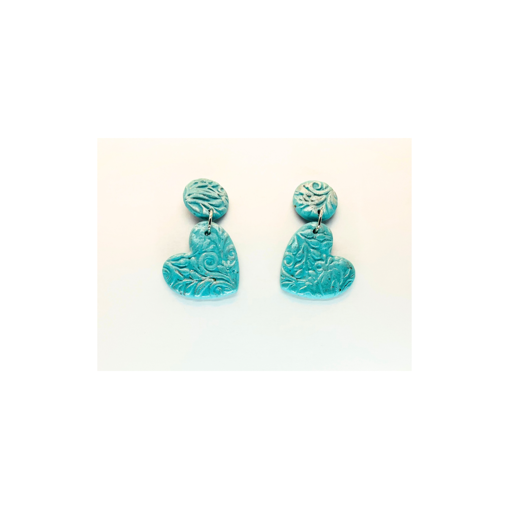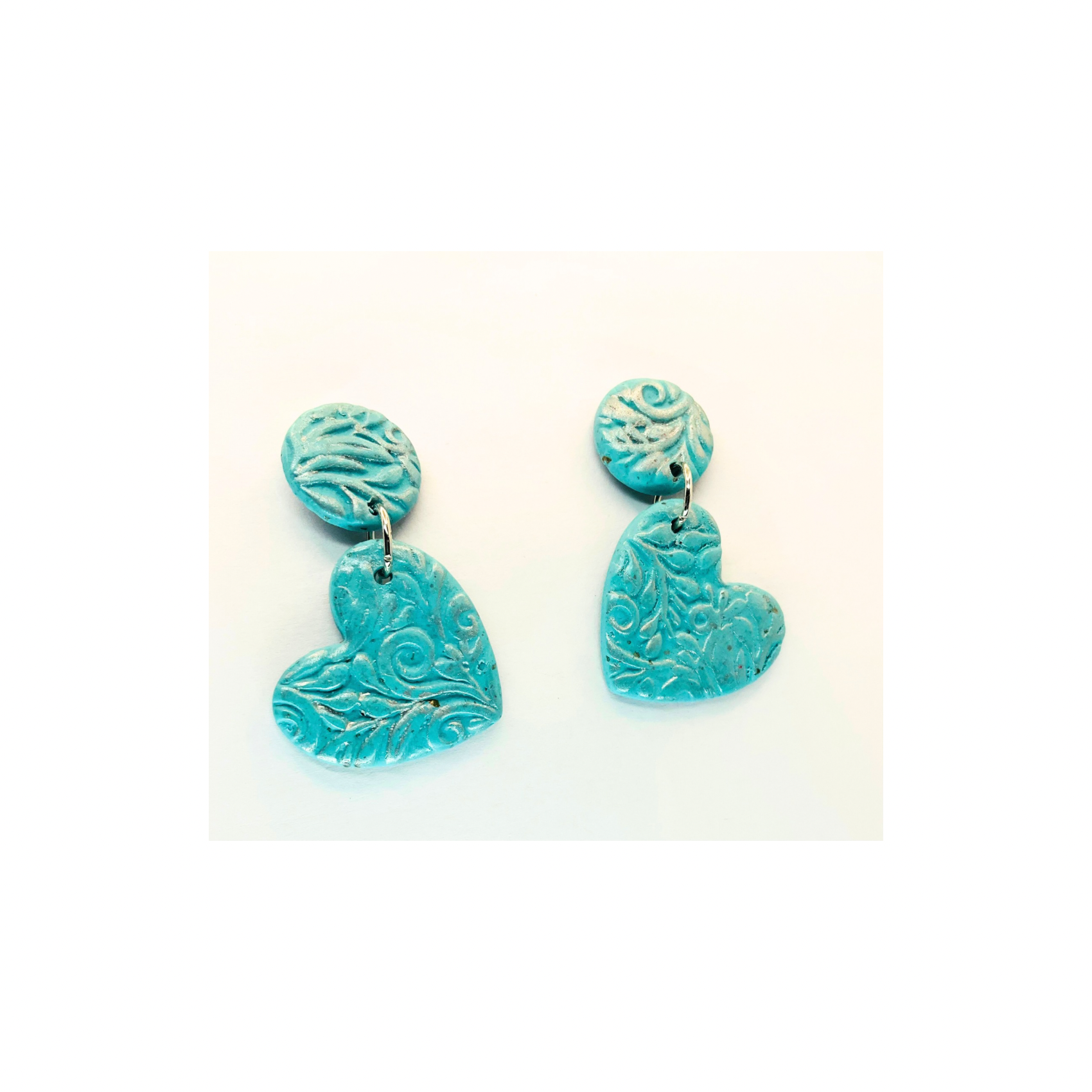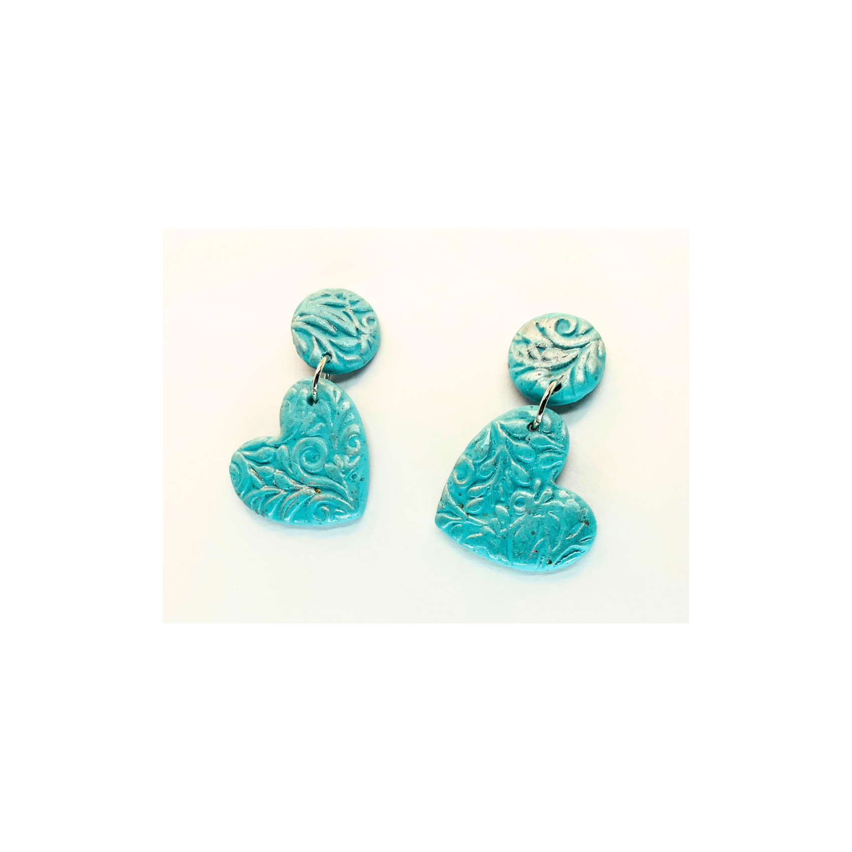Earrings Blue and Silver Heart Dangle with Button Studs