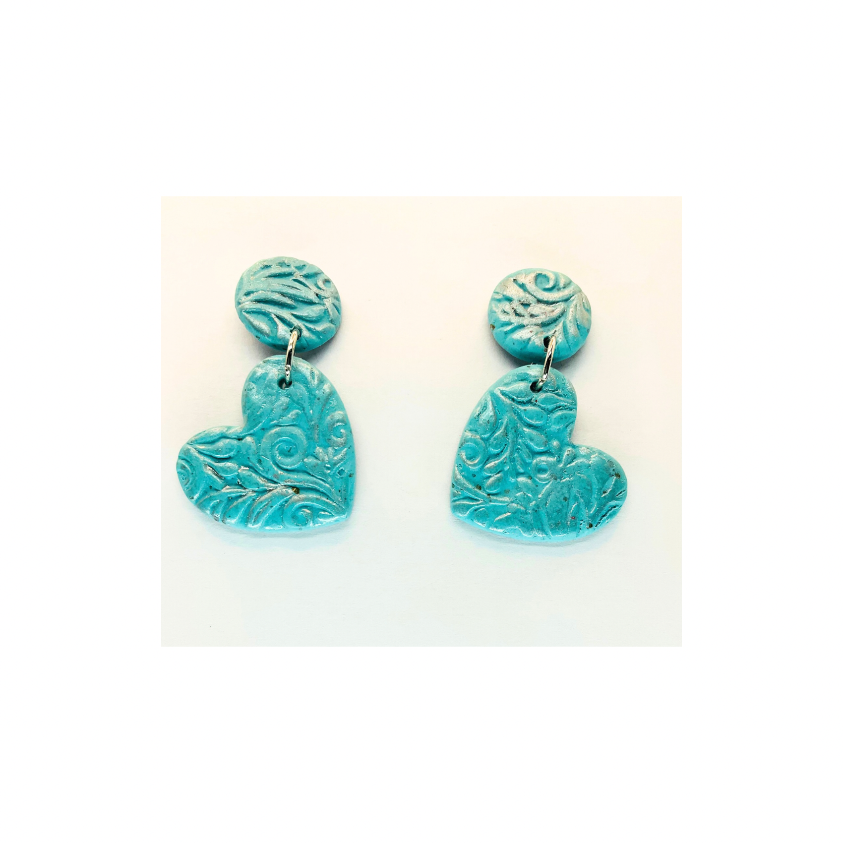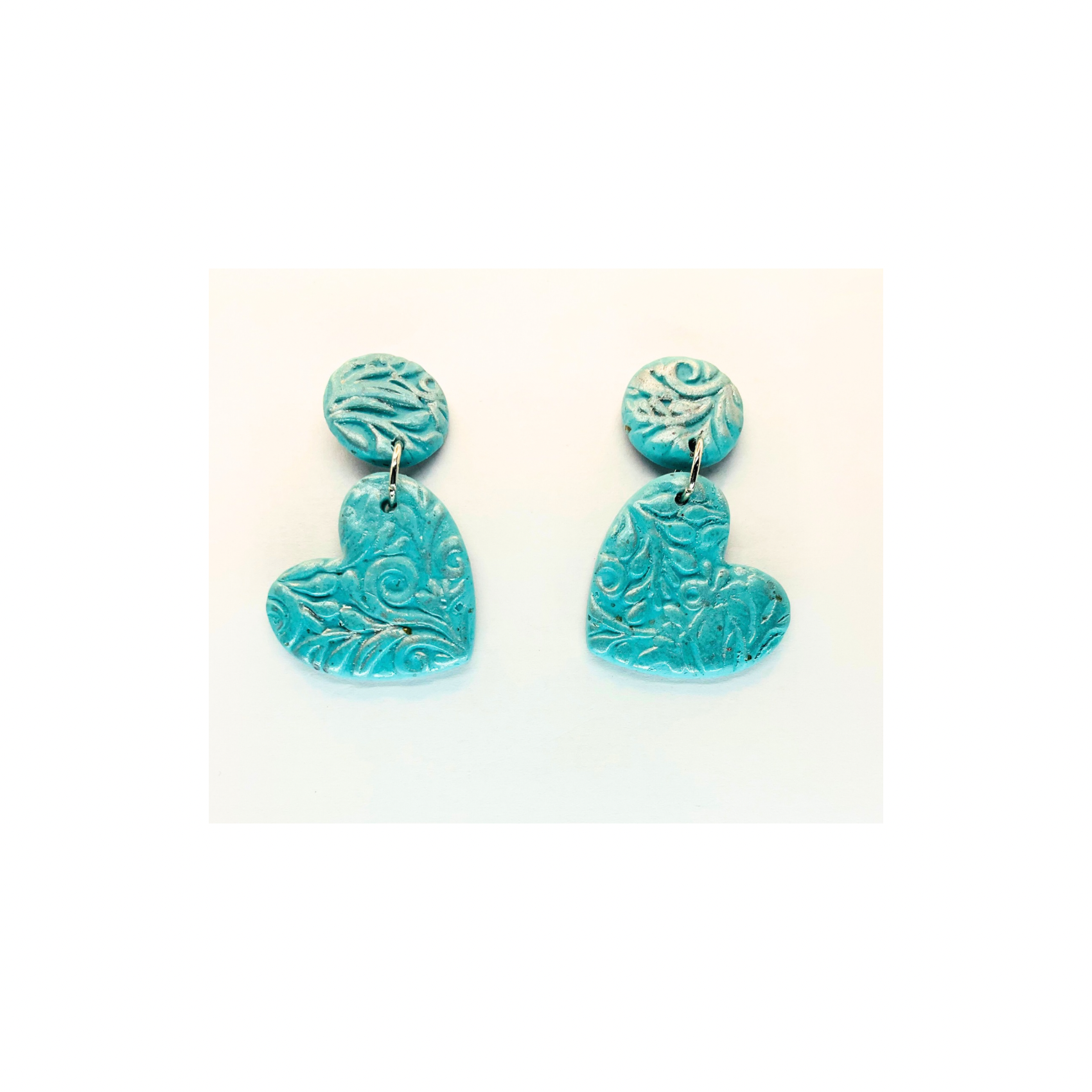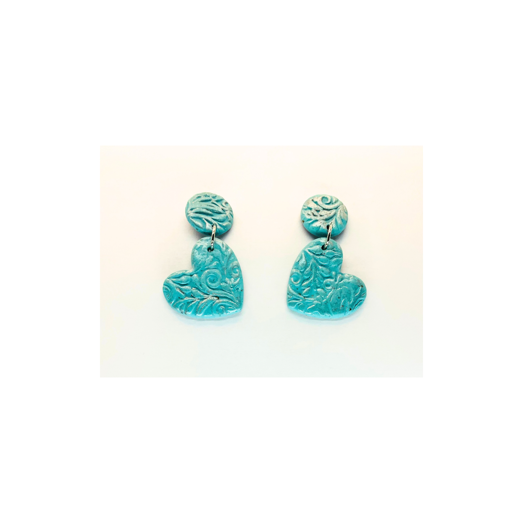 Earrings Blue and Silver Heart Dangle with Button Studs