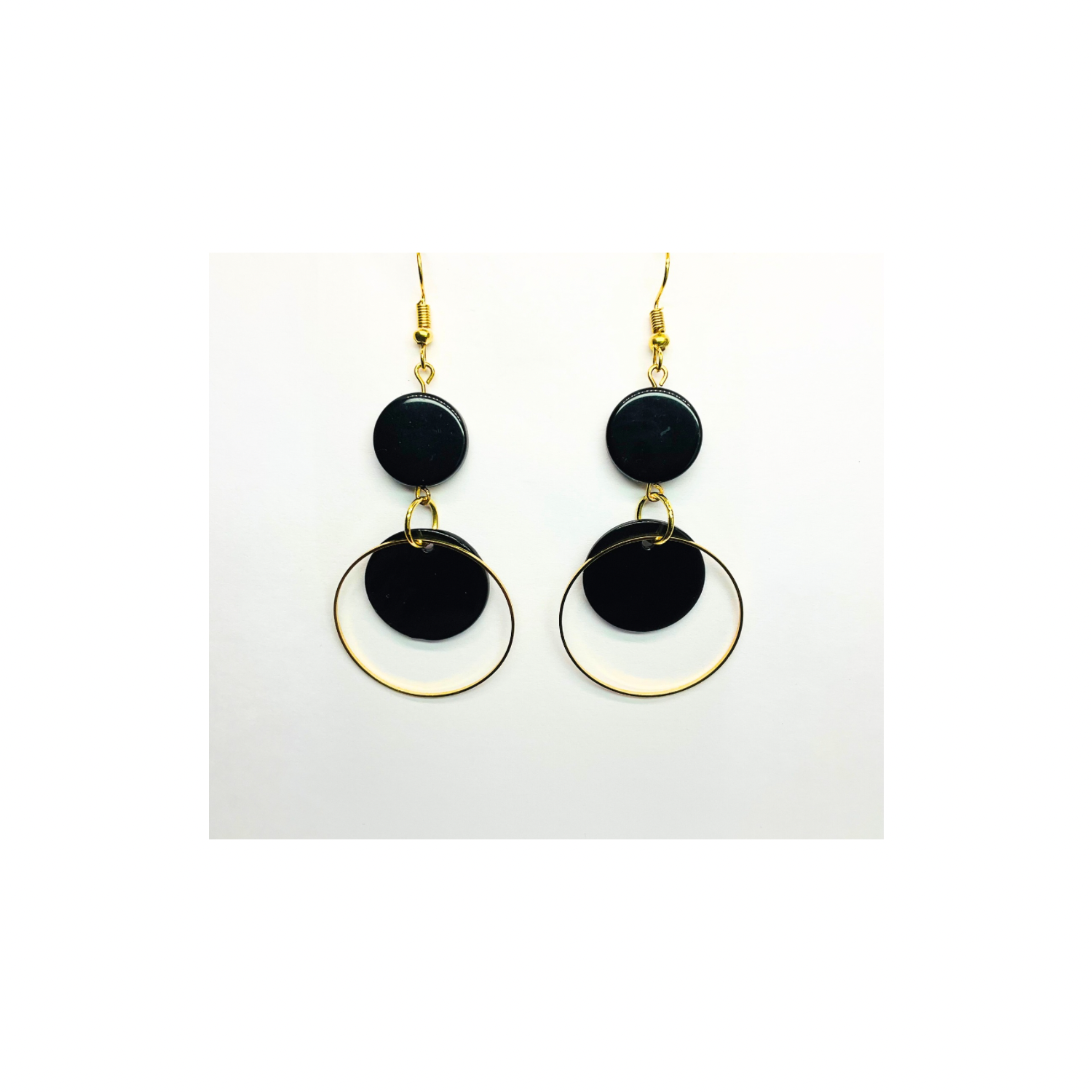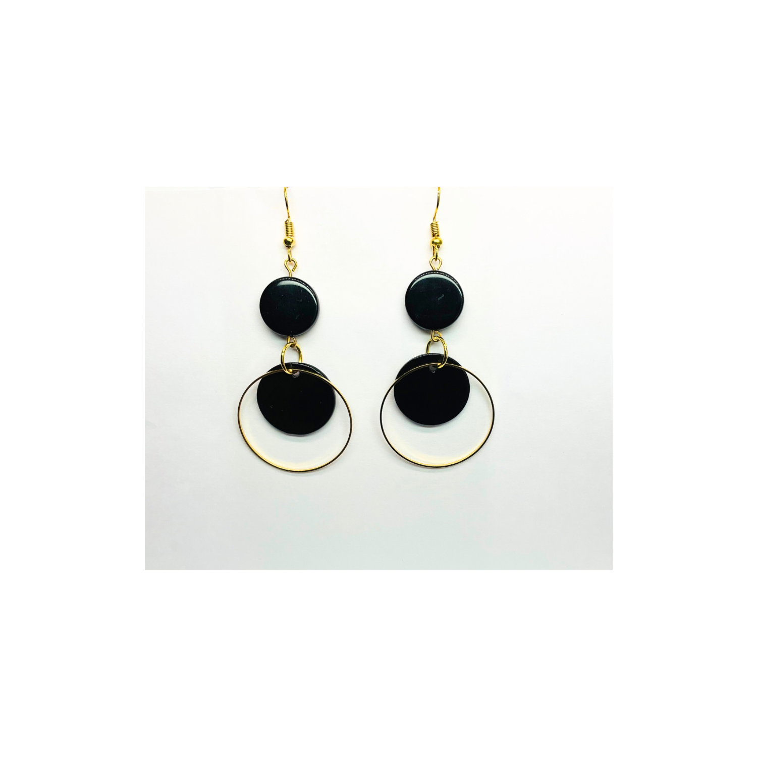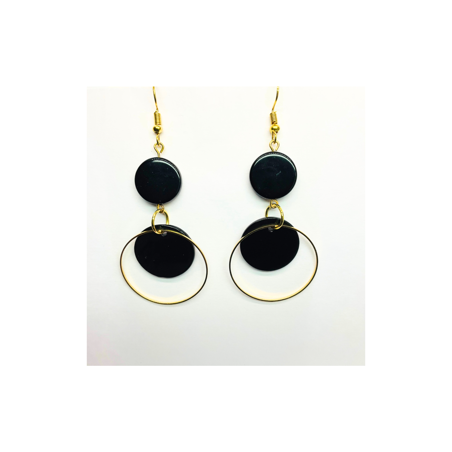 π Eclipse Collection Black and Gold Circle Dangle Earring π