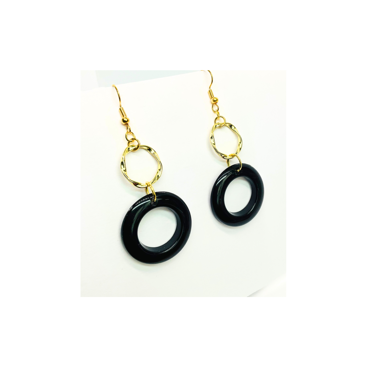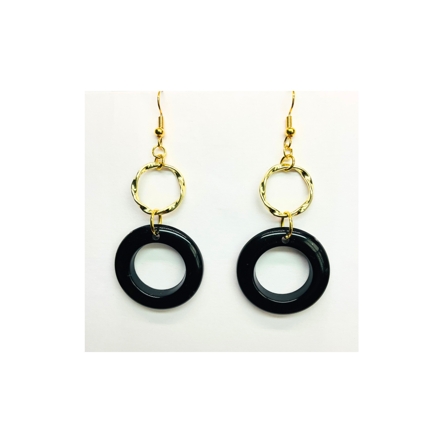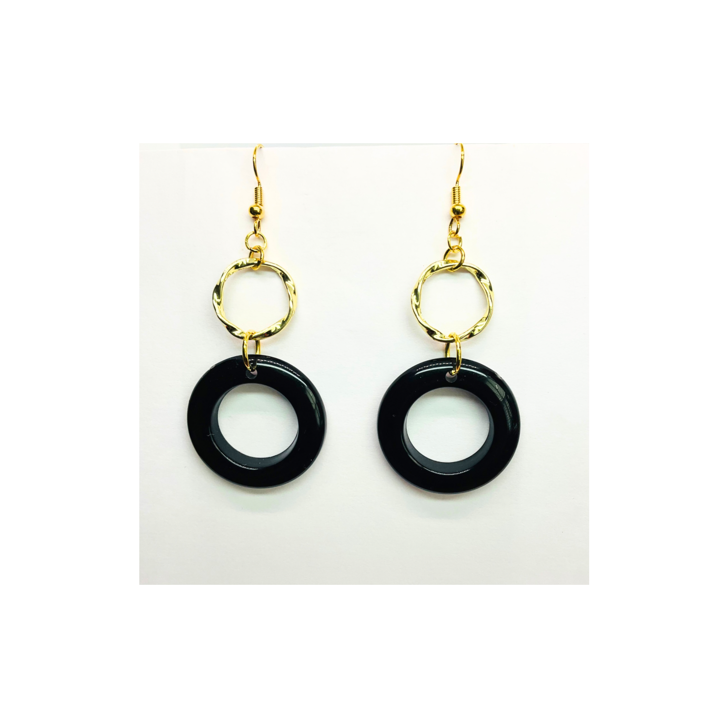 Discover the Eclipse Collection Black and Gold Circle Earrings. These earrings feature a striking black and gold color scheme, perfect for any occasion. The circle design adds a touch of sophistication to your look. Ideal for those who appreciate minimalist yet impactful jewelry. Enhance your ensemble effortlessly with these timeless pieces.