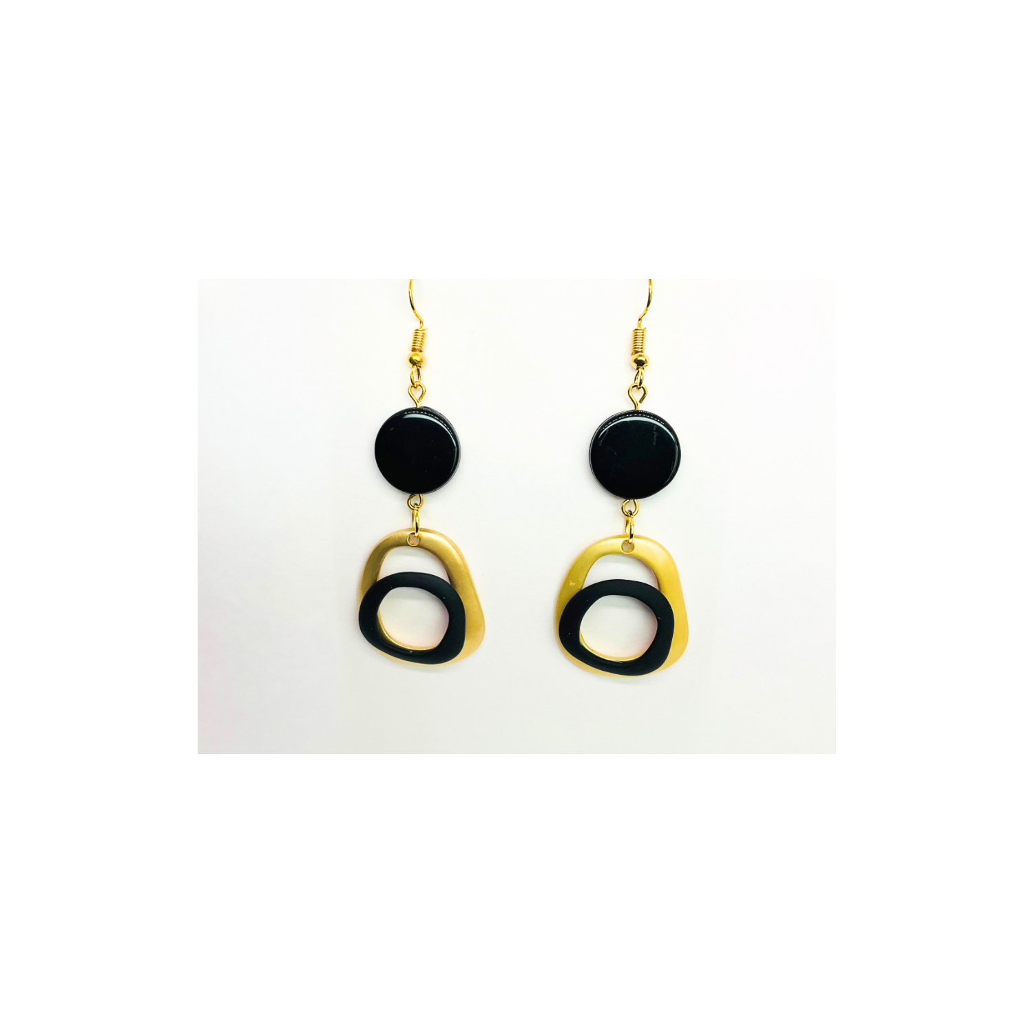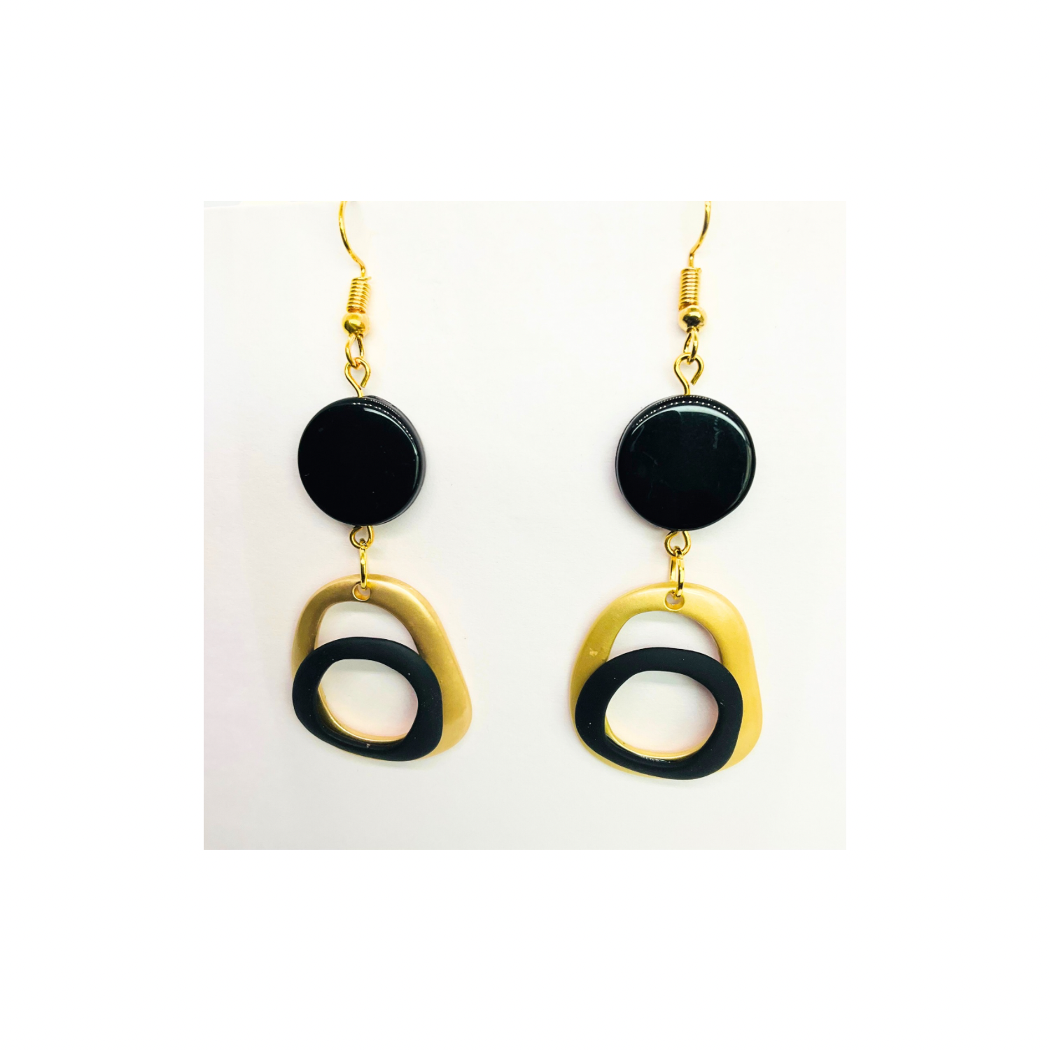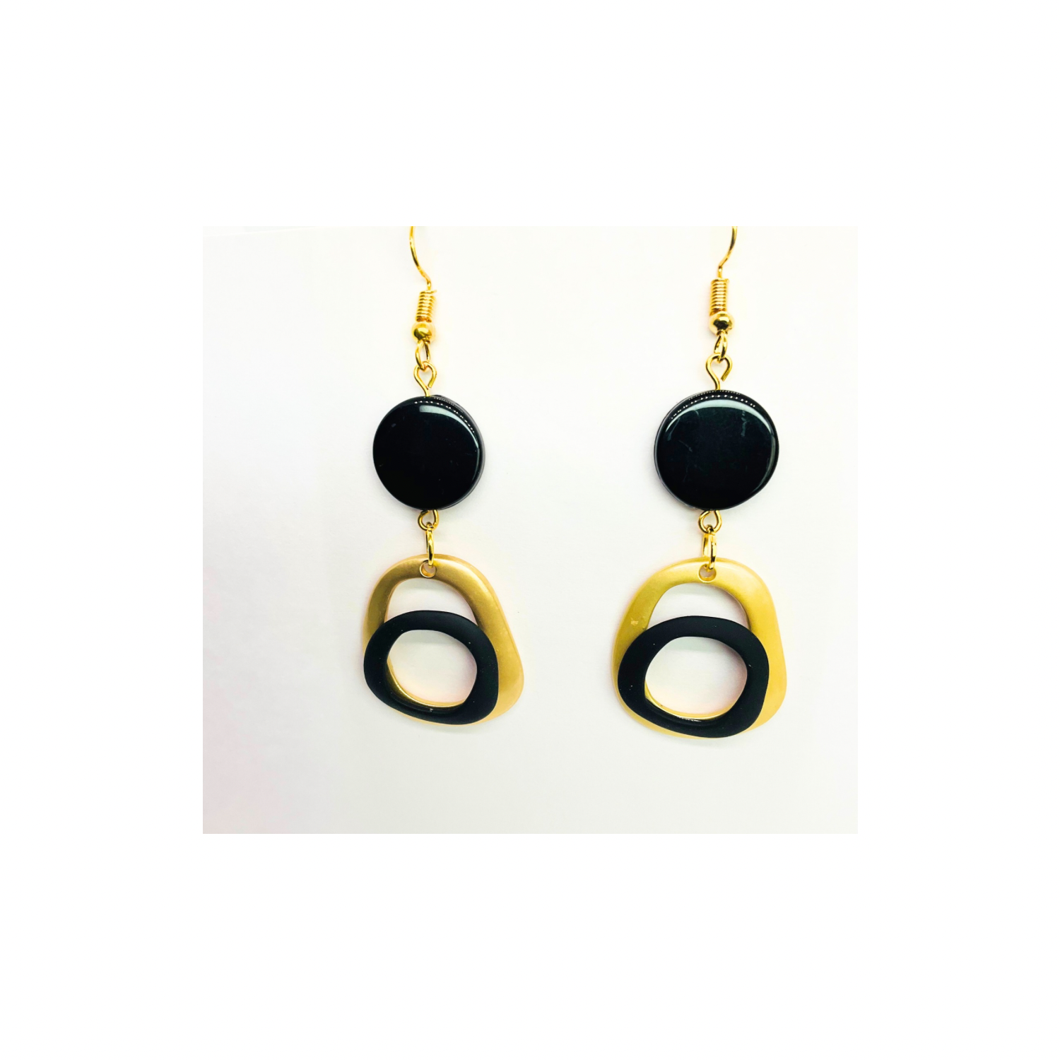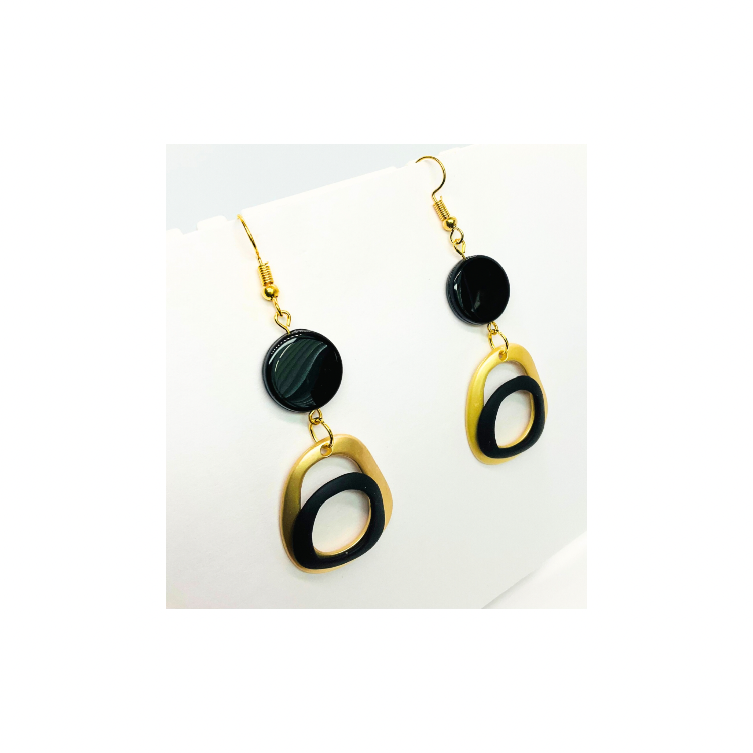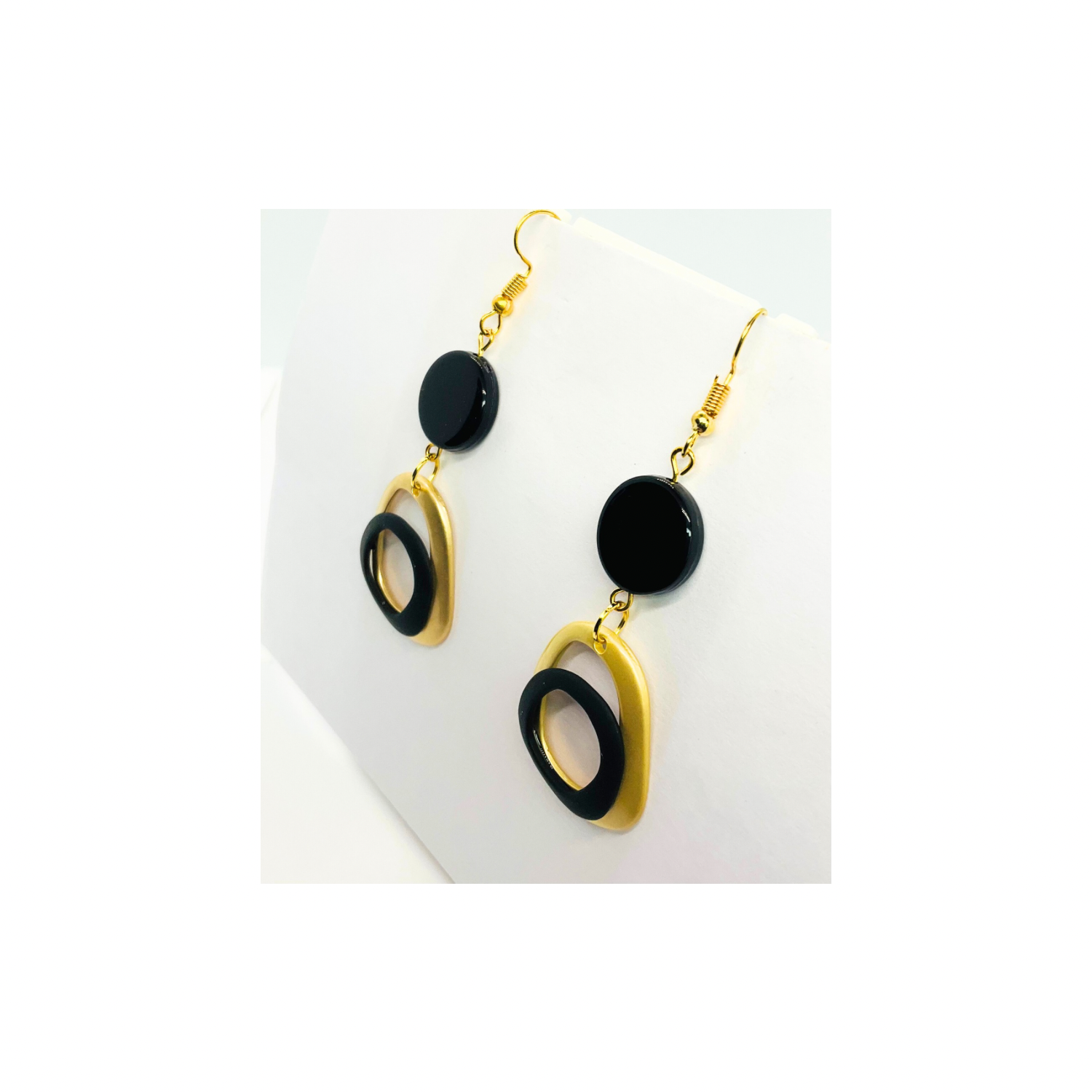Eclipse Collection Black and Gold Dangle Earrings - Elegant Female Fashion Accessory for Versatile Styling
