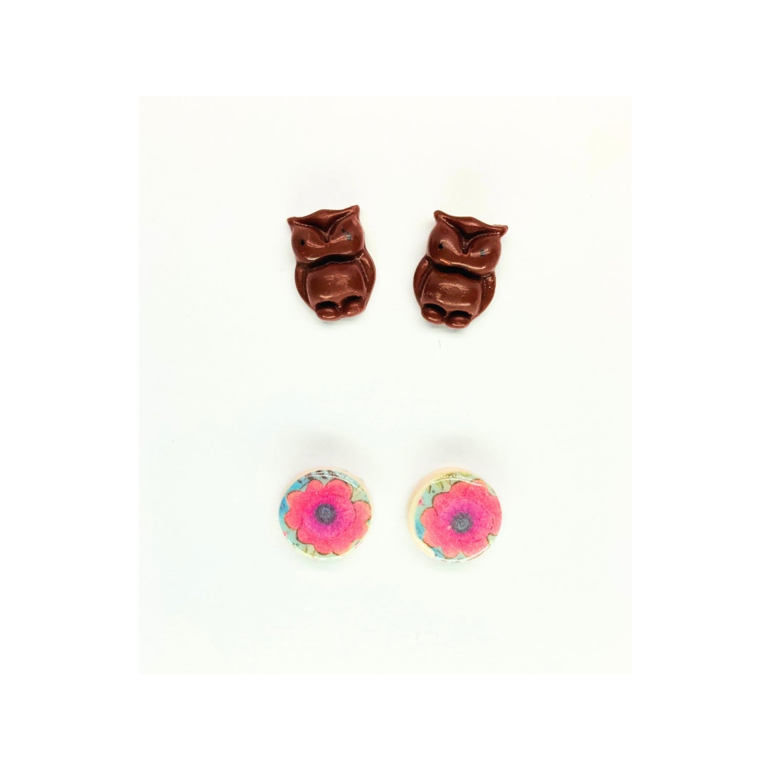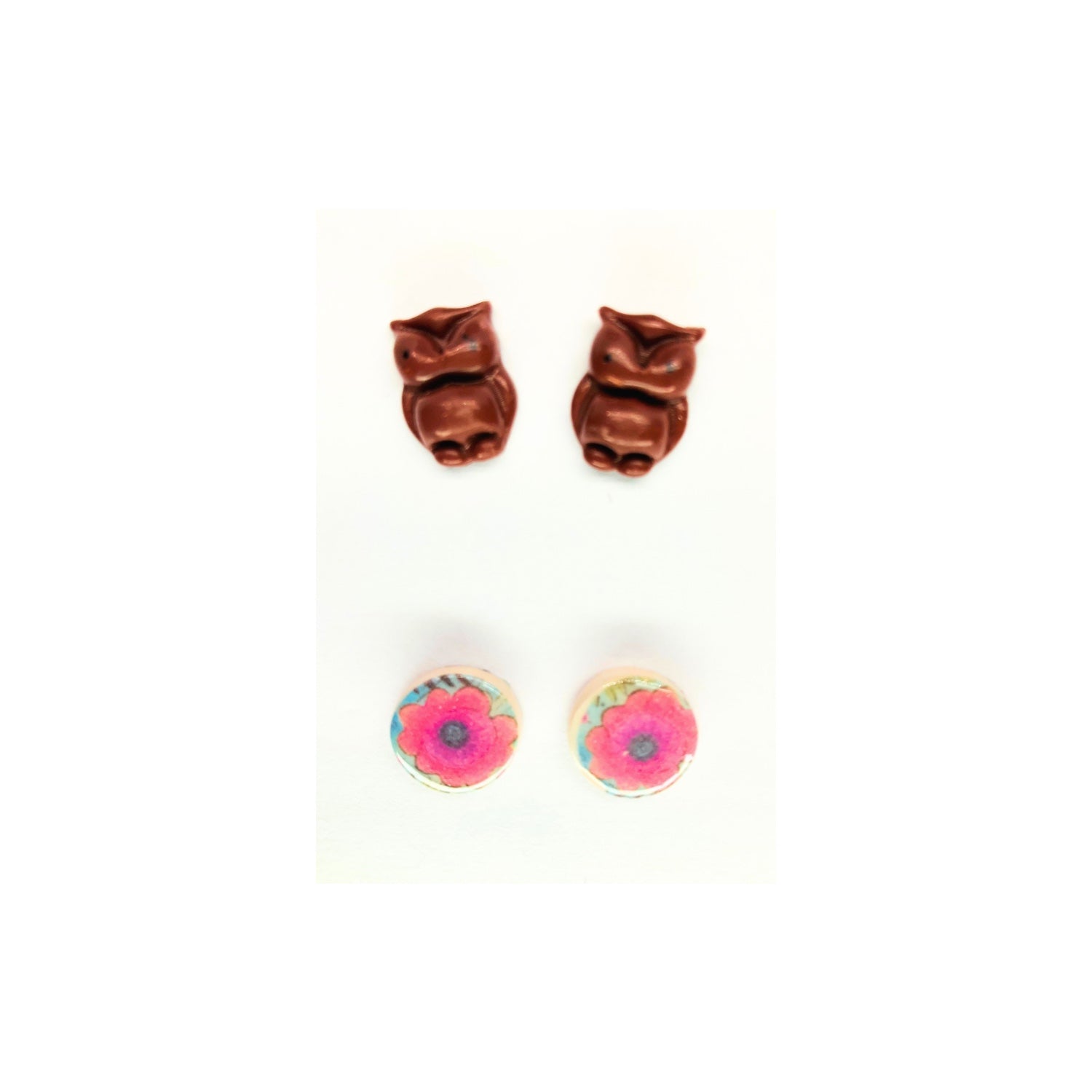 Owl and Pink Floral Stud Earrings-Crafting By BB