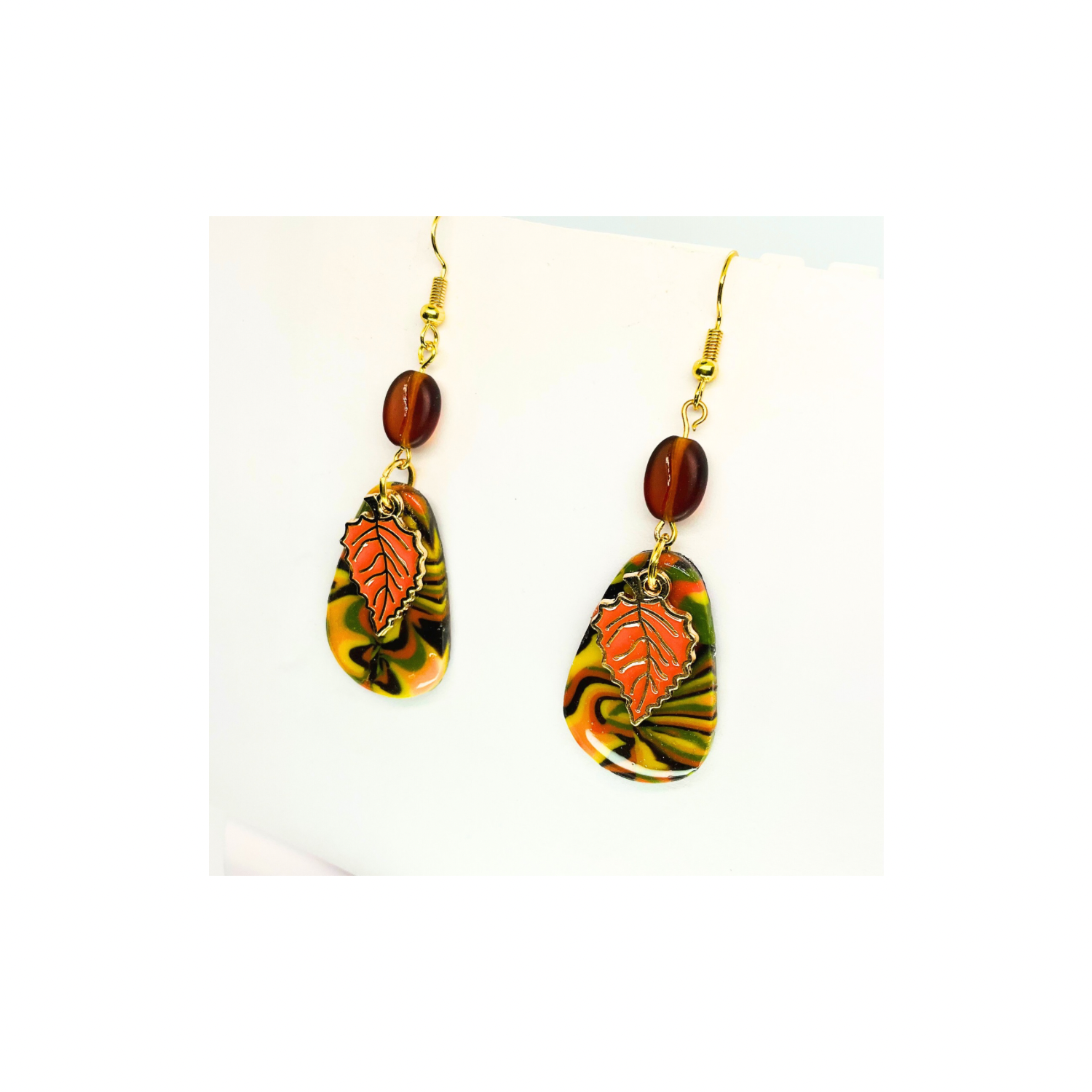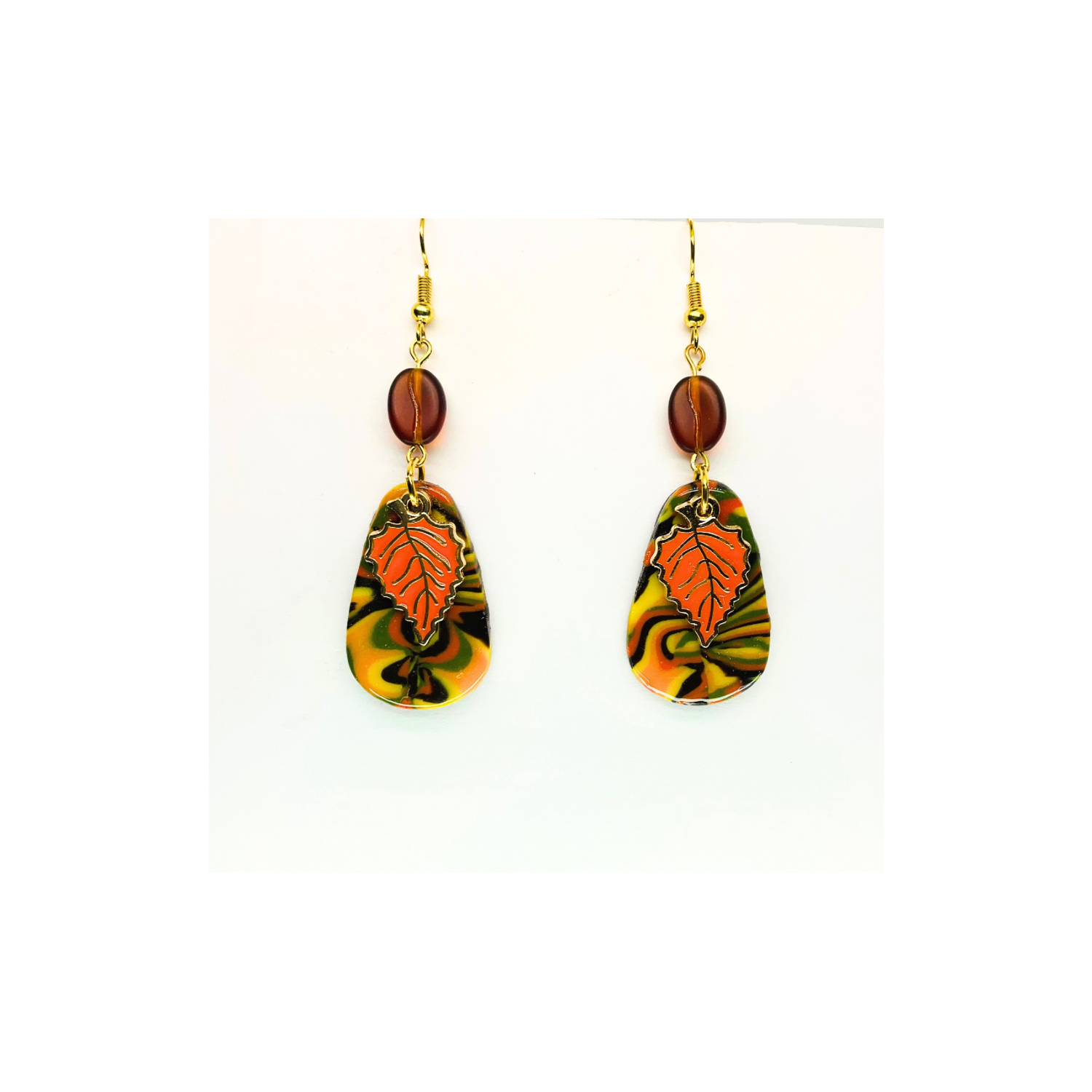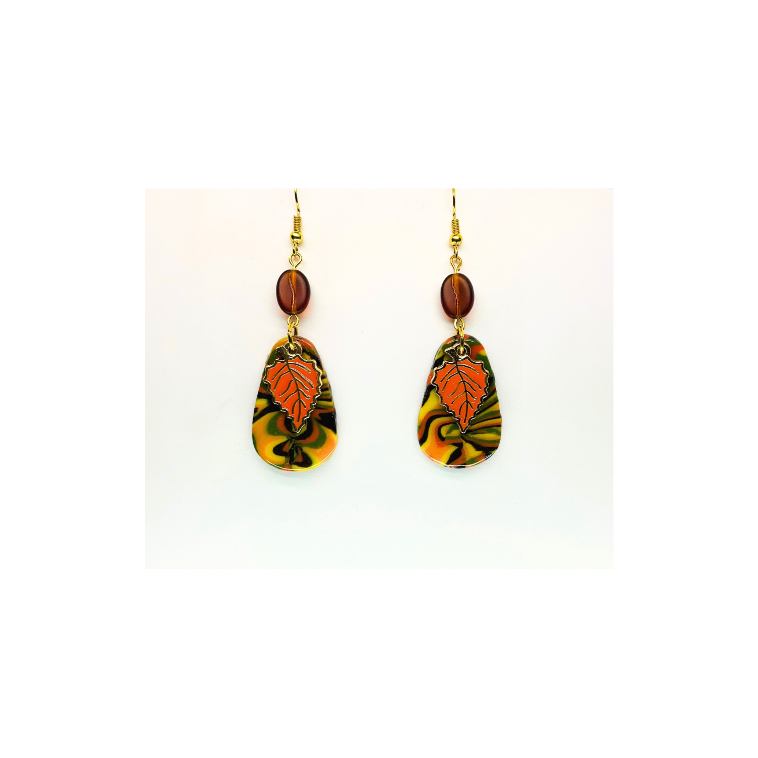 π Fall Collection Orange Leaf Charm Dangle Earring