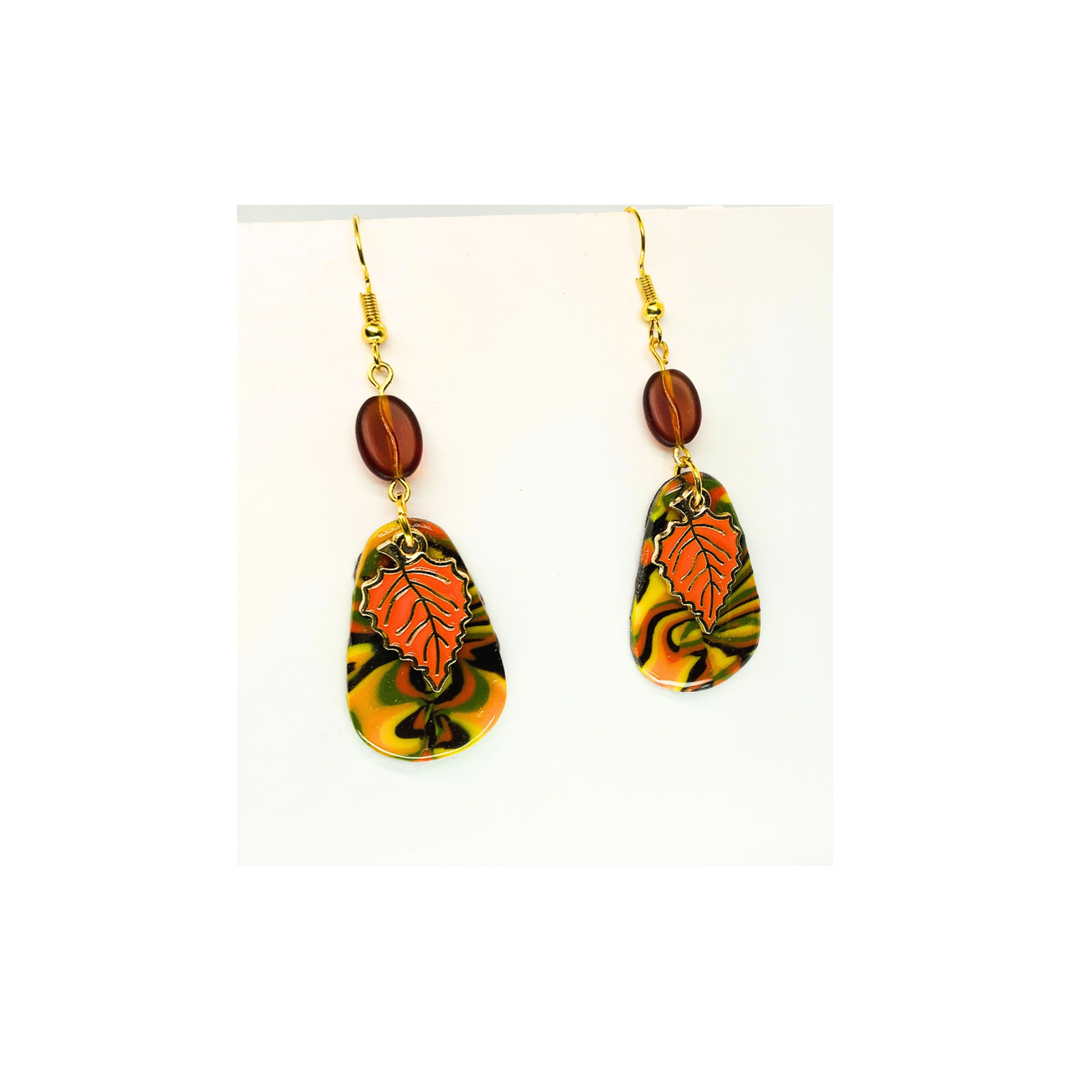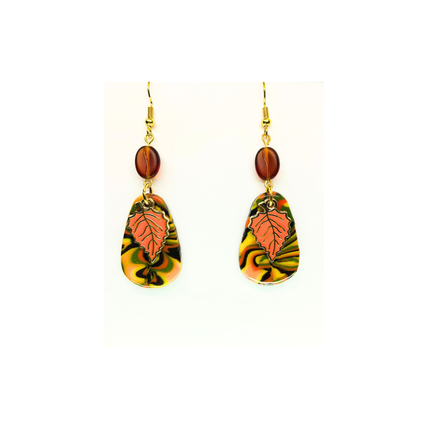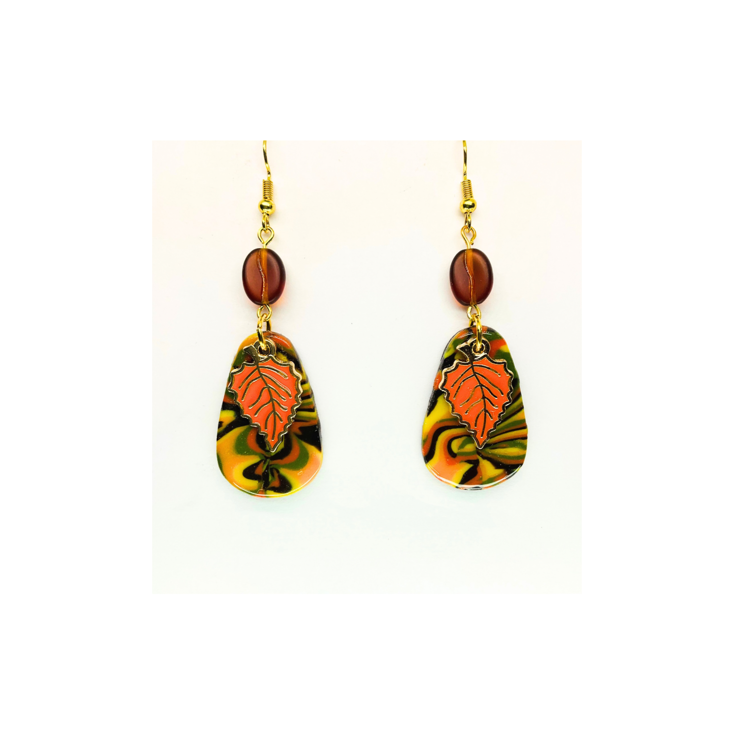 π Fall Collection Orange Leaf Charm Dangle Earring