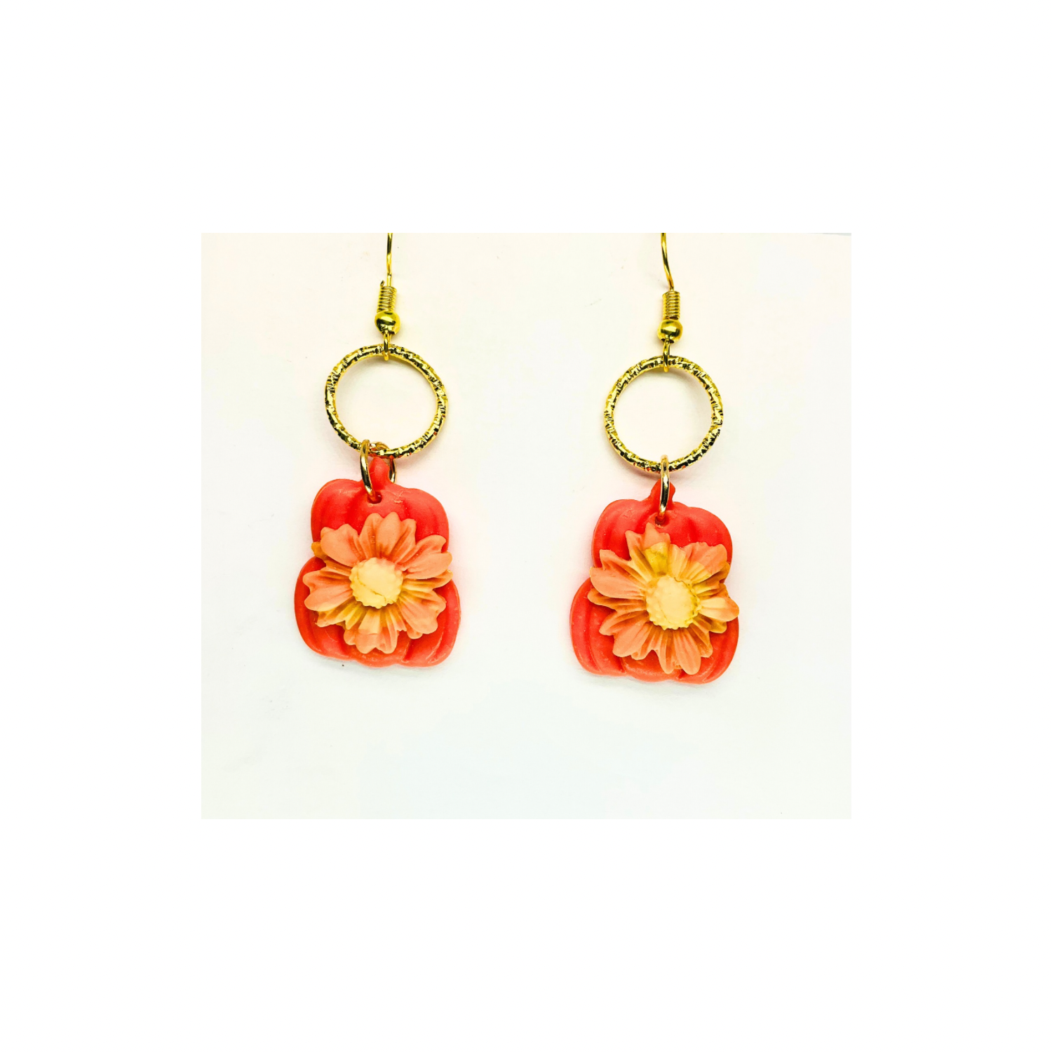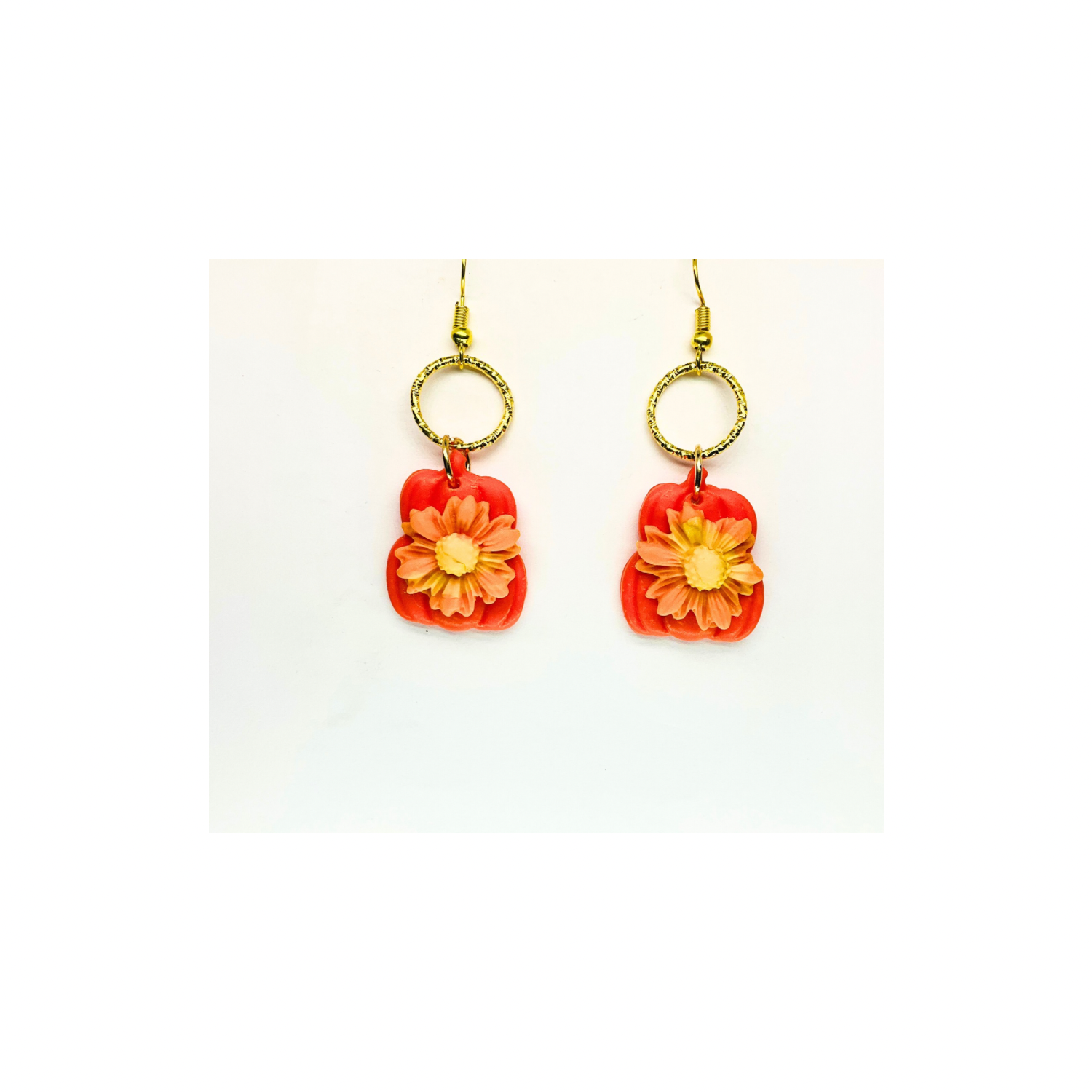 Fall Collection Orange Stacked Pumpkins with Large Flower Dangle Earring