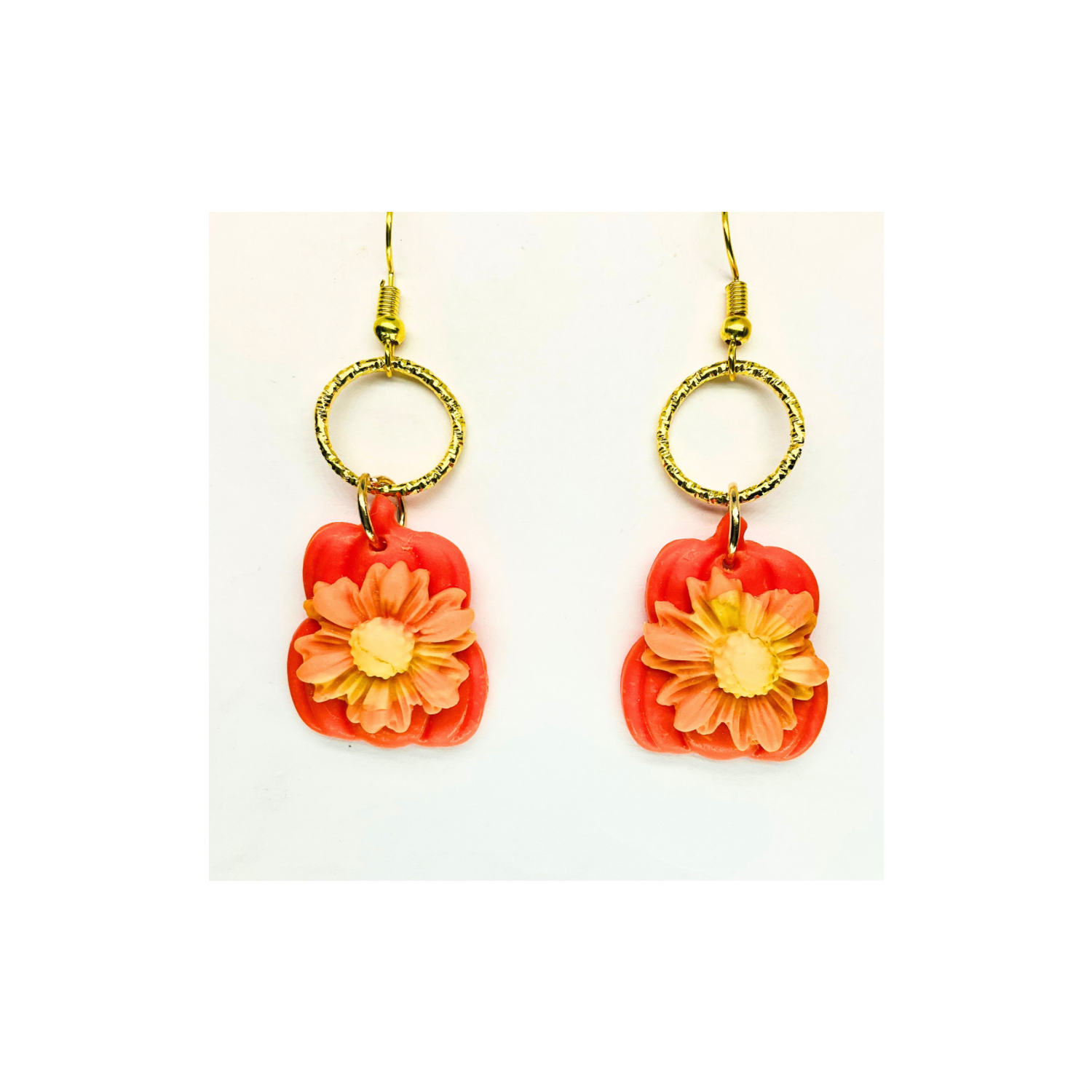 - Discover the charm of the Fall Collection! This set includes orange stacked pumpkins and a large flower dangle earring. Perfect for autumn enthusiasts, it combines seasonal elements beautifully. The pumpkin design adds a festive touch to any outfit.