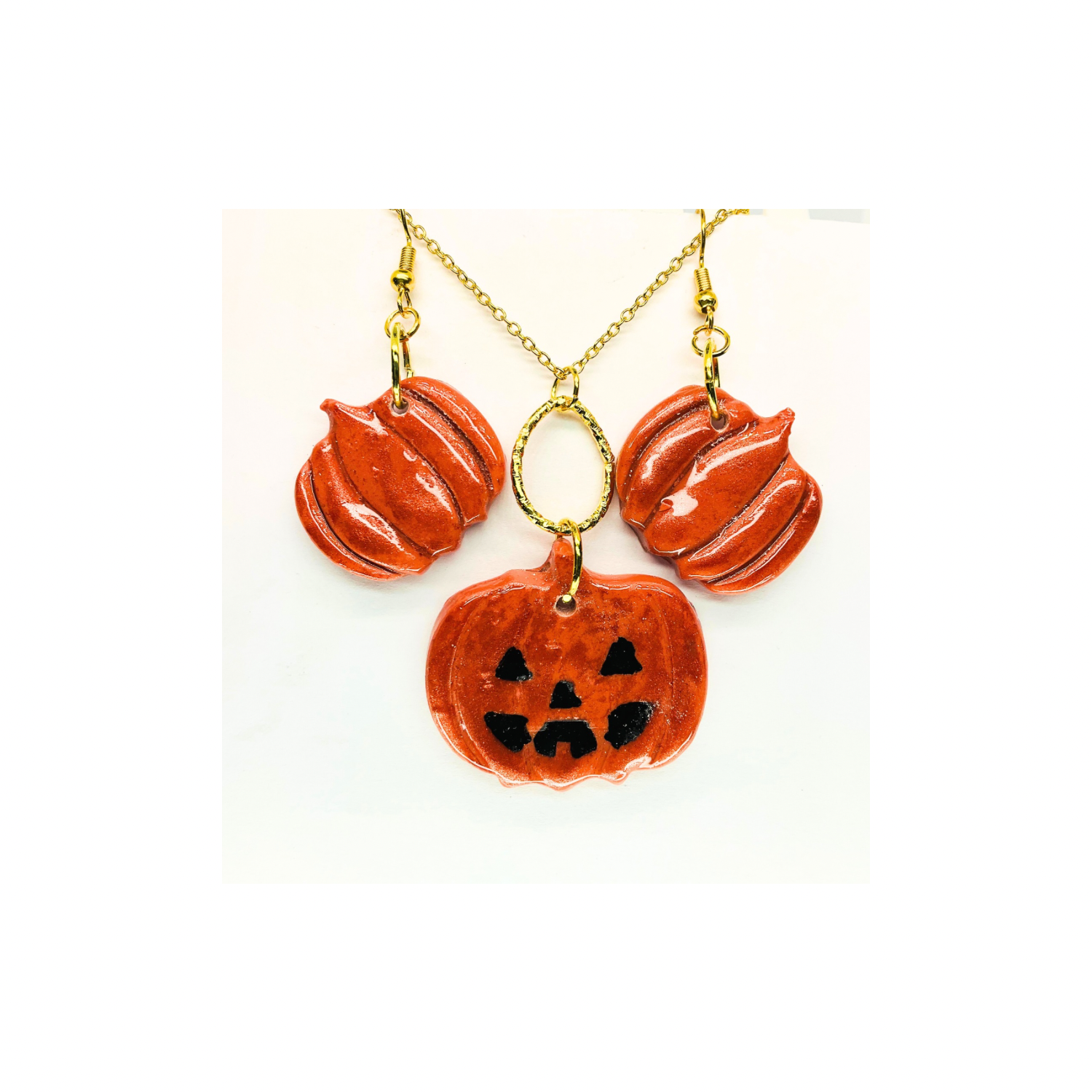 Fall Collection Pumpkin Jewelry Pendant and Dangle Earring Set for Autumn-Themed Events