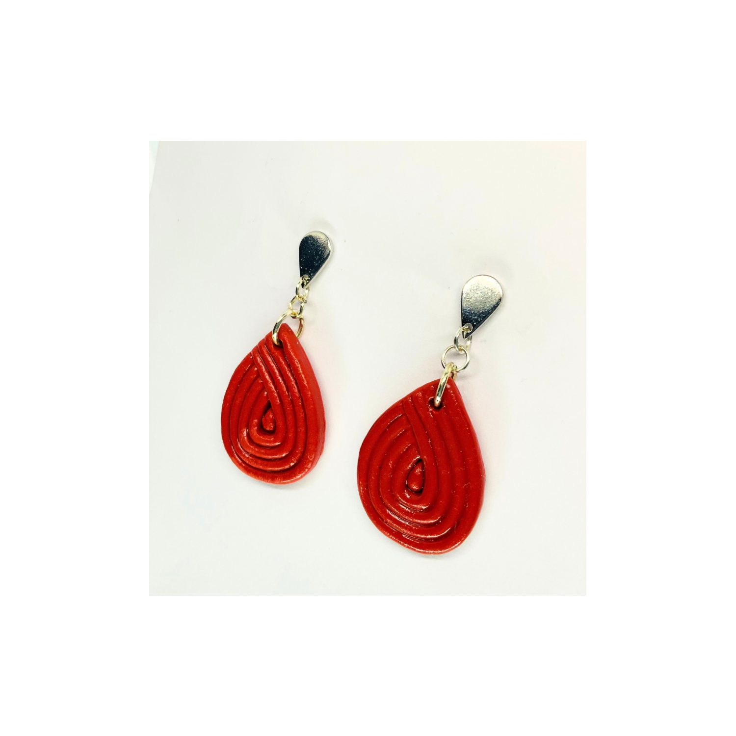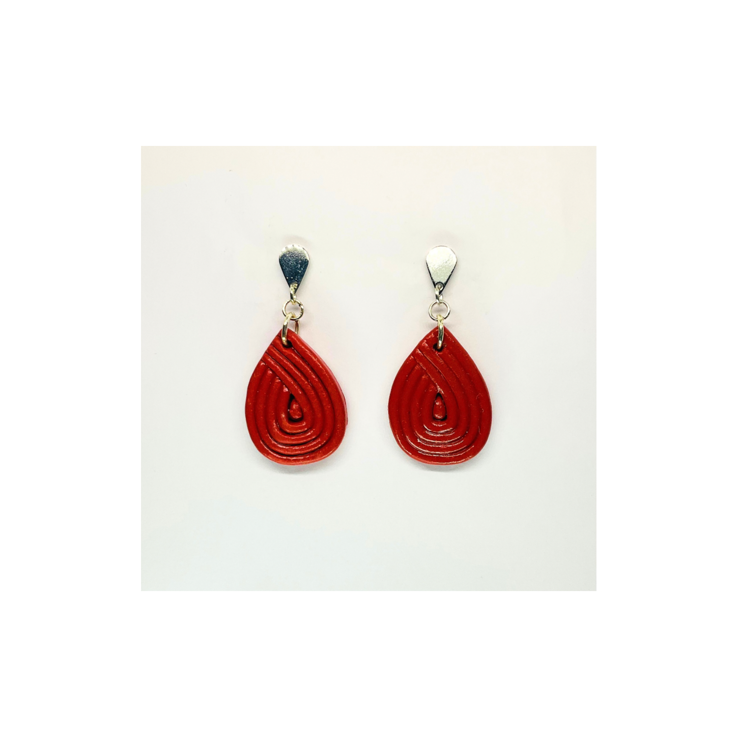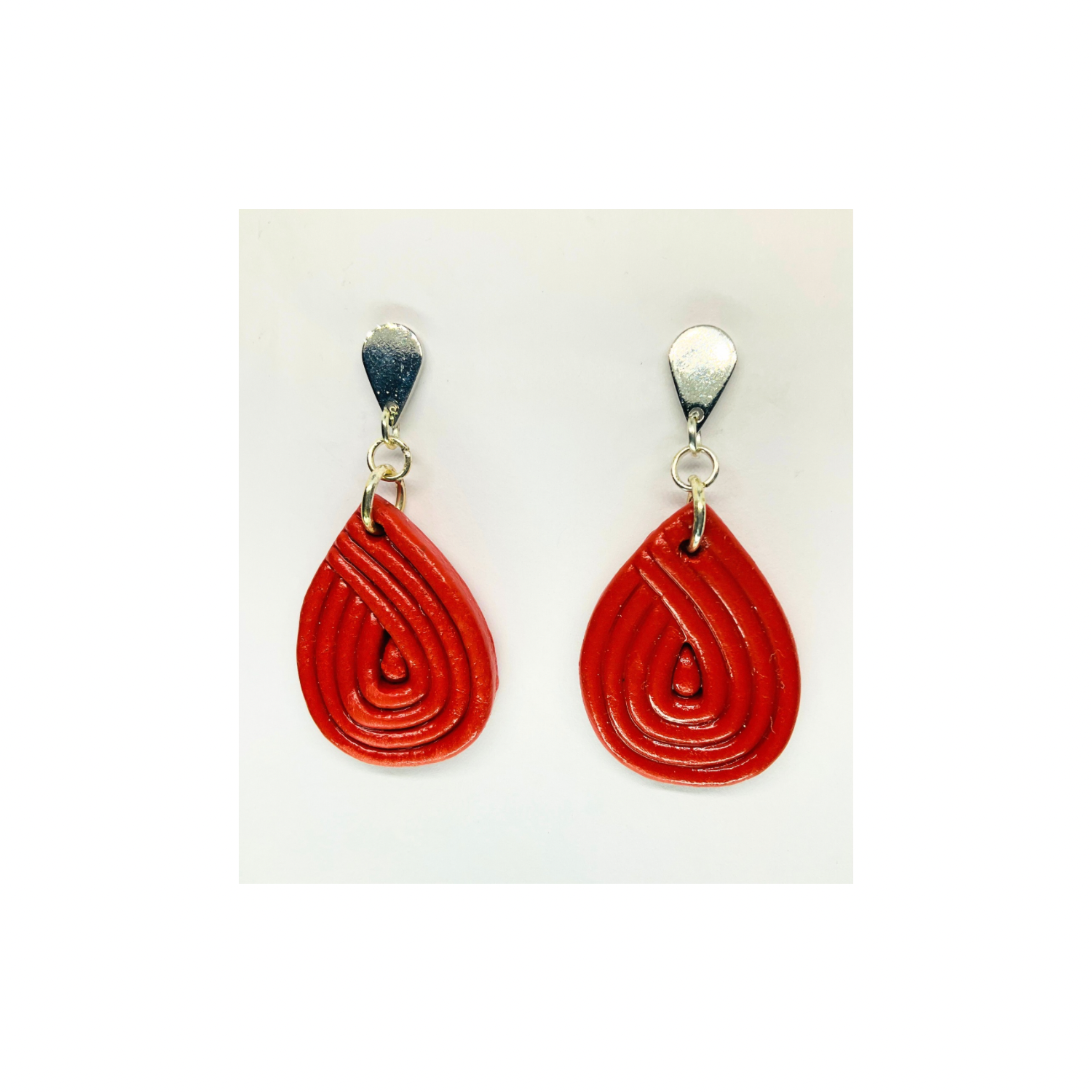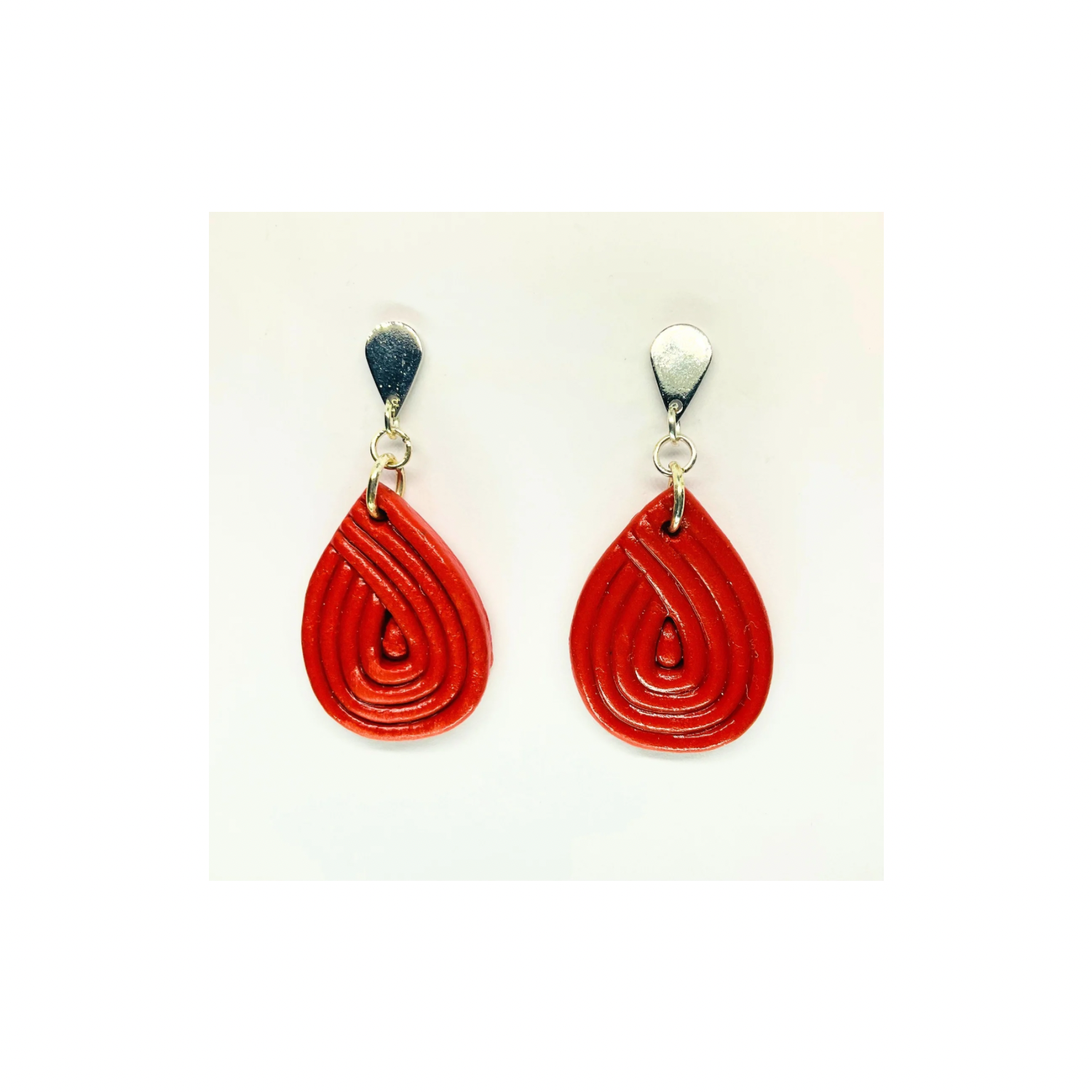 Fall Collection Sienna Teardrop with Silver Stud Dangle Earring Red Leather Design for Women