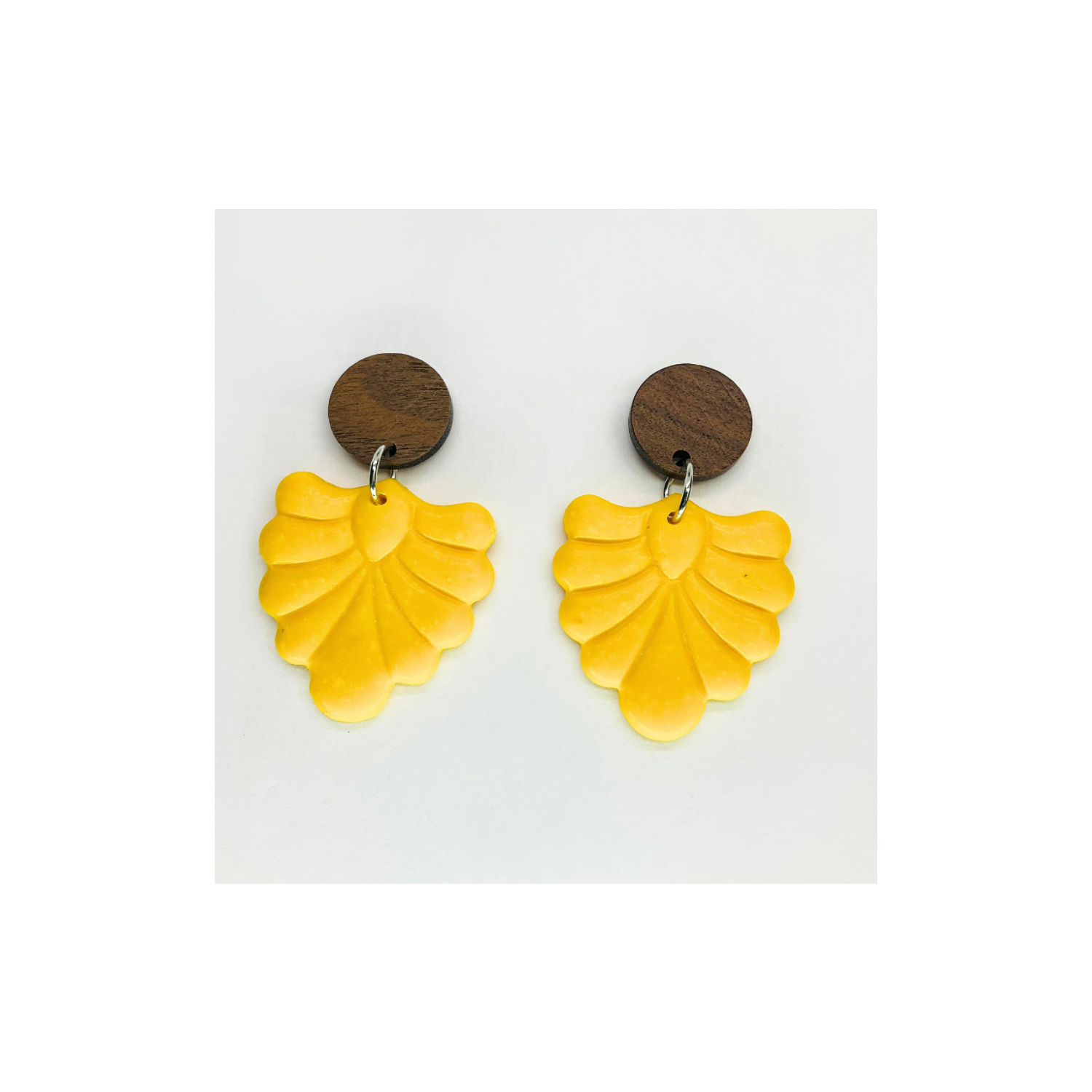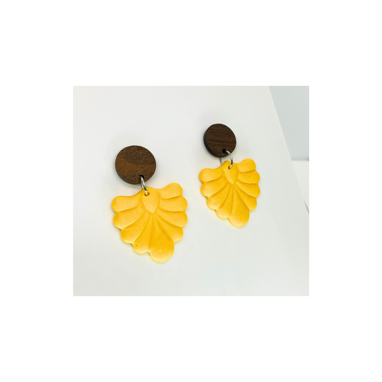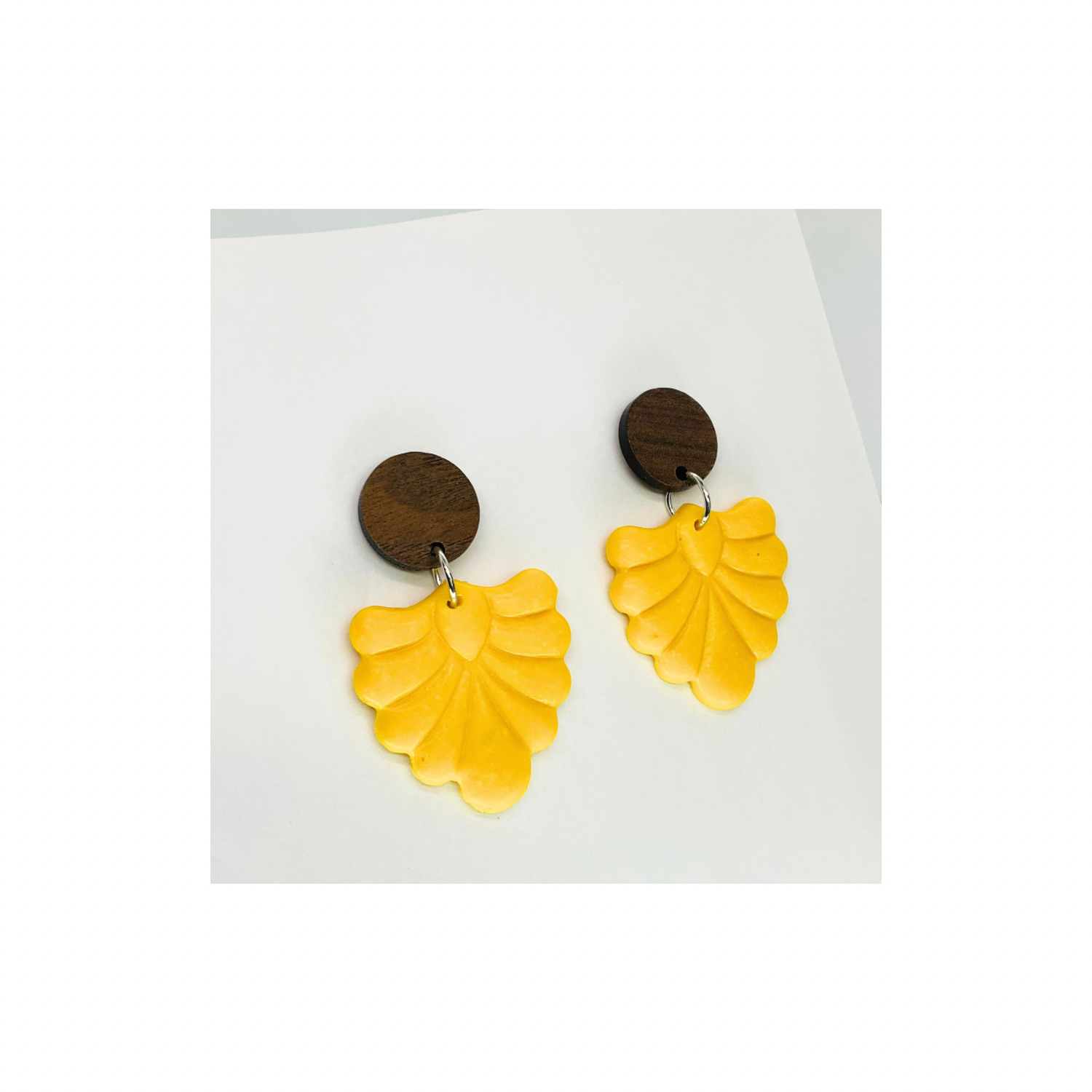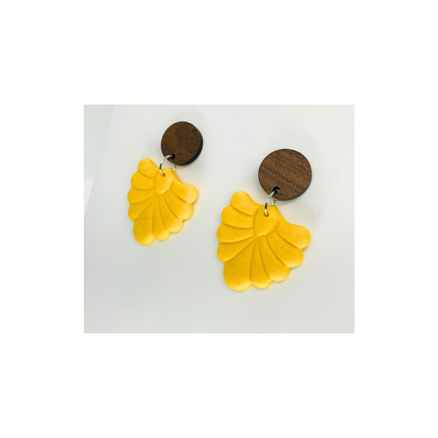 Fall Collection Yellow Dangle Earrings with Wood Button Studs Unique Design Fashion Accessory