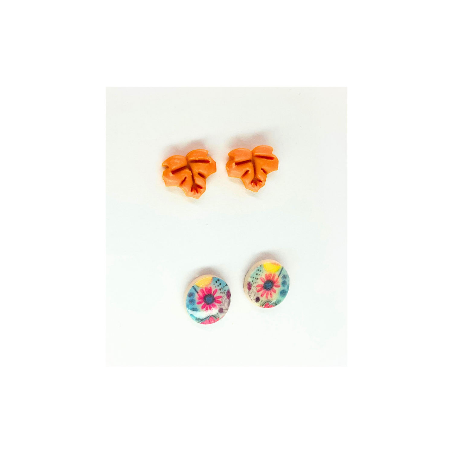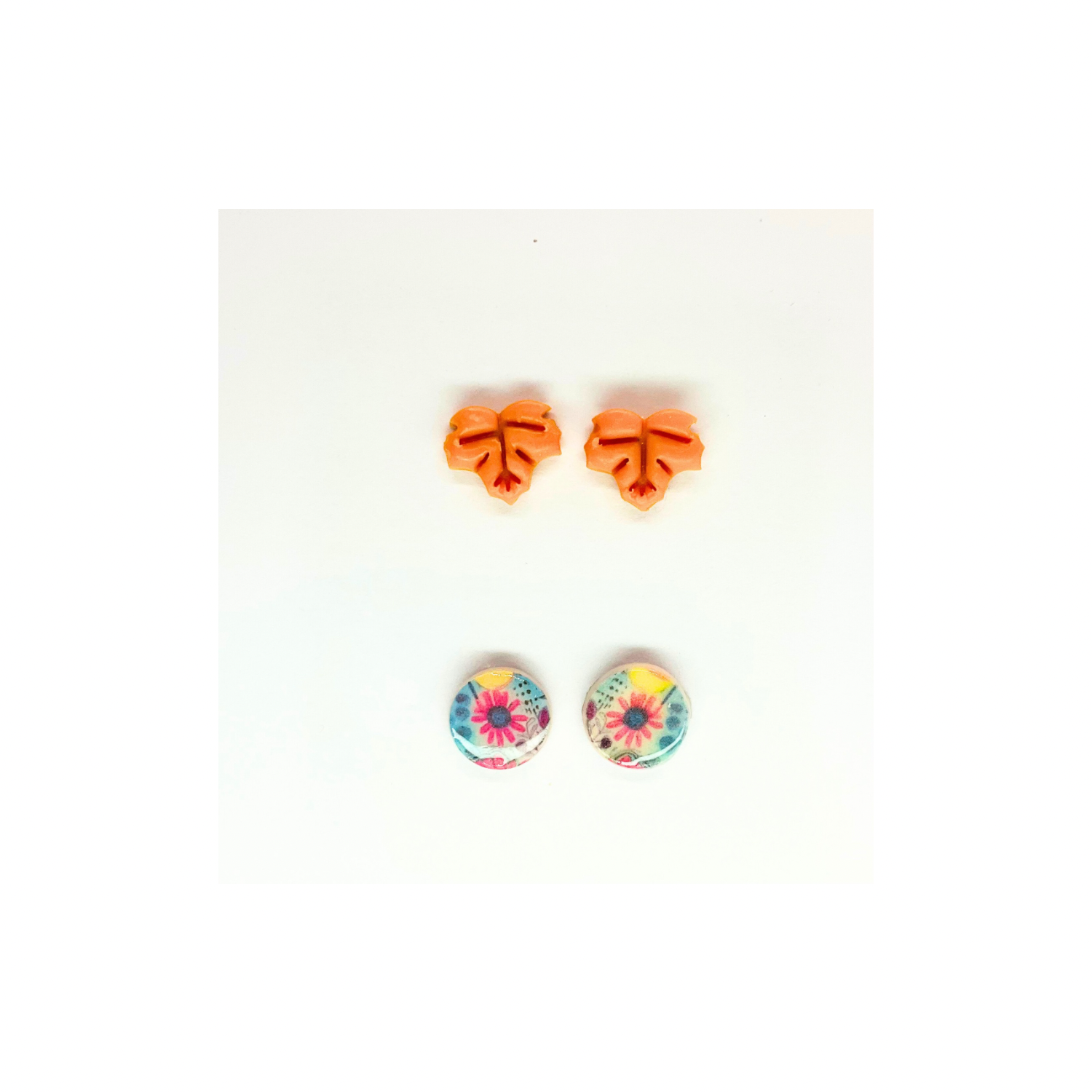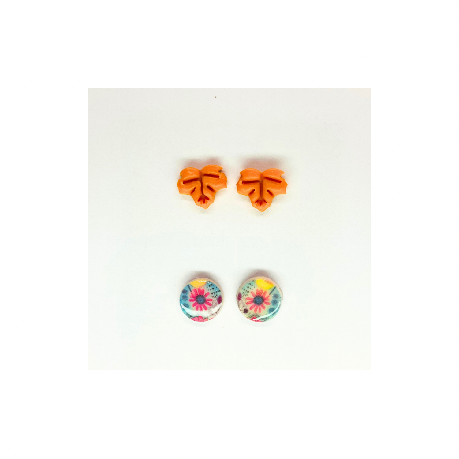 Embrace the autumn vibe with these charming earrings. The design features vibrant orange leaves and colorful floral motifs. Perfect for adding a touch of nature's beauty to your outfit. These stud earrings are a delightful choice for any occasion.