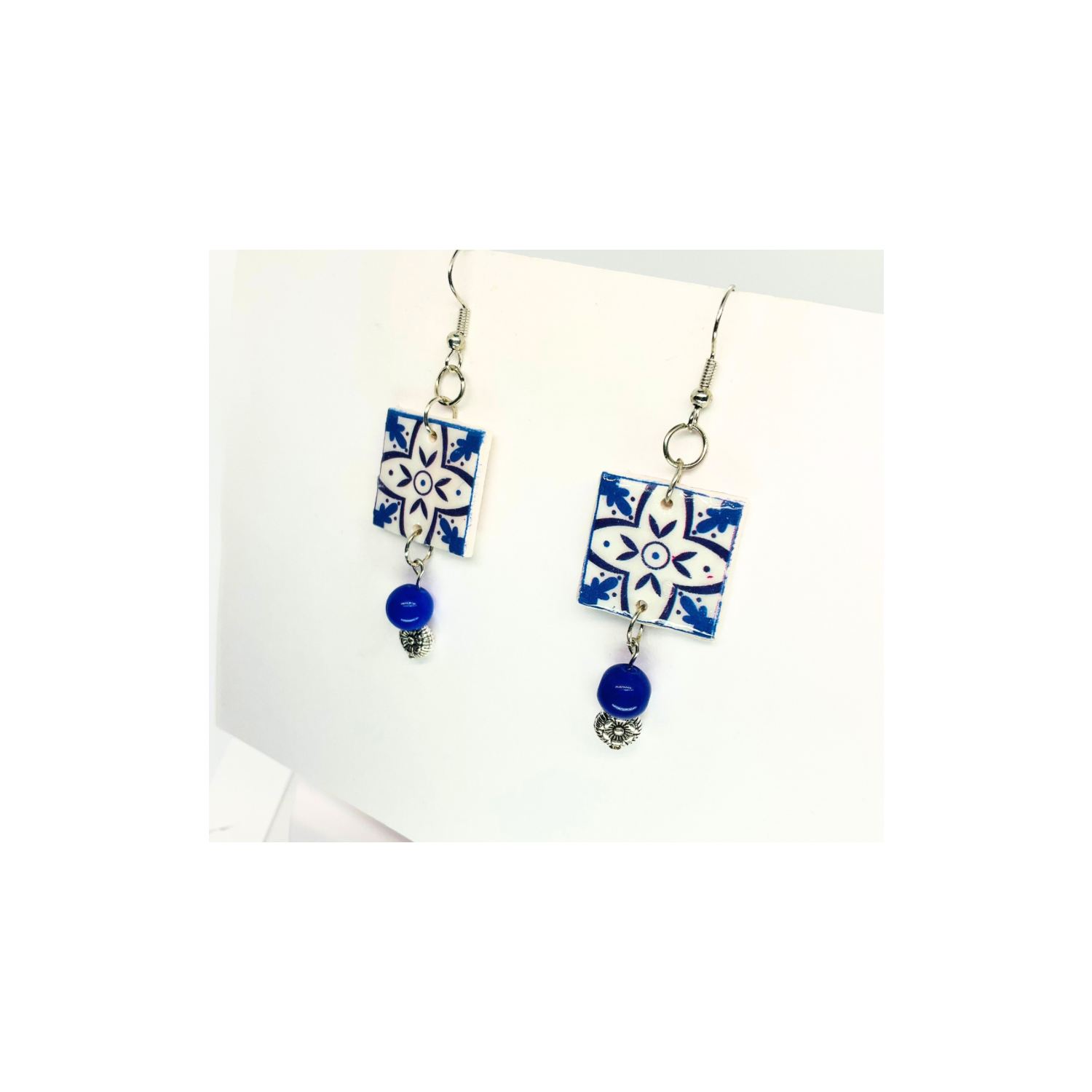 - Ceramic Tiles: The earrings are made with blue and white ceramic tiles, giving them a unique and charming appearance. πΈ