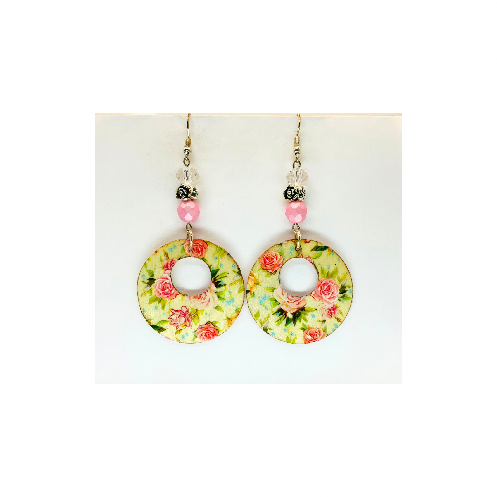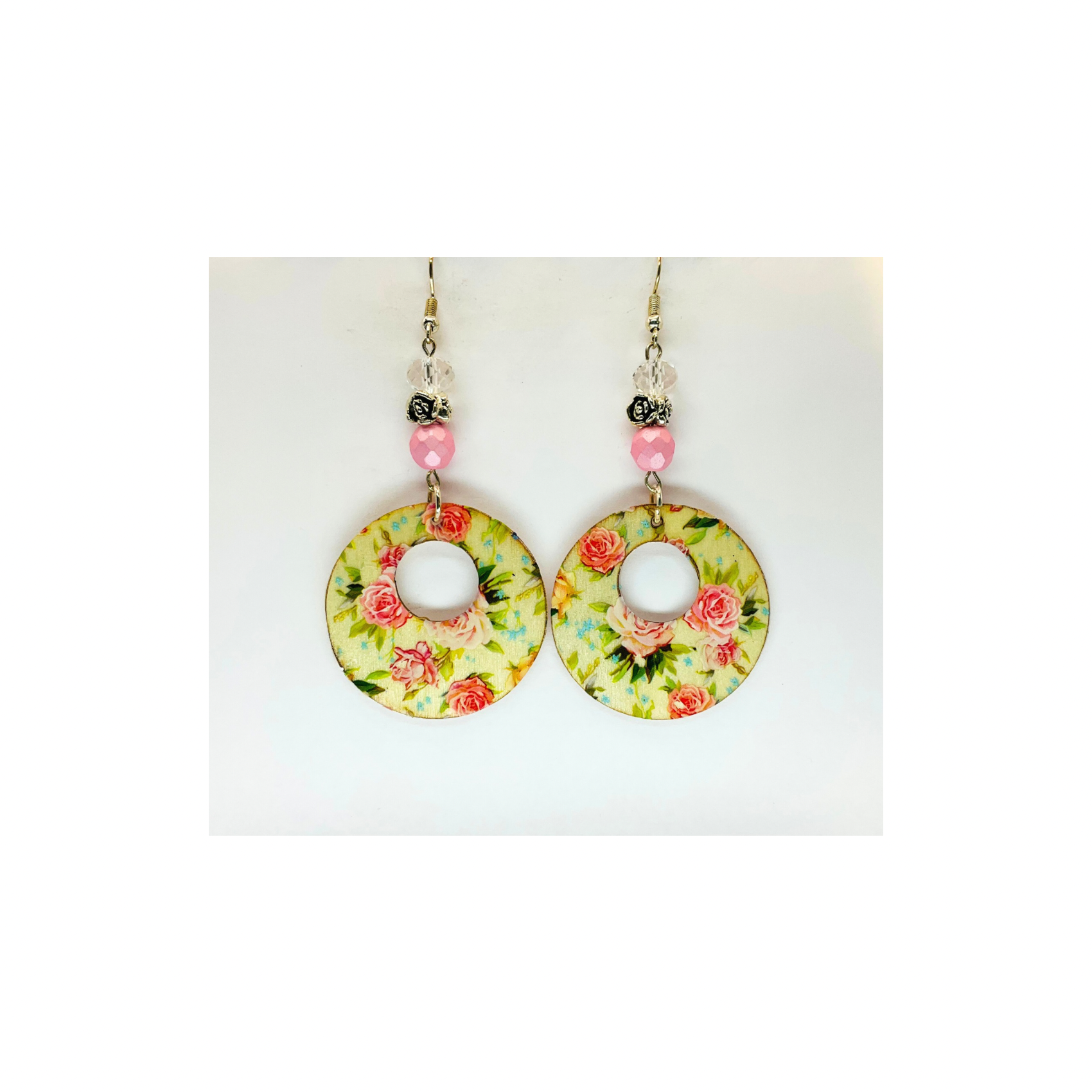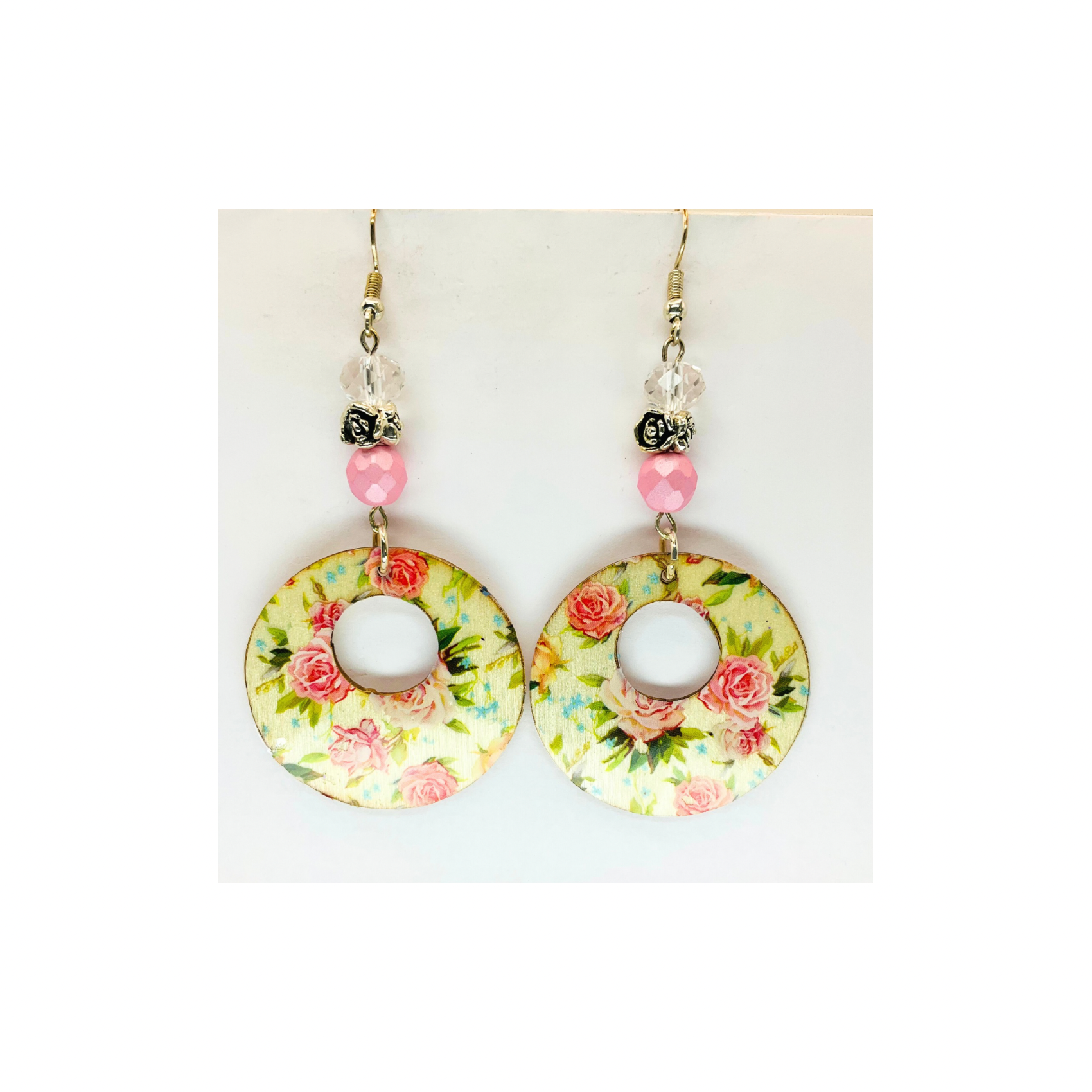 Boho Style Circle Wood Earrings from French Garden Collection Handmade Jewelry for Gift Giving