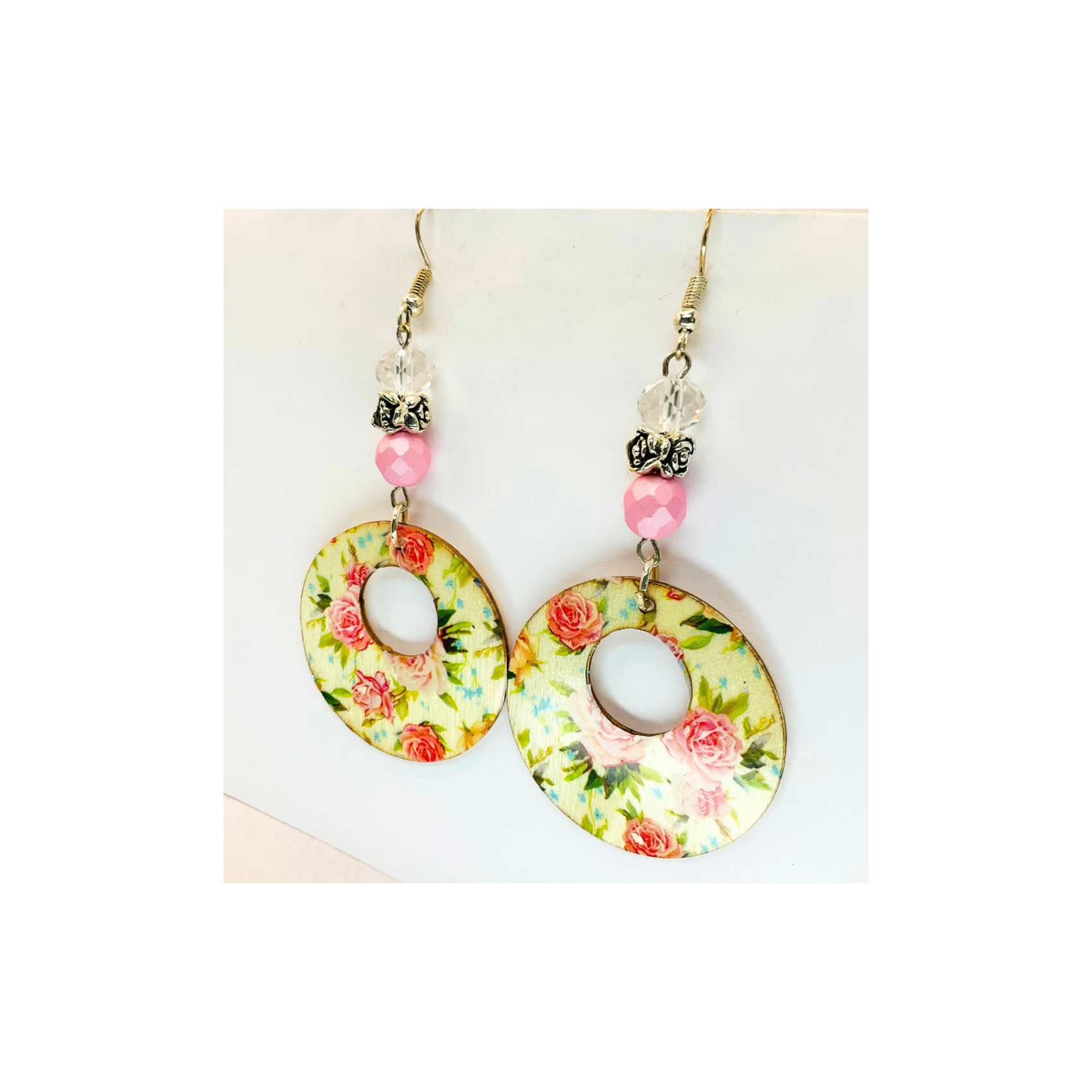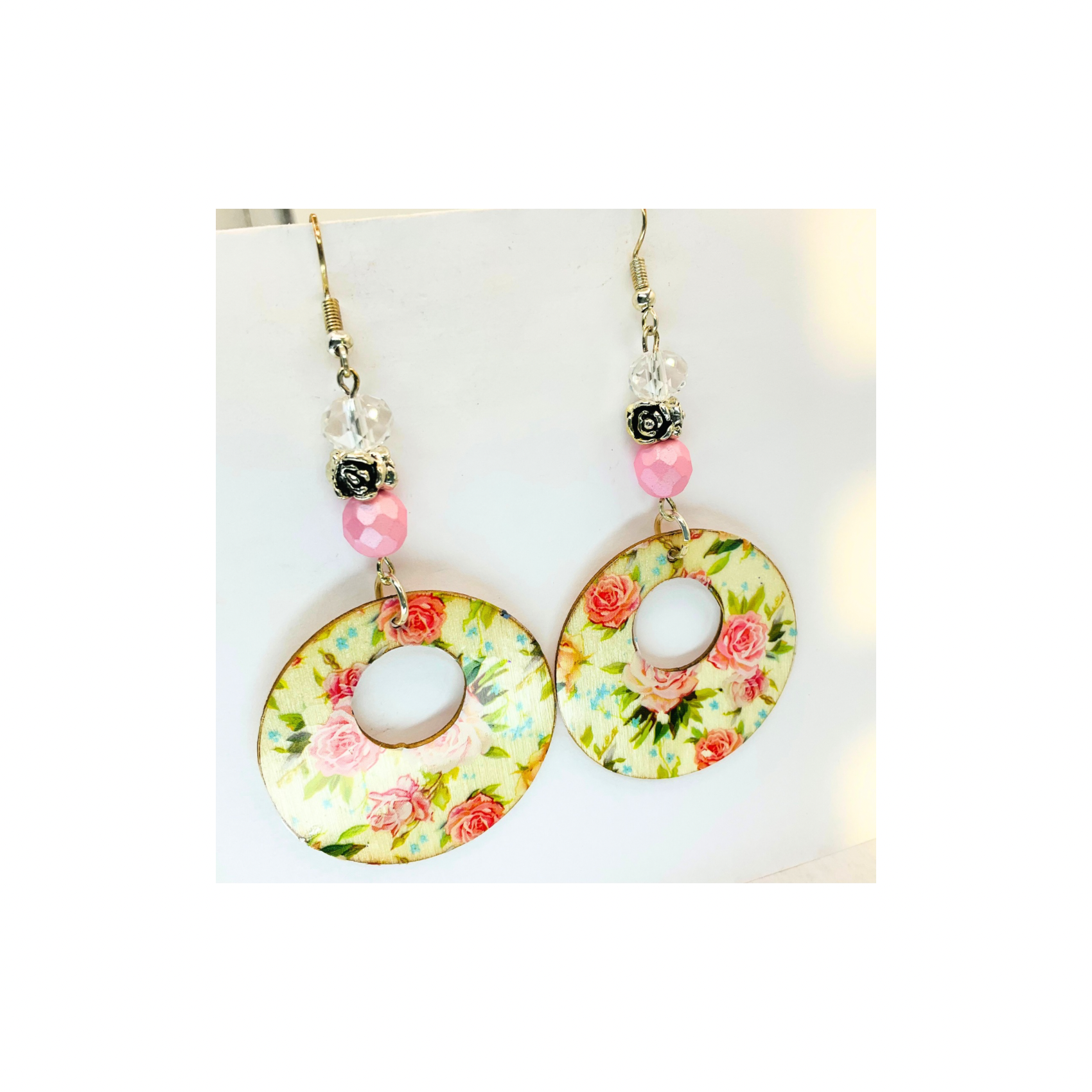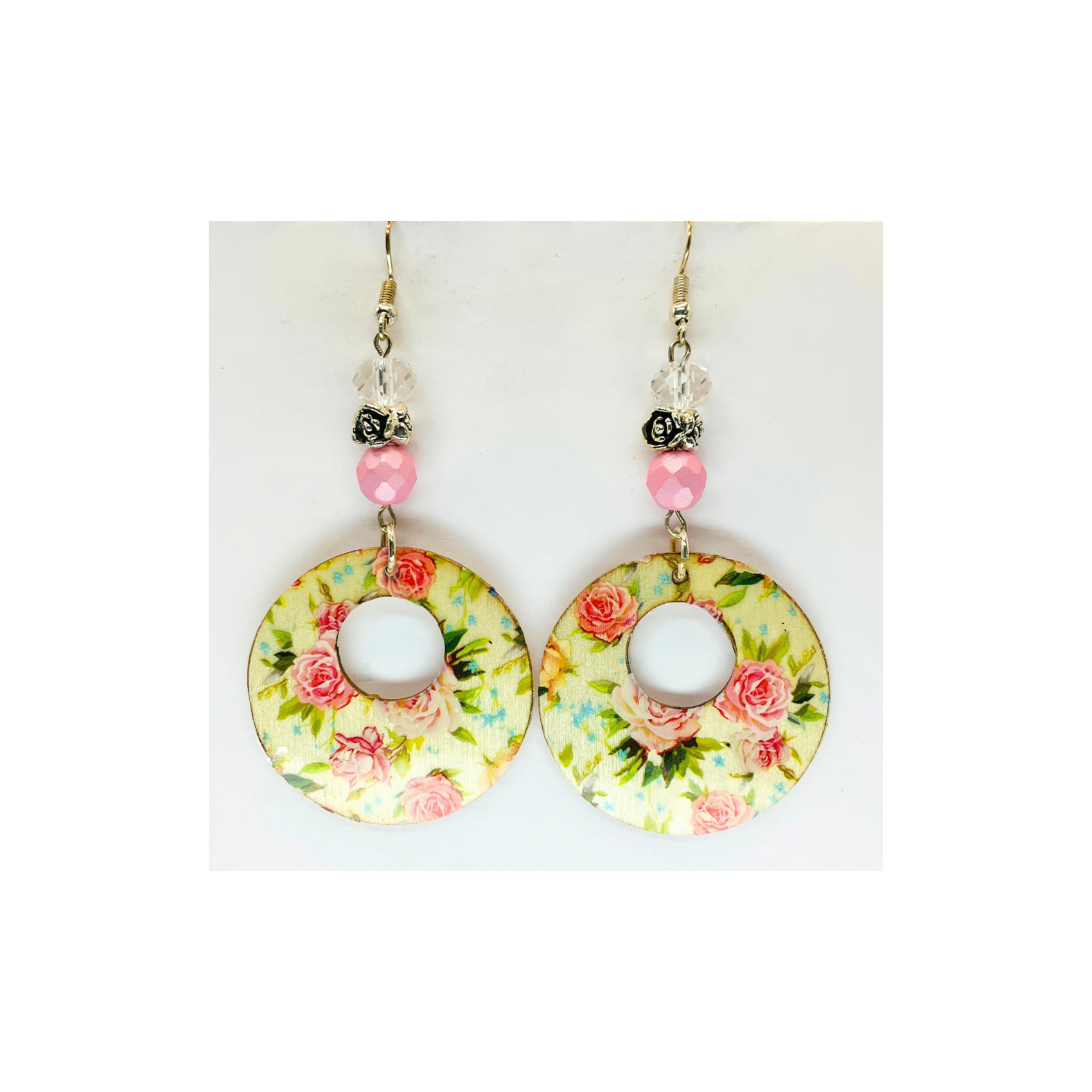 Boho Style Circle Wood Earrings from French Garden Collection Handmade Jewelry for Gift Giving
