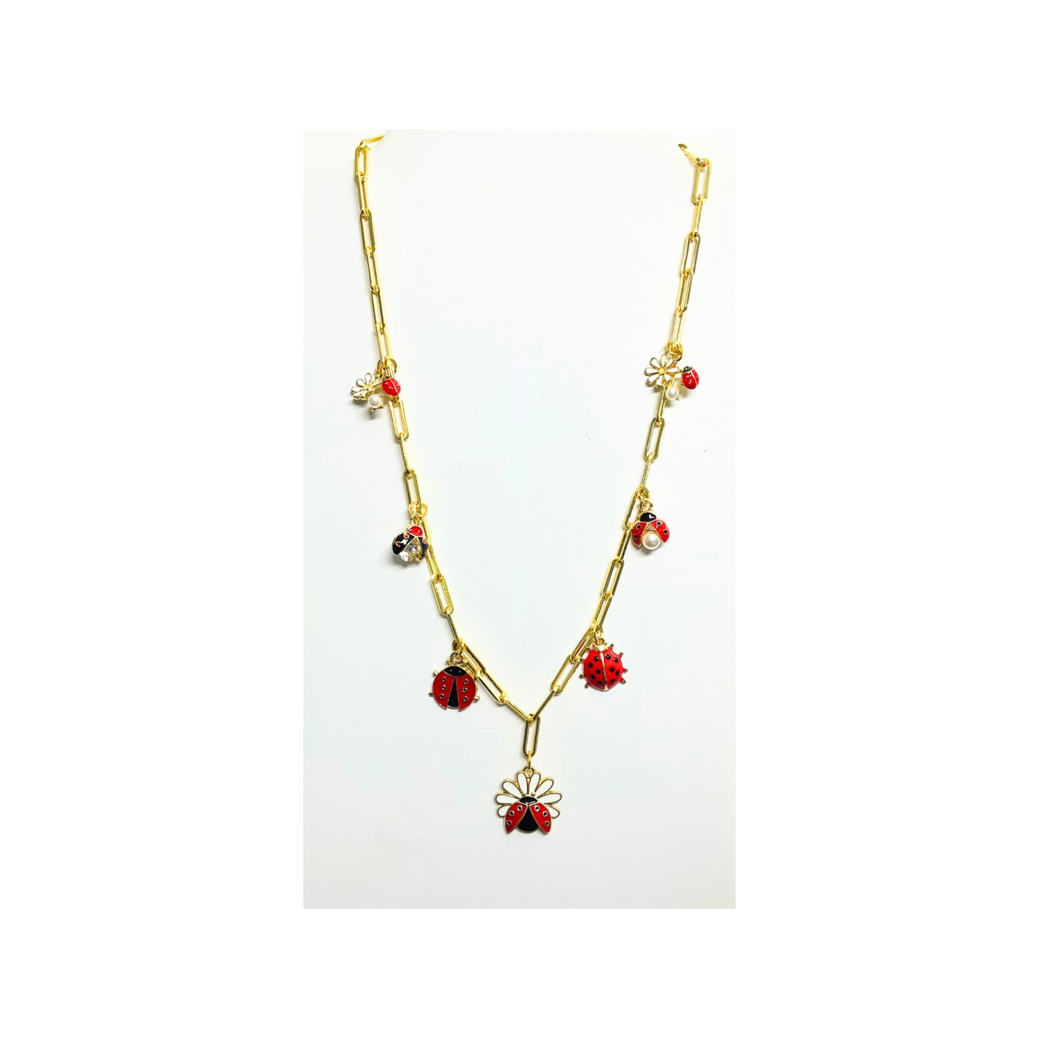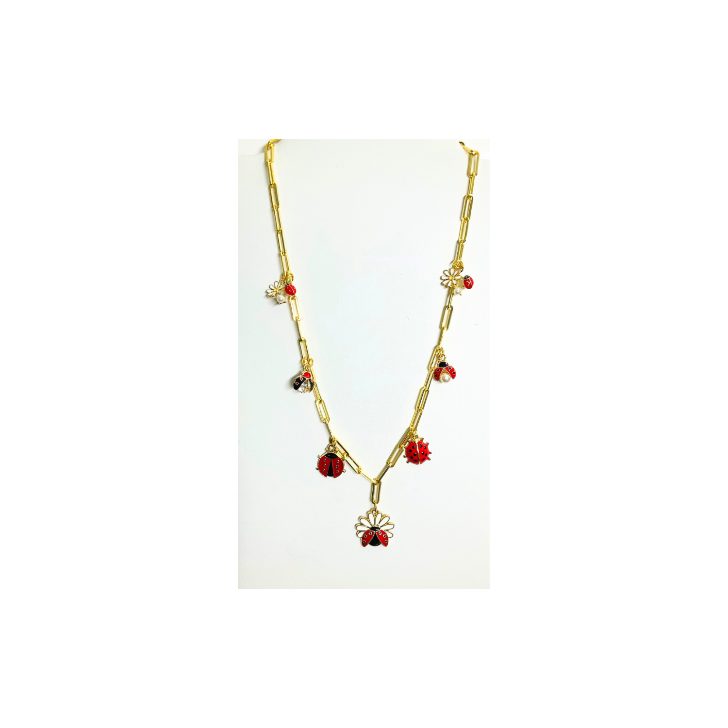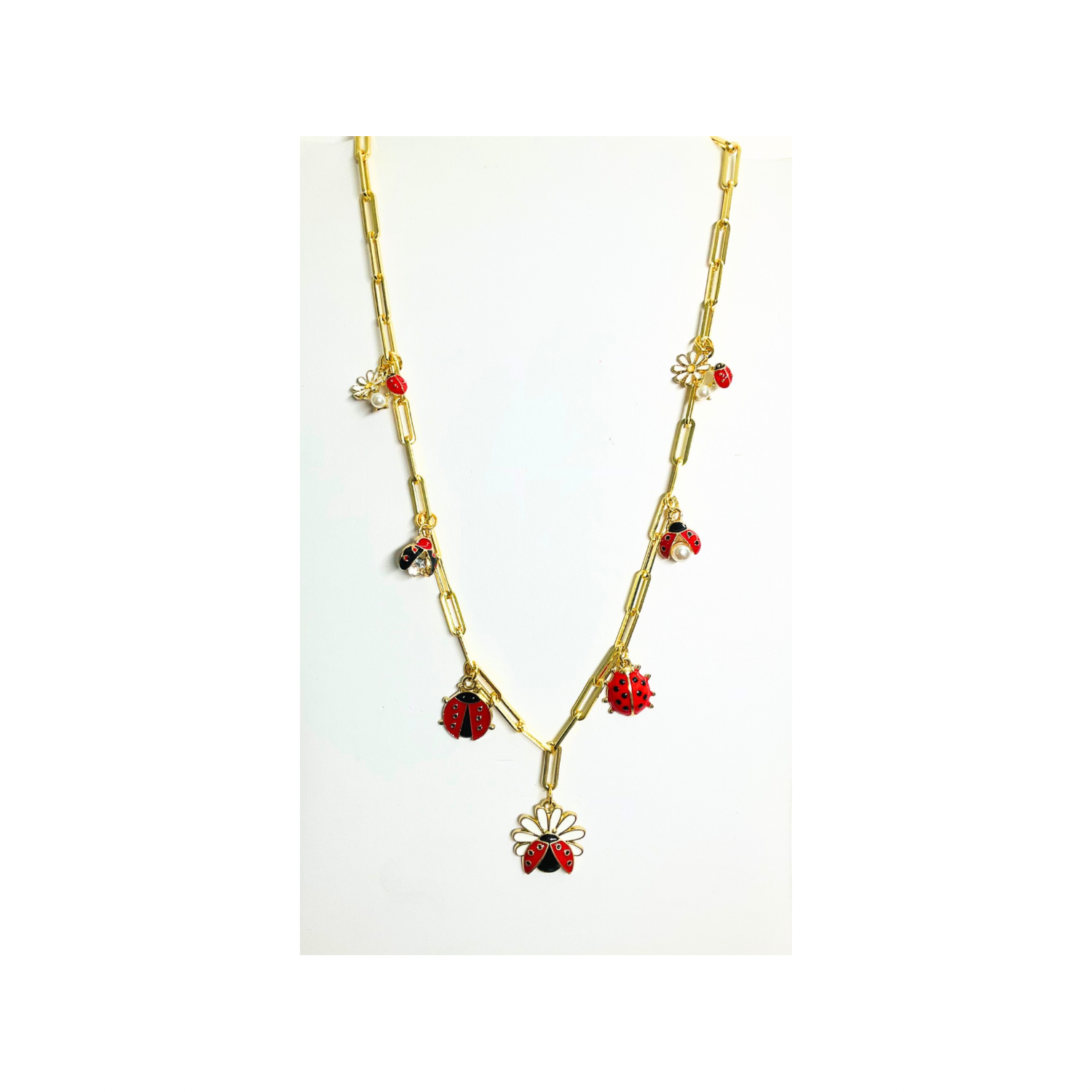 - Elegant Design: This necklace features a gold paperclip chain adorned with a ladybug charm. It includes red beads and floral accents, perfect for women. πΈ